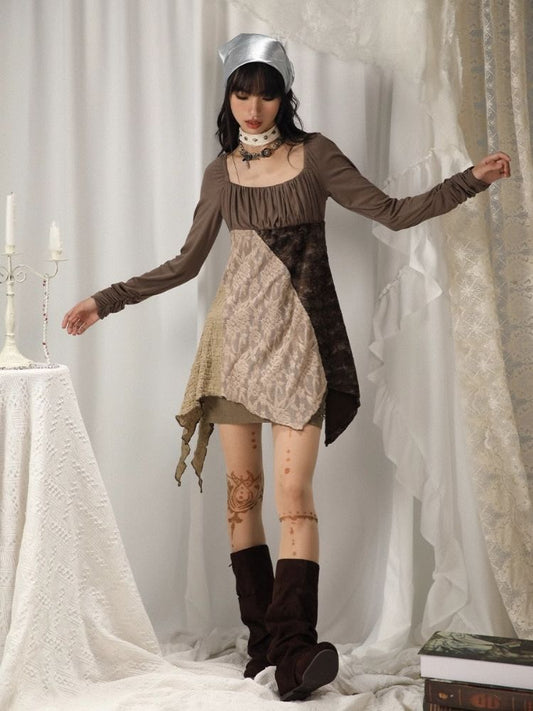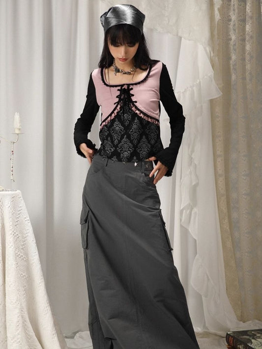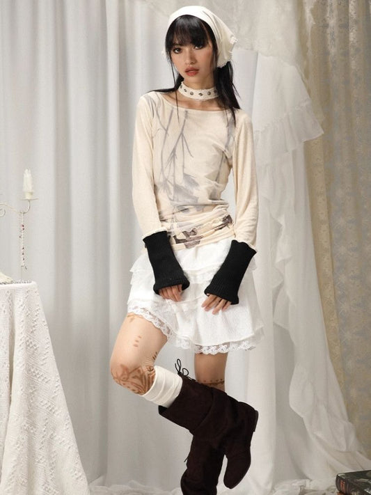 서브컬처 발레 스타일 패치워크 탑