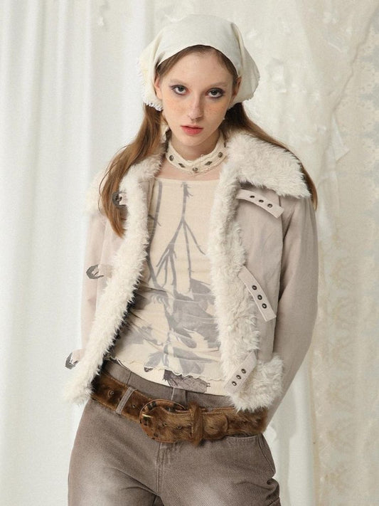 나비 스터드 모피 코트