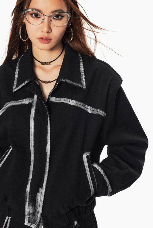 그래피티 아트 프린트 하이 넥 슬리브리스