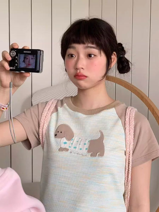어깨 스키니 스윗 쿨 걸 쇼트 티셔츠