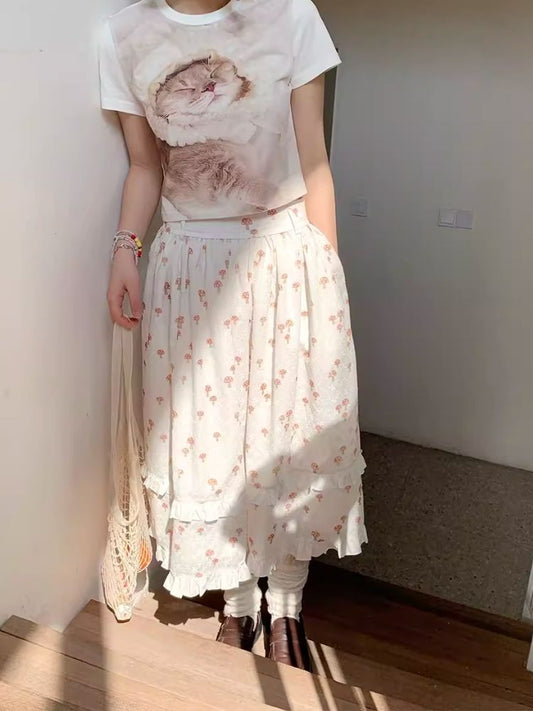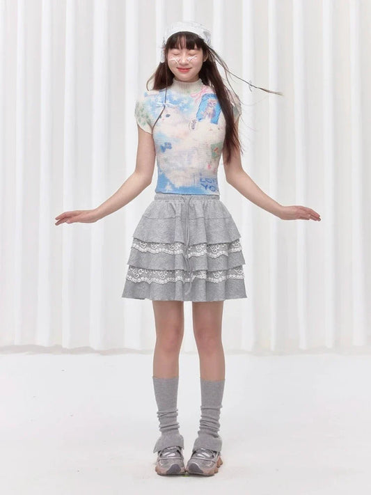 더블 레이어 레이스 페플럼 하프바디 스커트