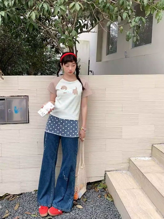 폴카 도트 프린트 반팔 티셔츠