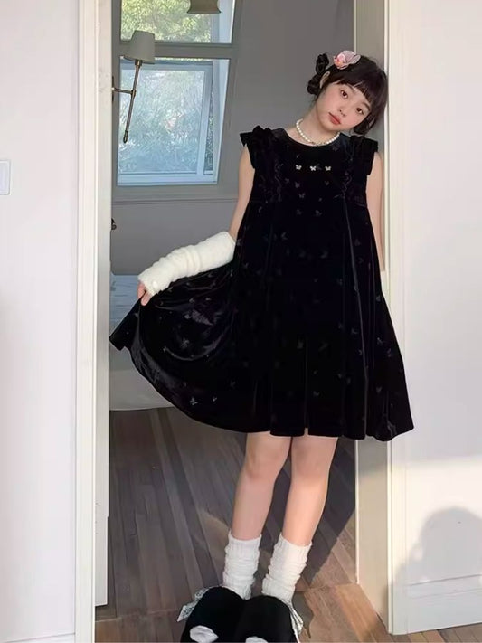 벨벳 프린트 클래식 블랙 드레스