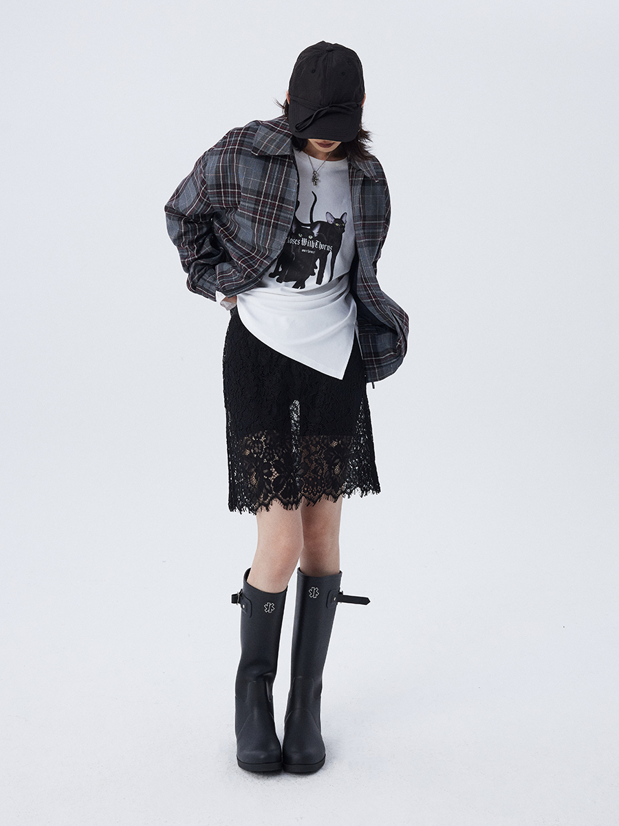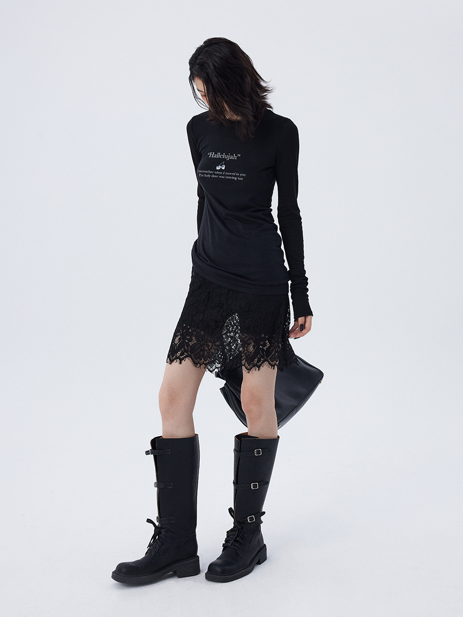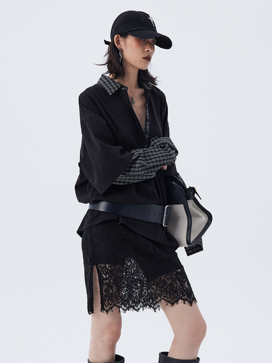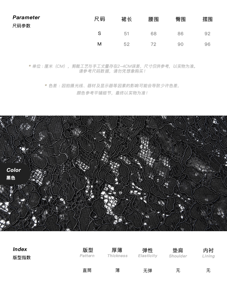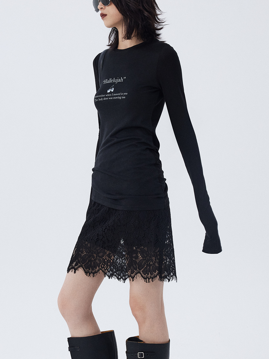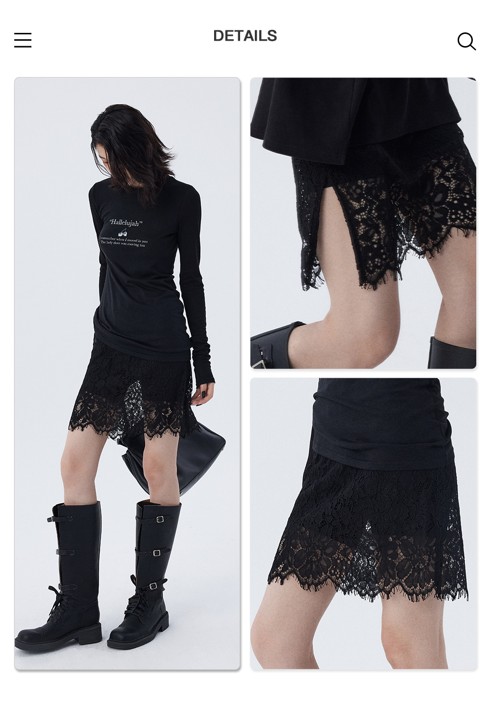 측면 슬릿이 있는 고딕 레이스 오버레이 스커트