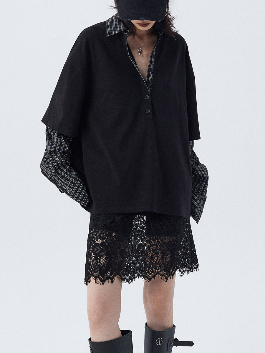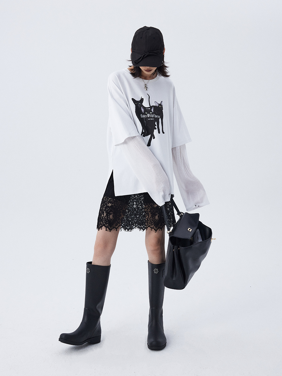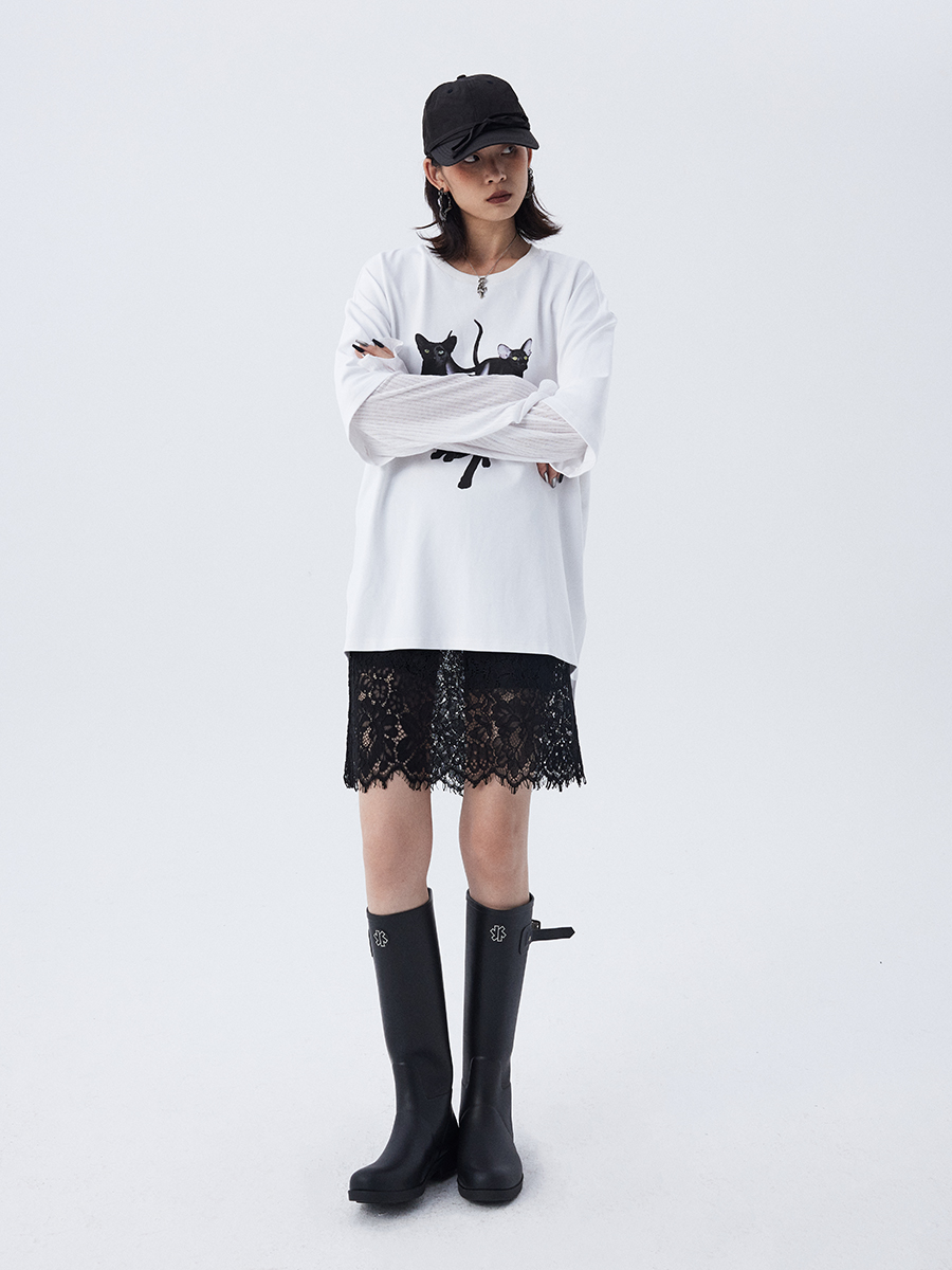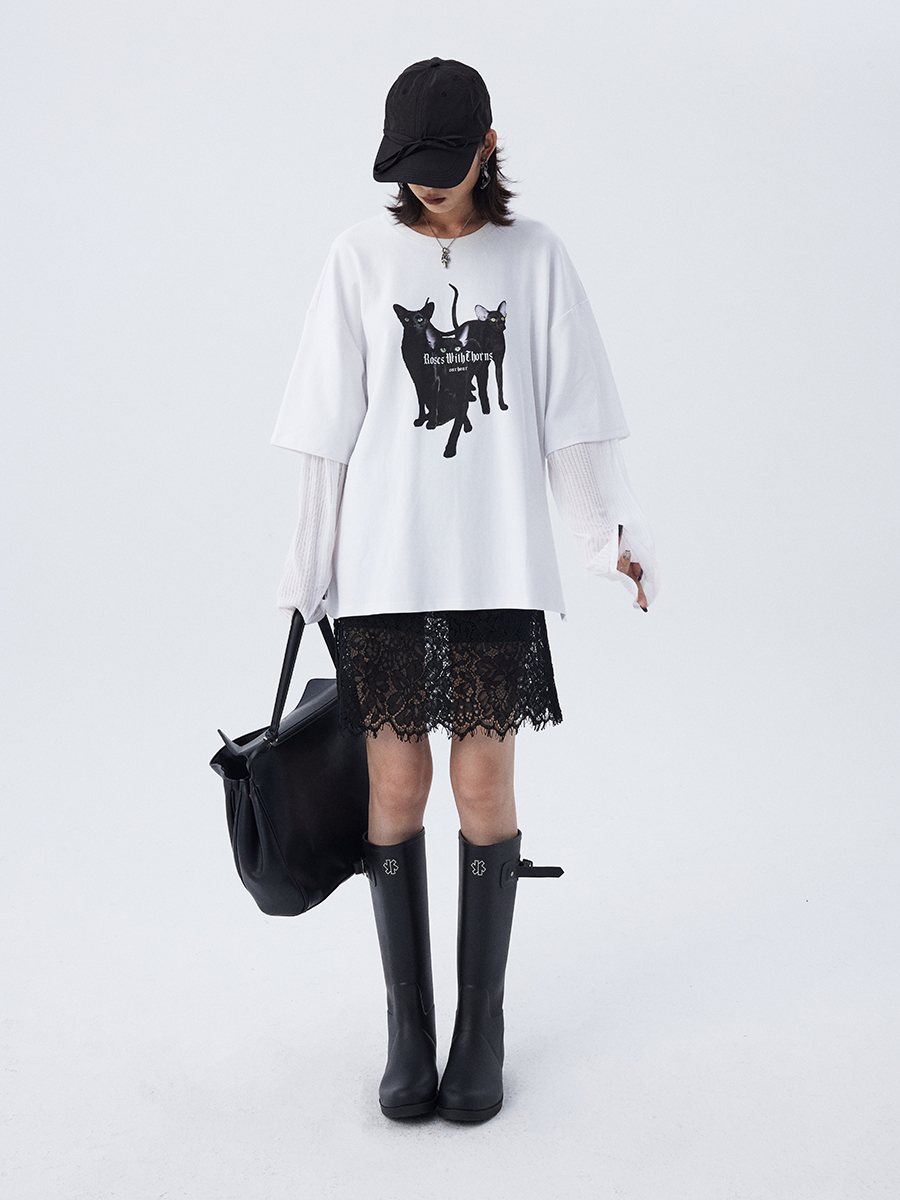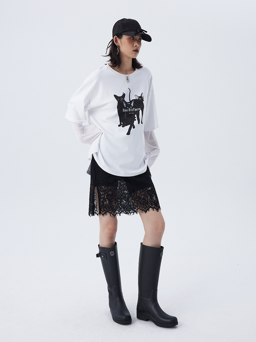 측면 슬릿이 있는 고딕 레이스 오버레이 스커트