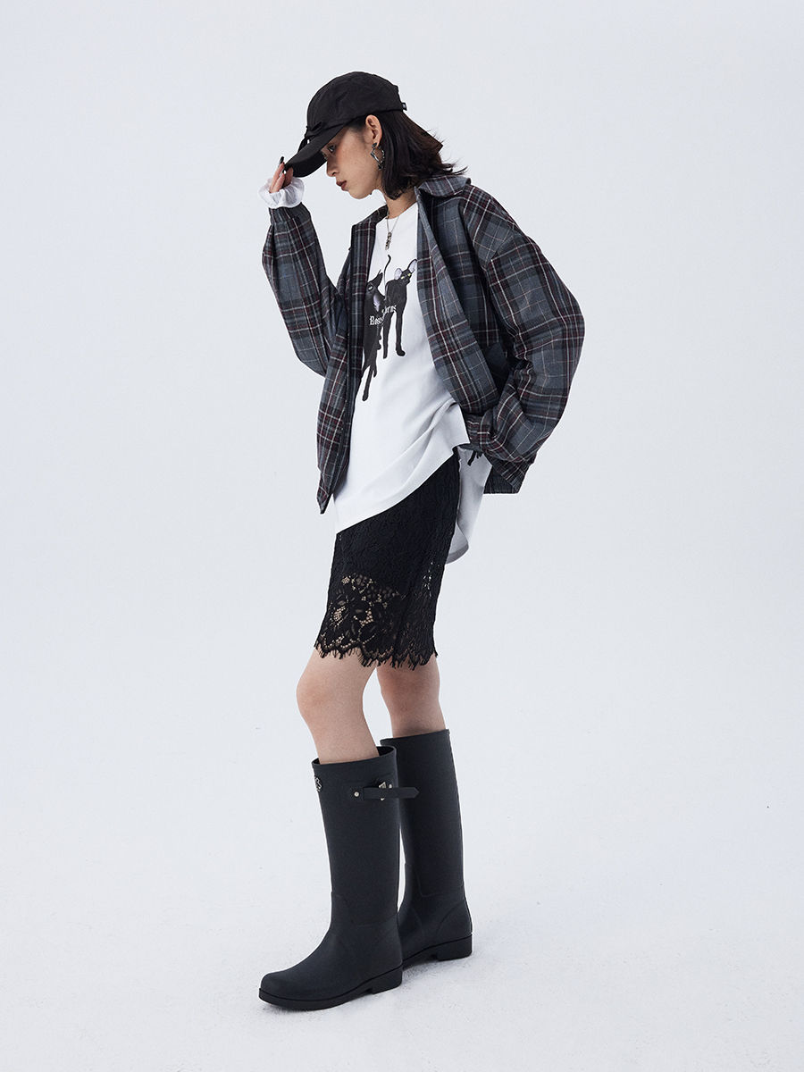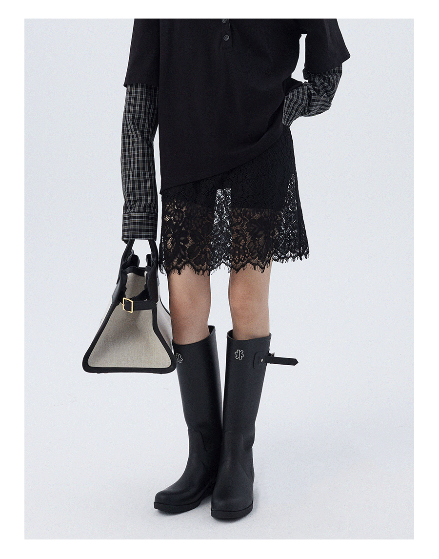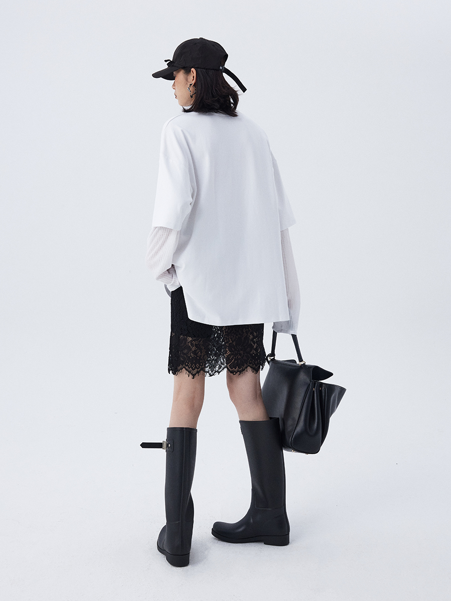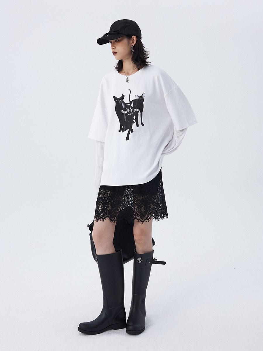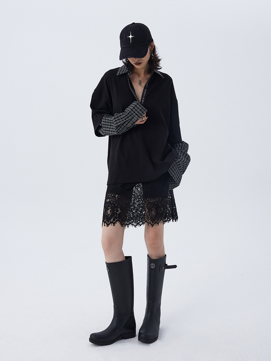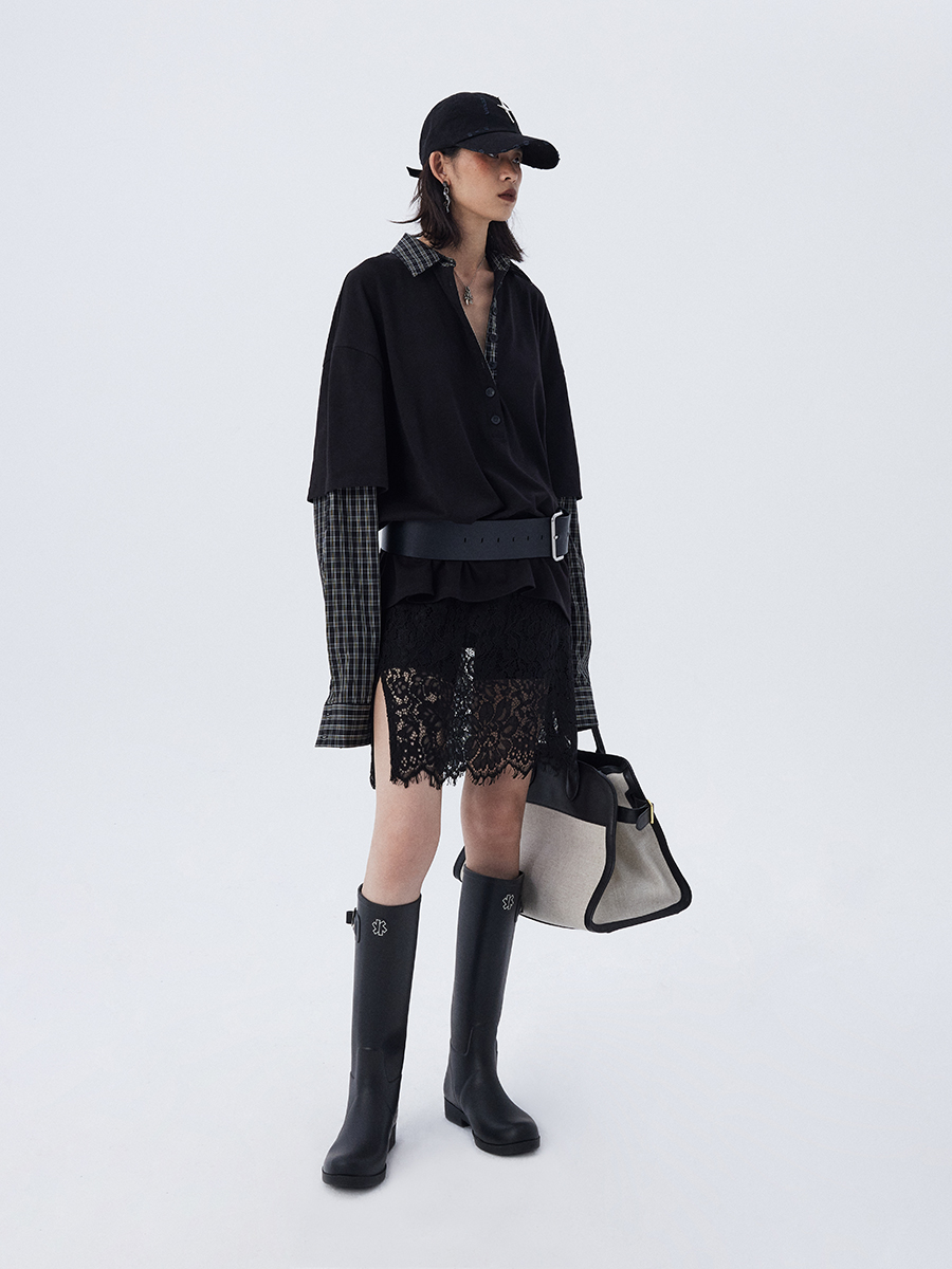 측면 슬릿이 있는 고딕 레이스 오버레이 스커트