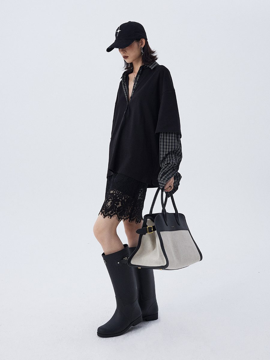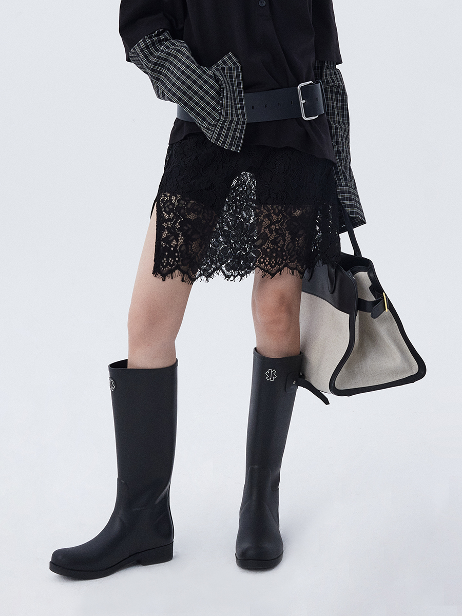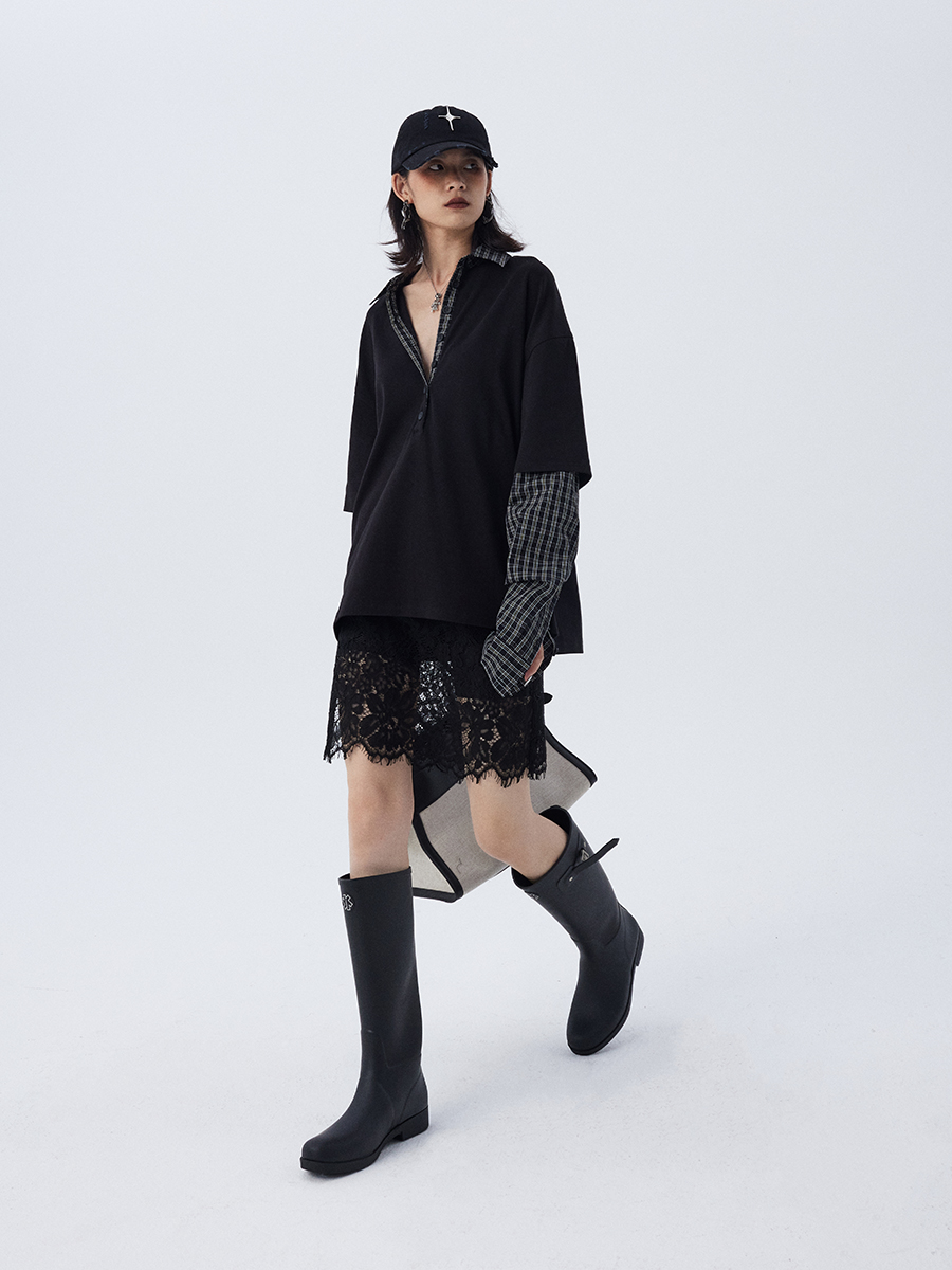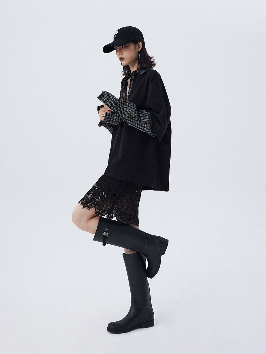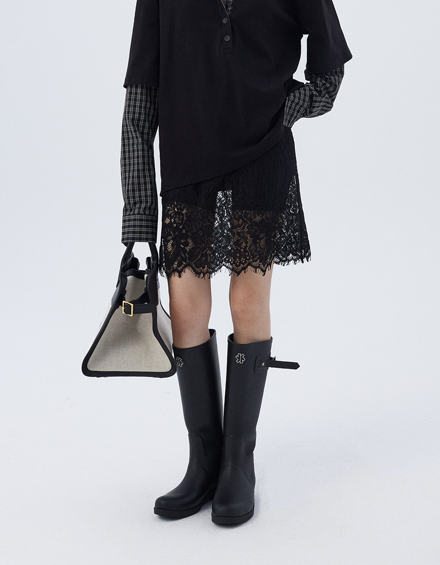 측면 슬릿이 있는 고딕 레이스 오버레이 스커트