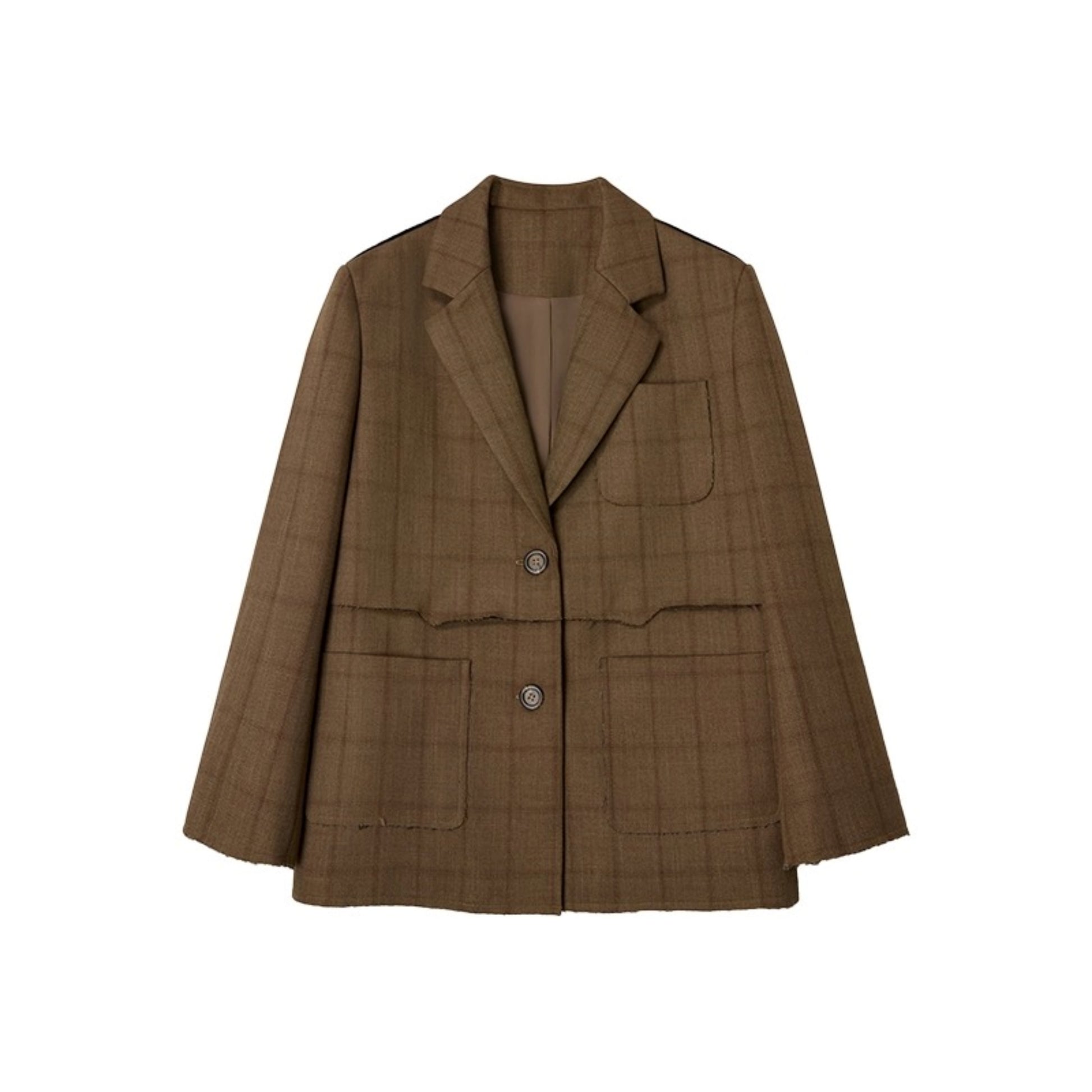 Brown Check Raw Edge Blazer