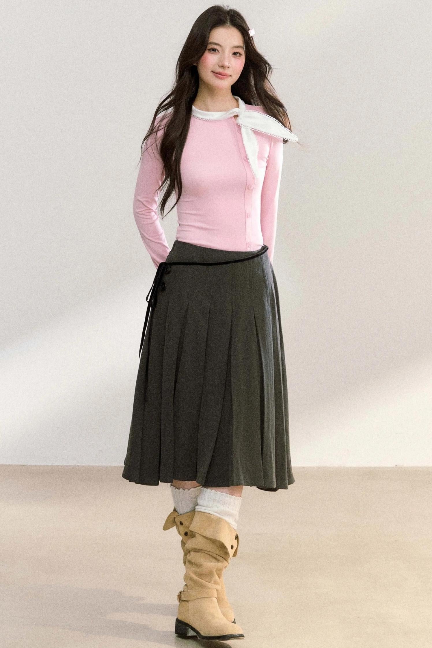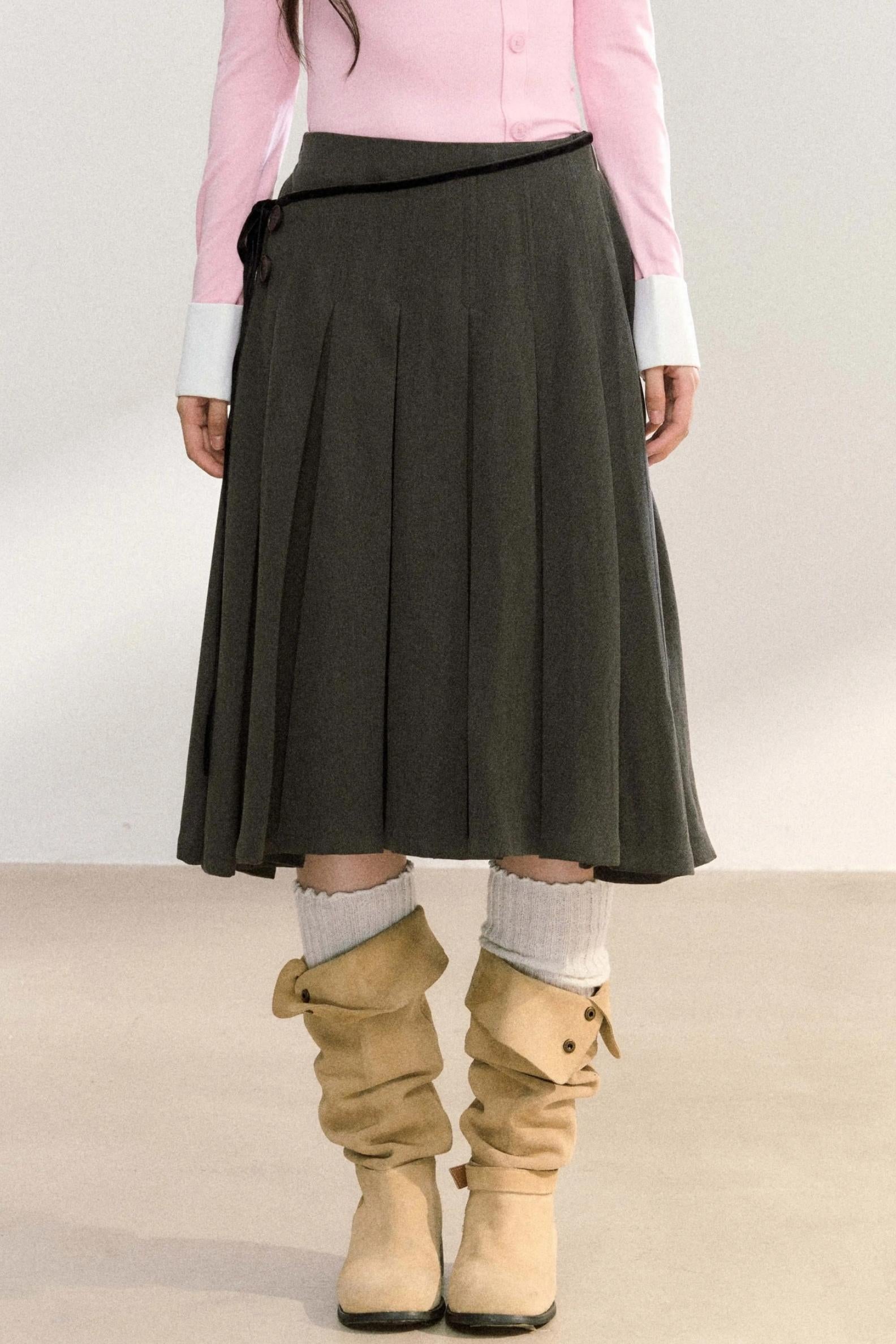 Edge Strap Pleated Midi Skirt