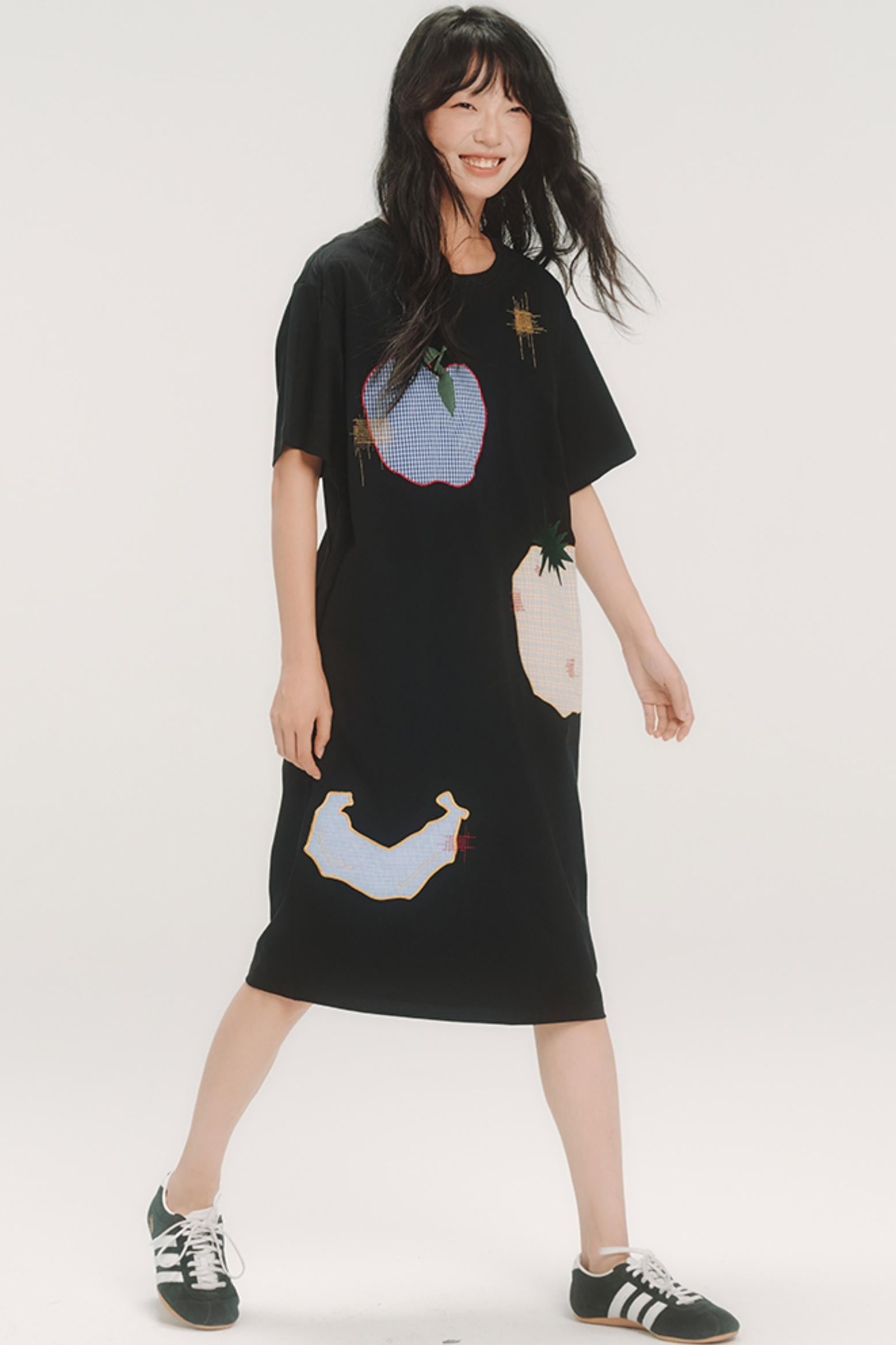 Fruit Check Applique T-Shirt Dress