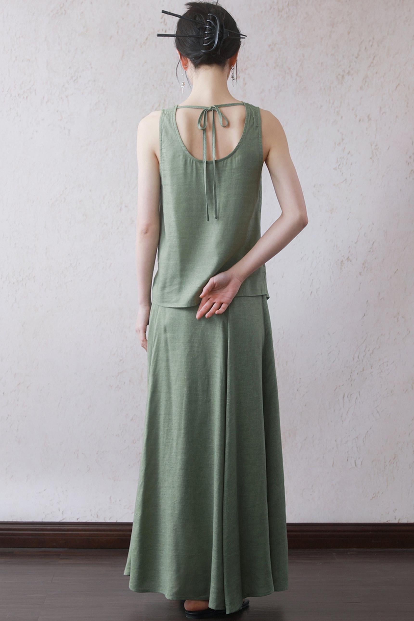 Lotus Green Cotton-Linen Tie Top Set