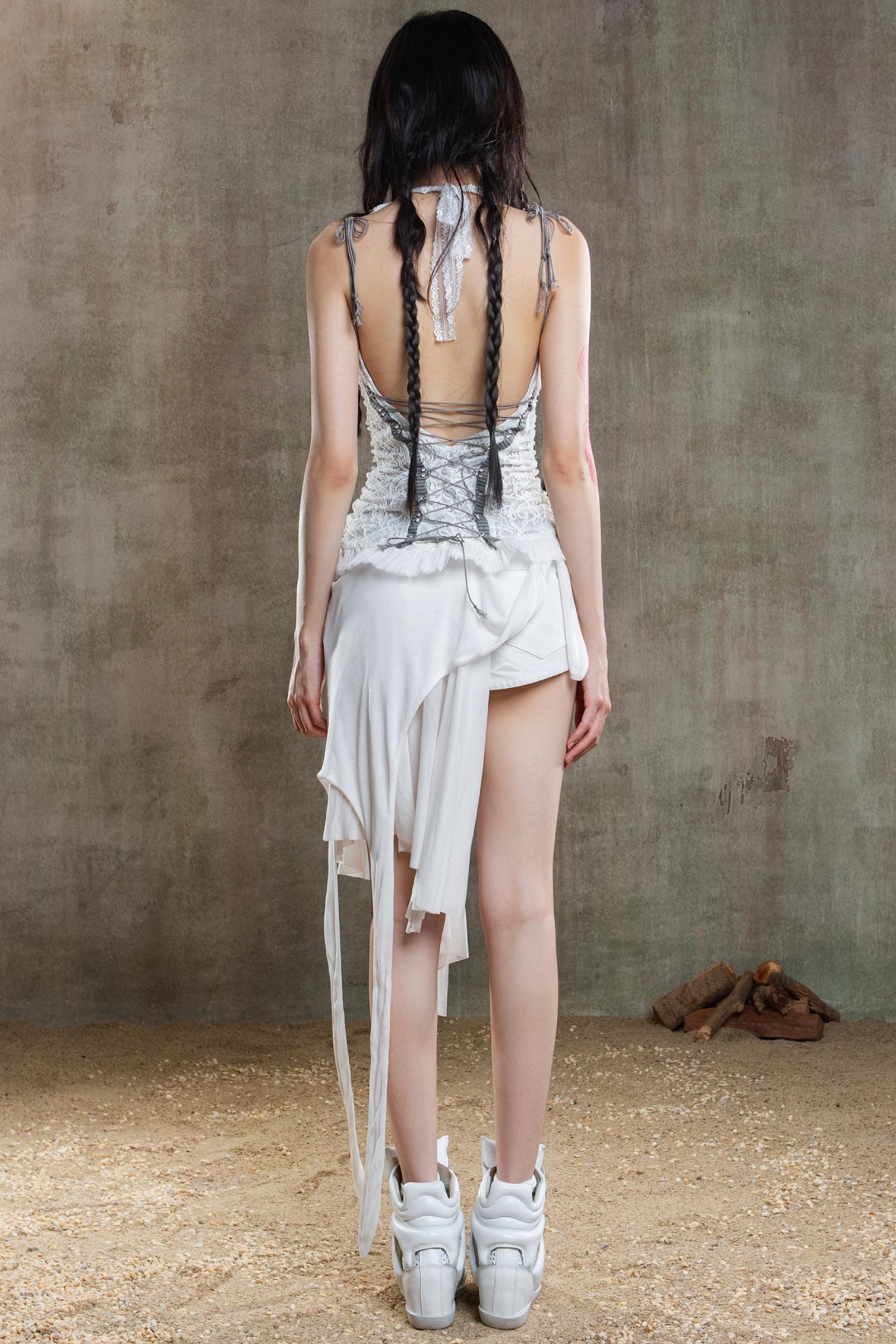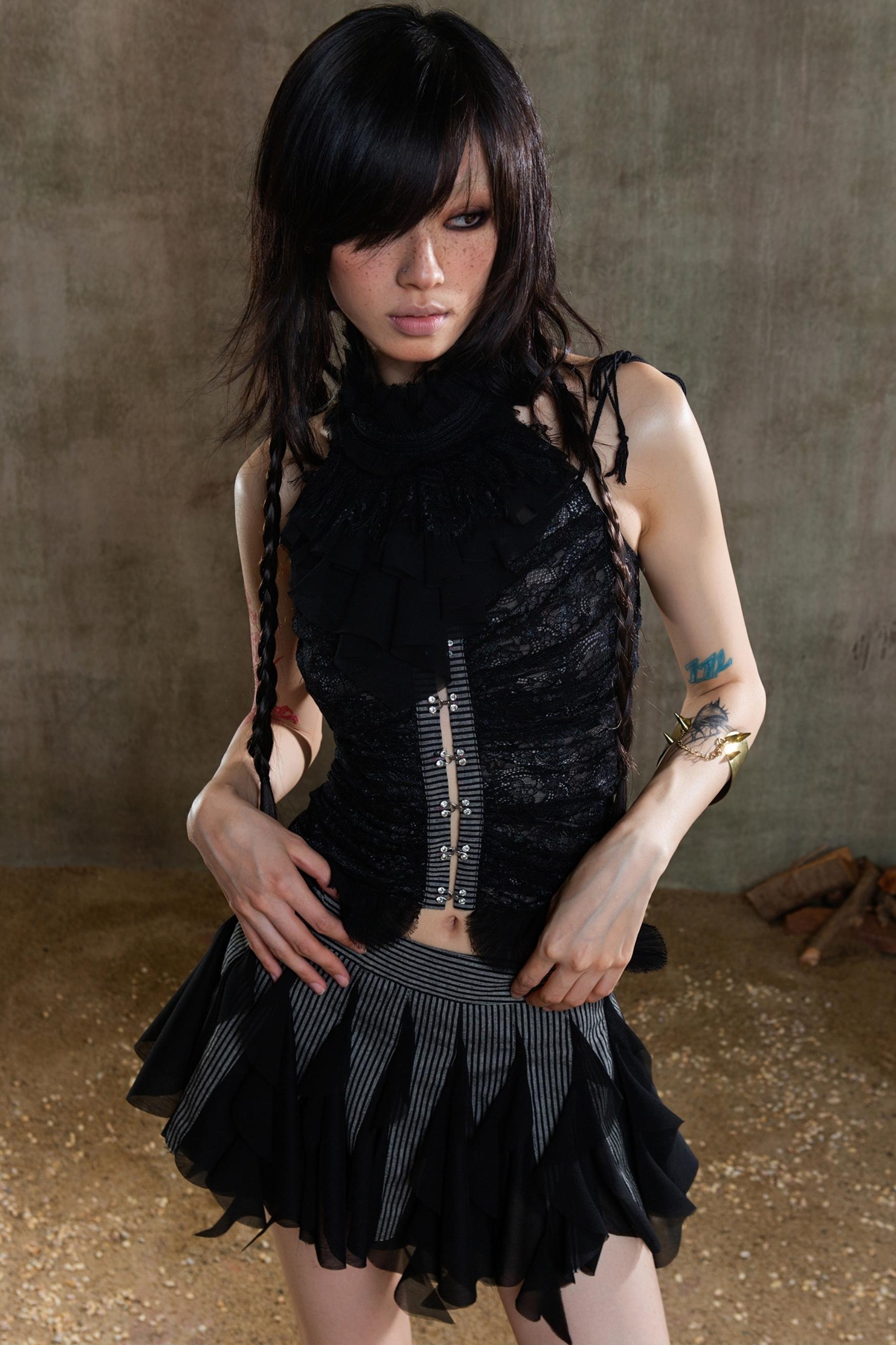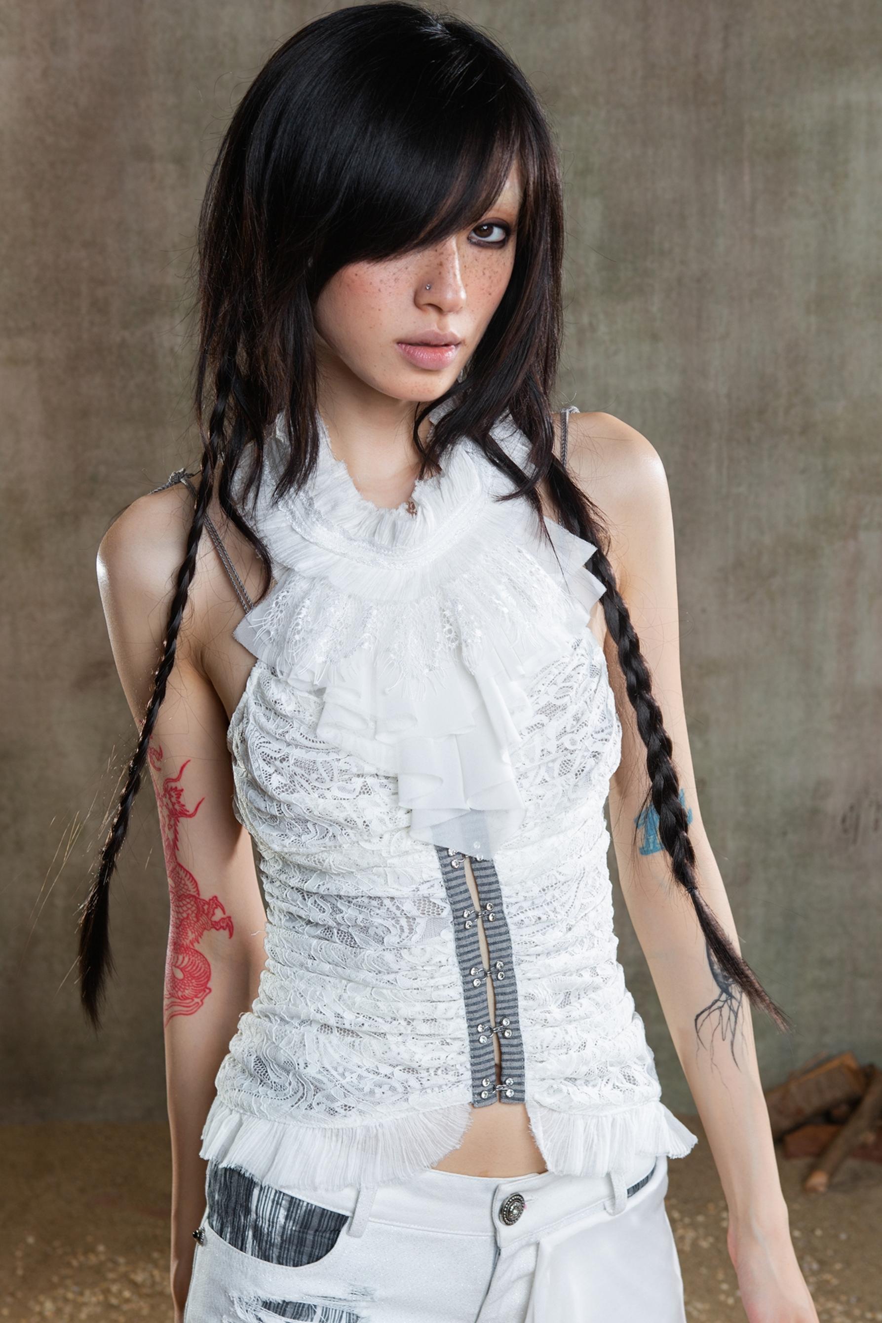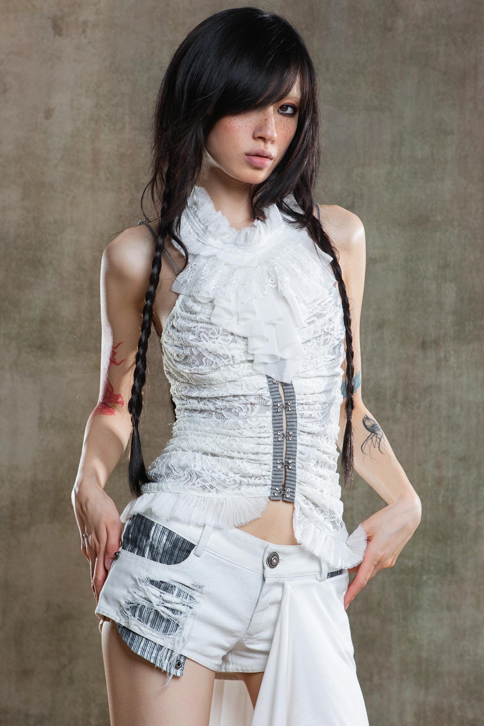 Necklace Accessory Multi-Ruched Lace Halter Top Set