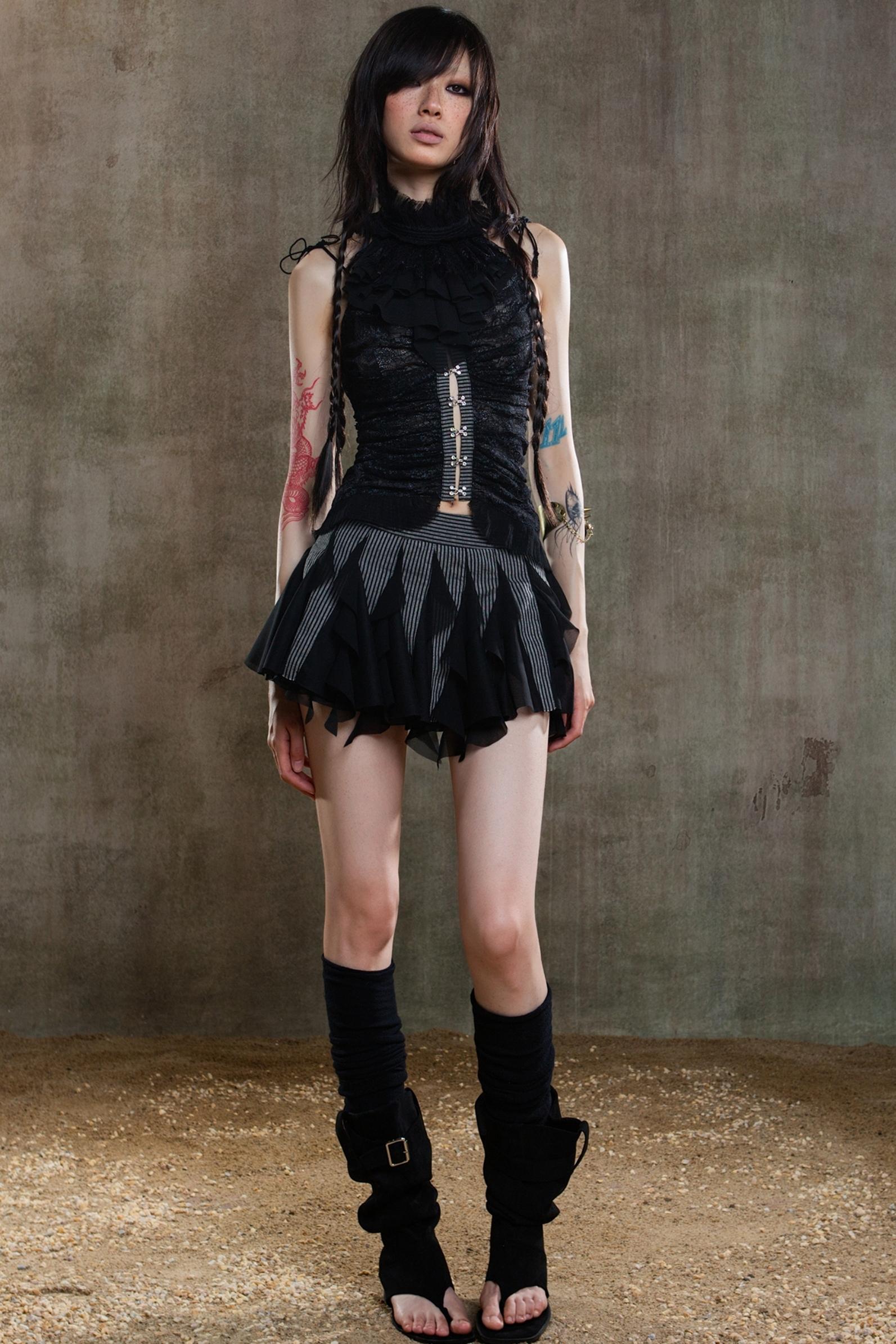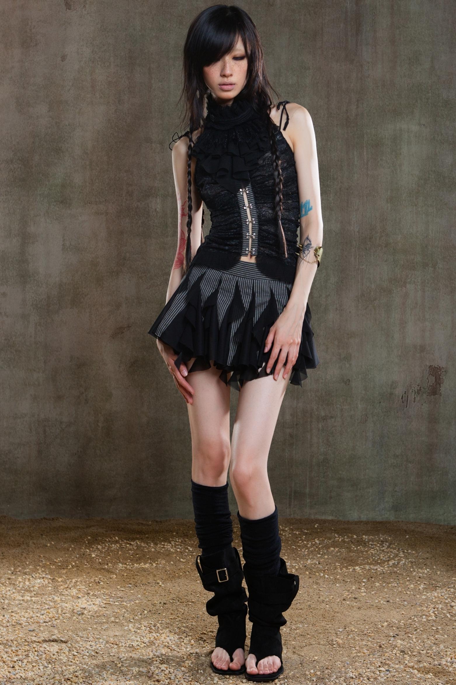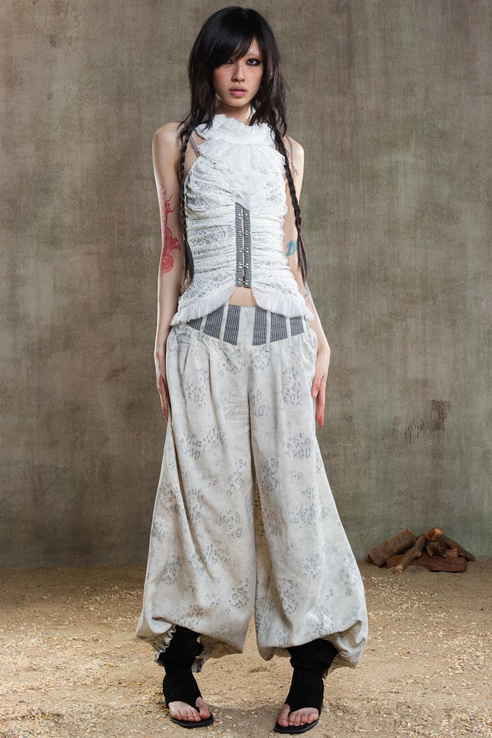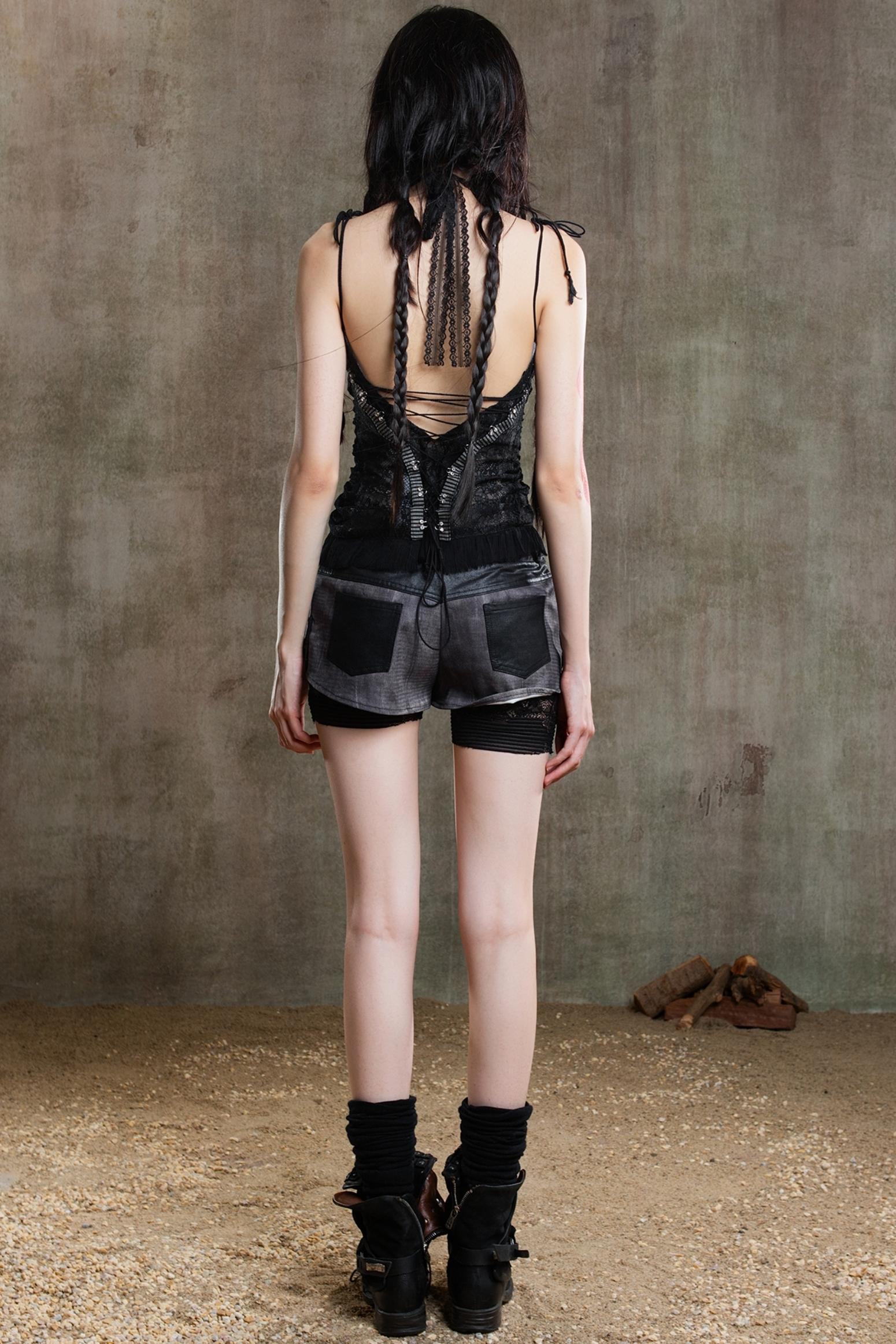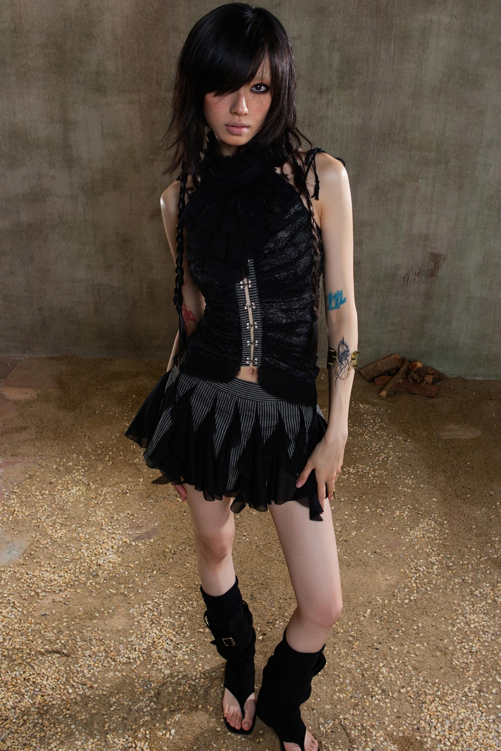 Necklace Accessory Multi-Ruched Lace Halter Top Set