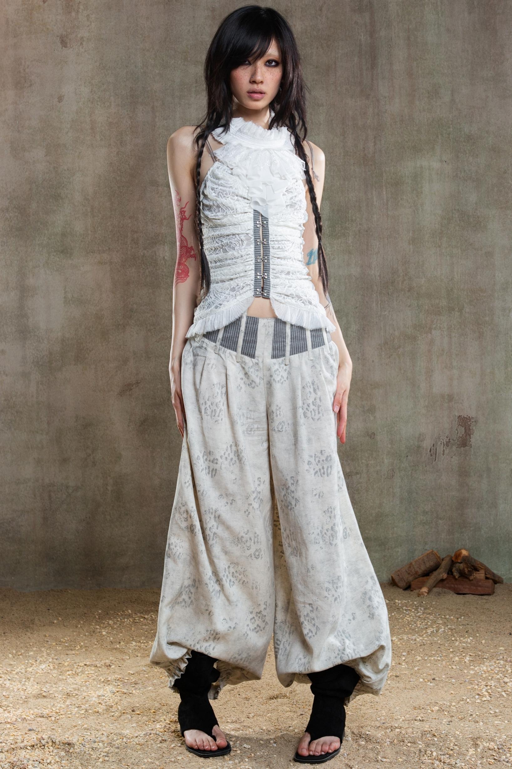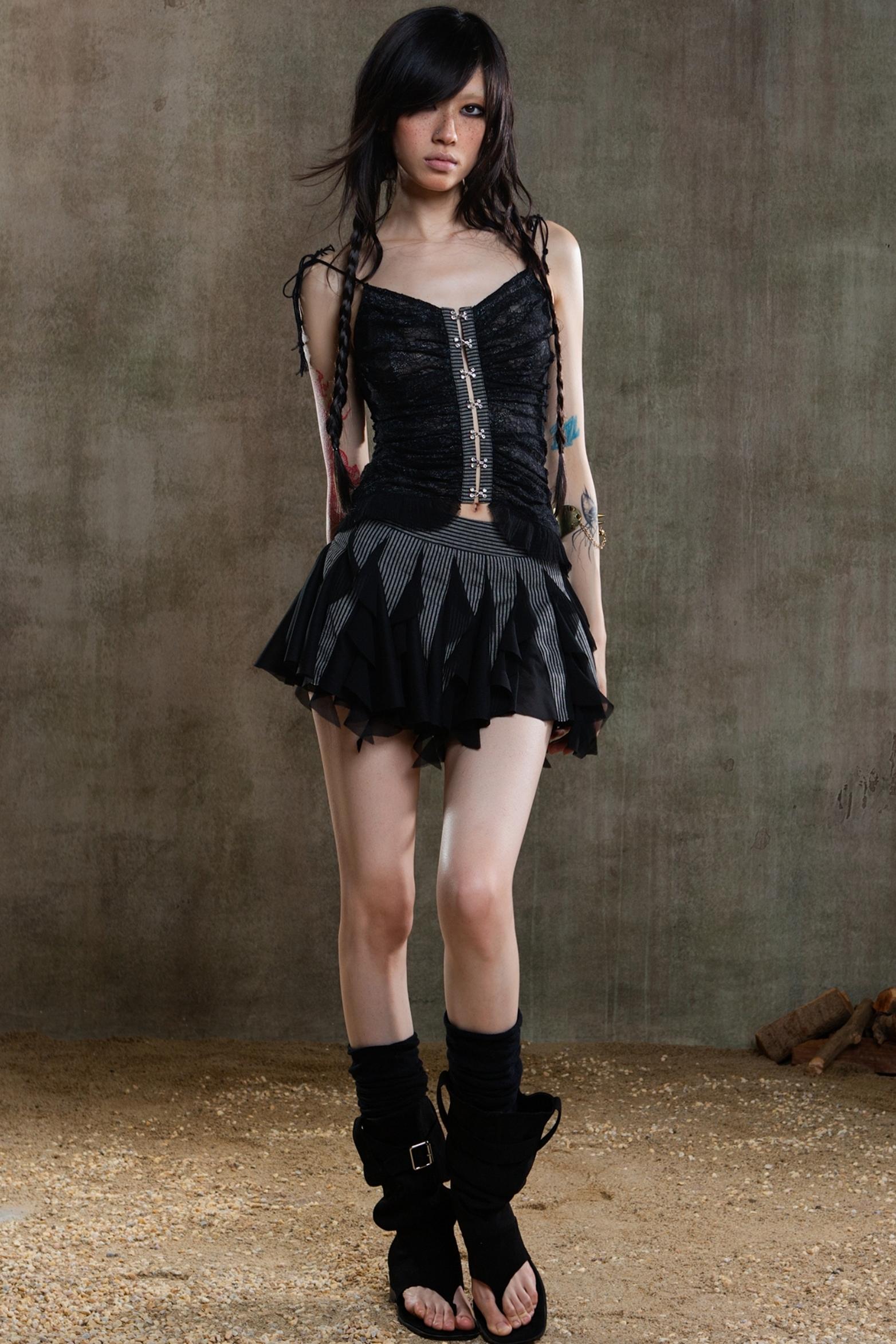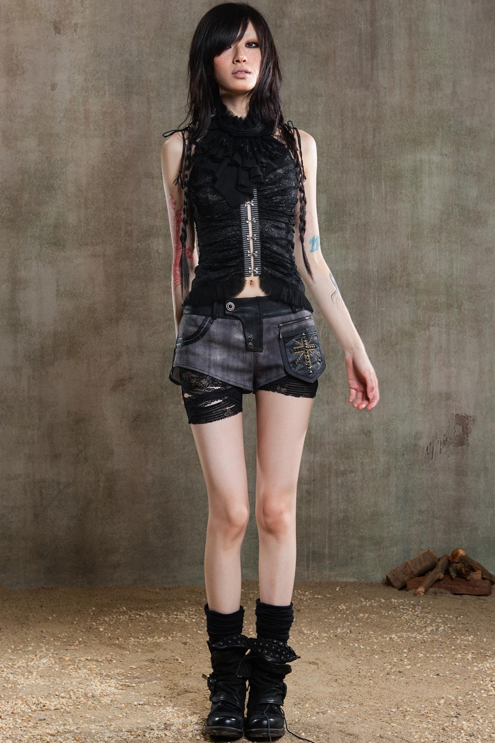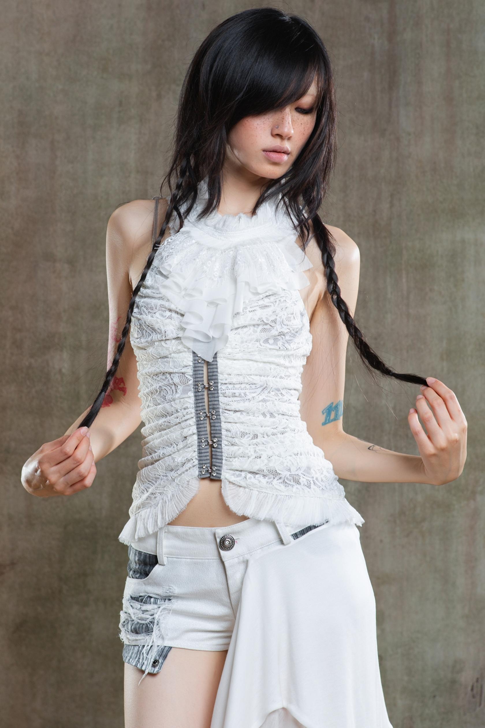 Necklace Accessory Multi-Ruched Lace Halter Top Set