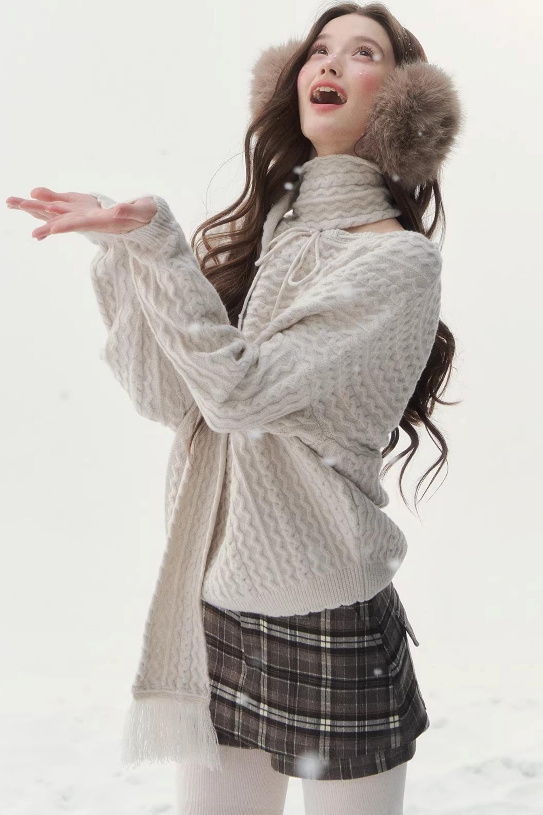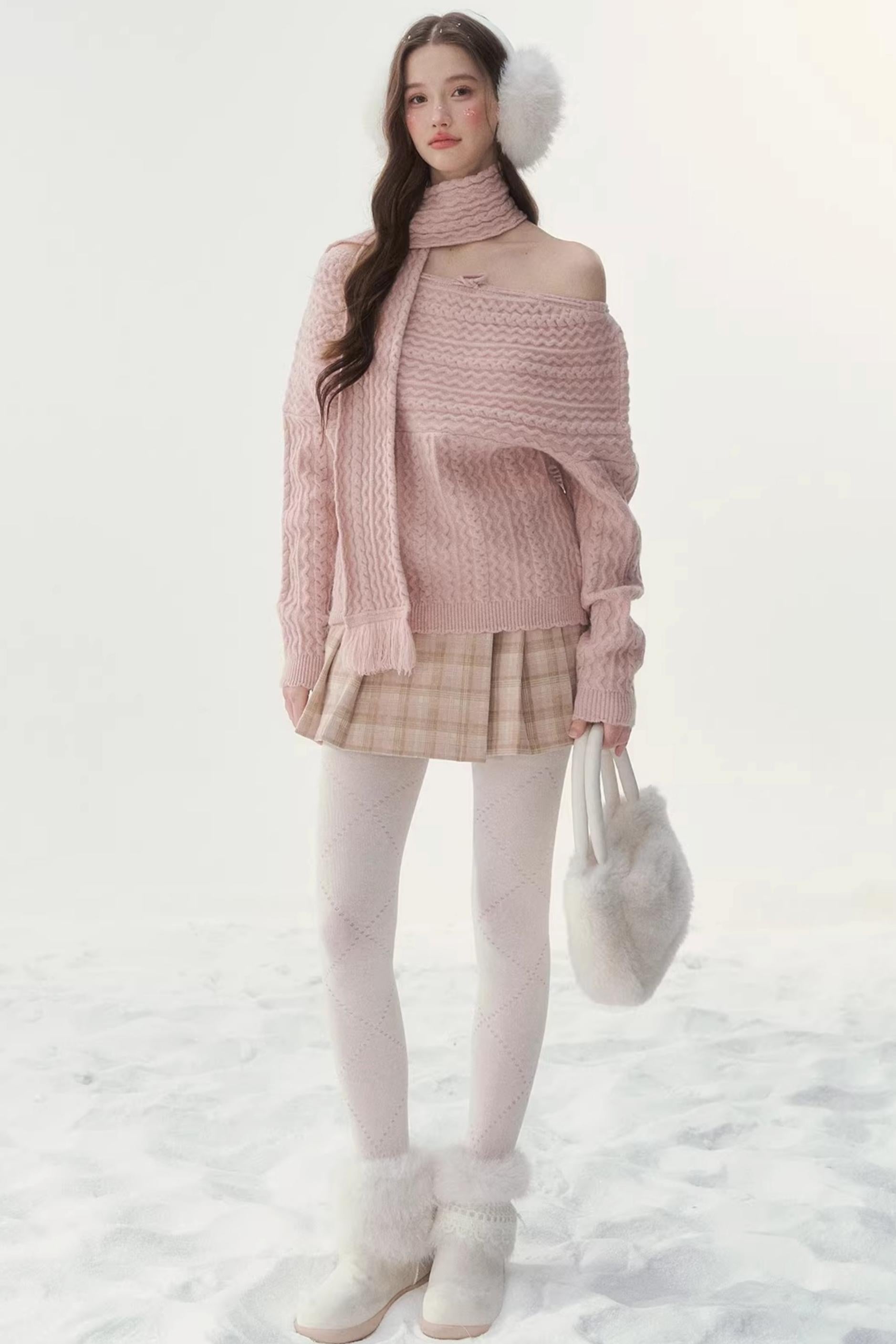 Vintage Off-Shoulder Knit Sweater