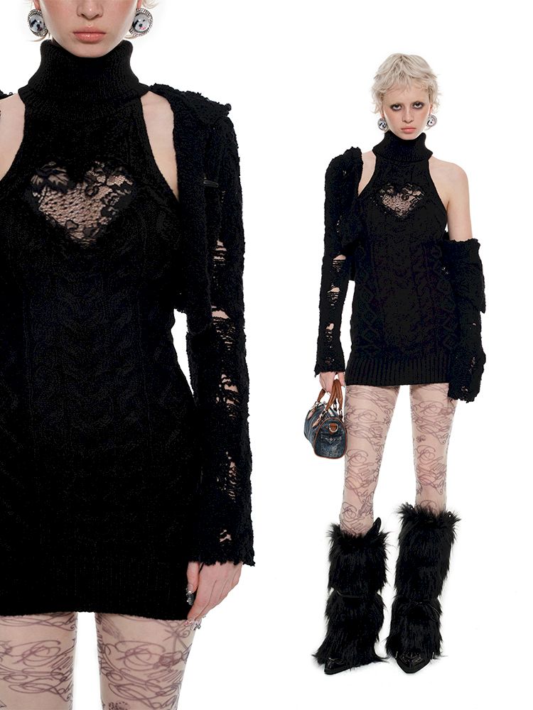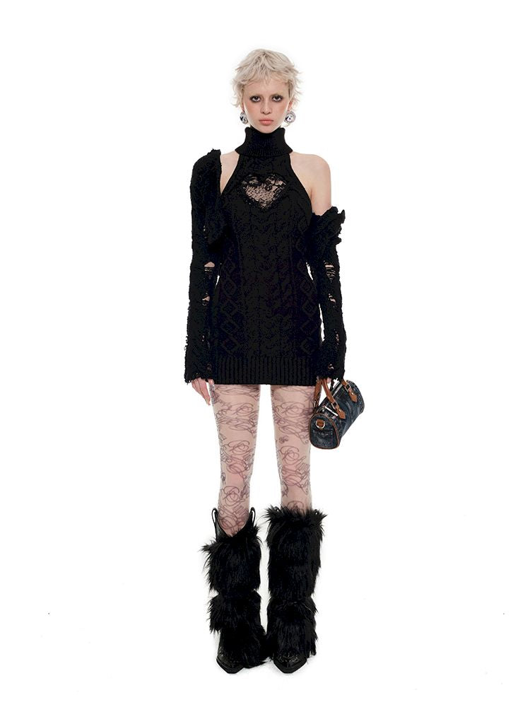 High neck knit undershirt dress