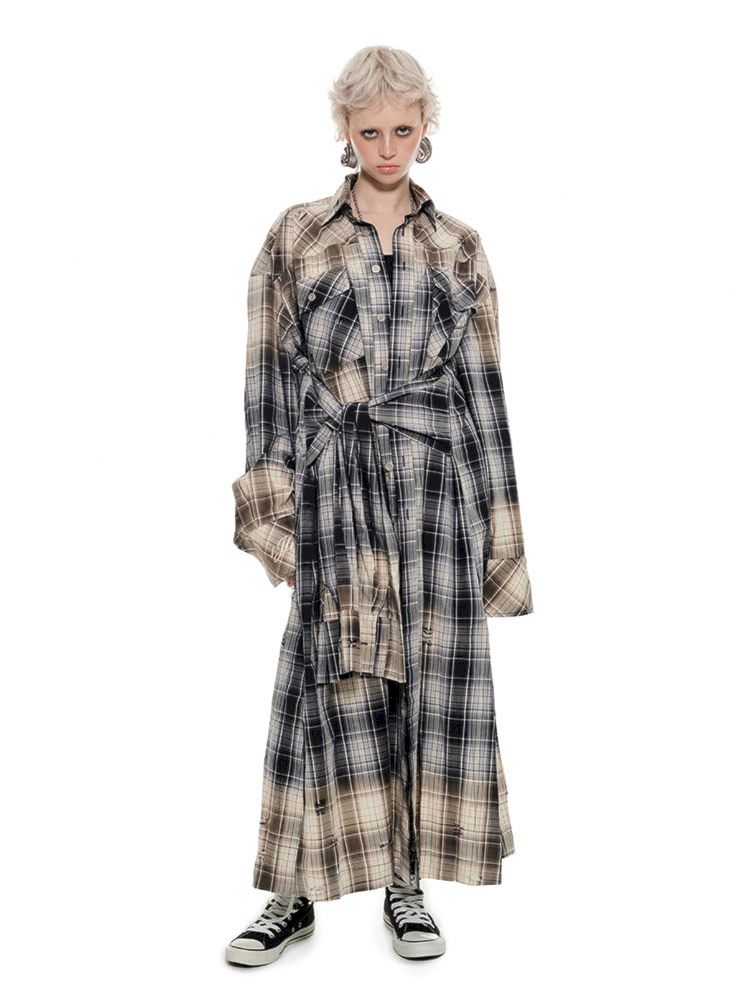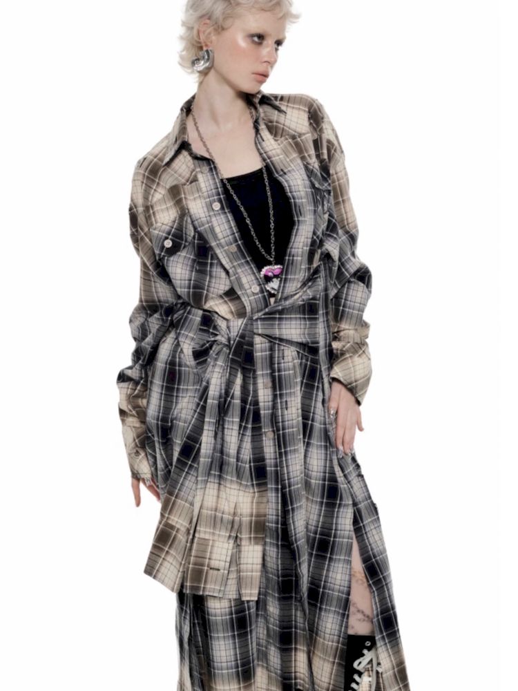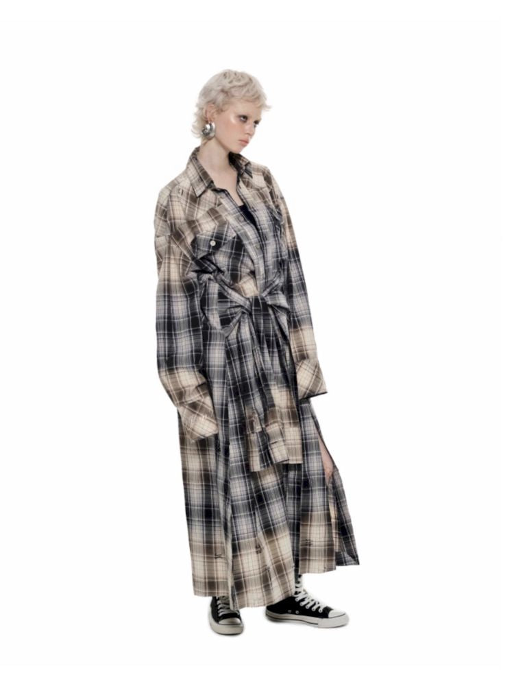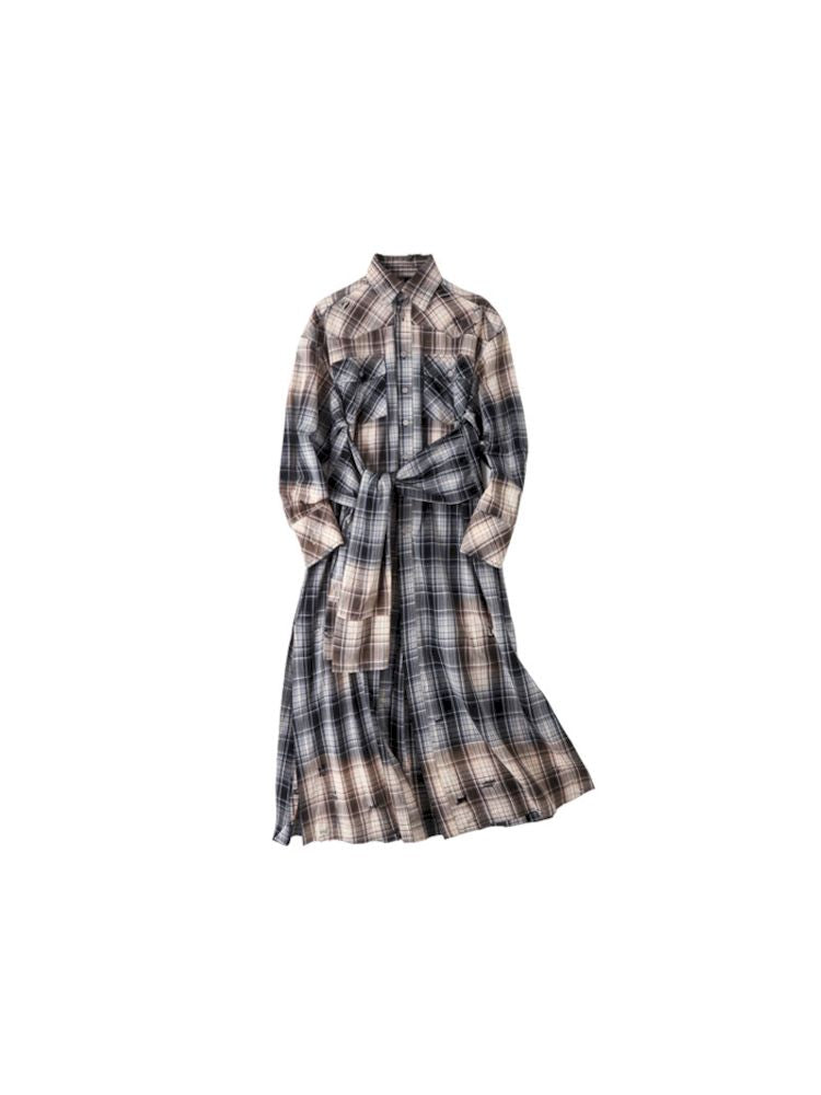 Long Plaid Shirt Style Dress