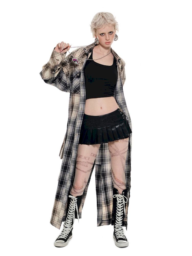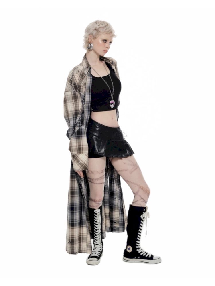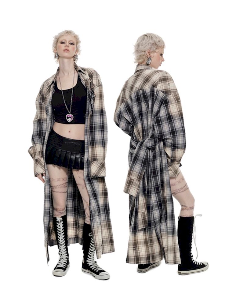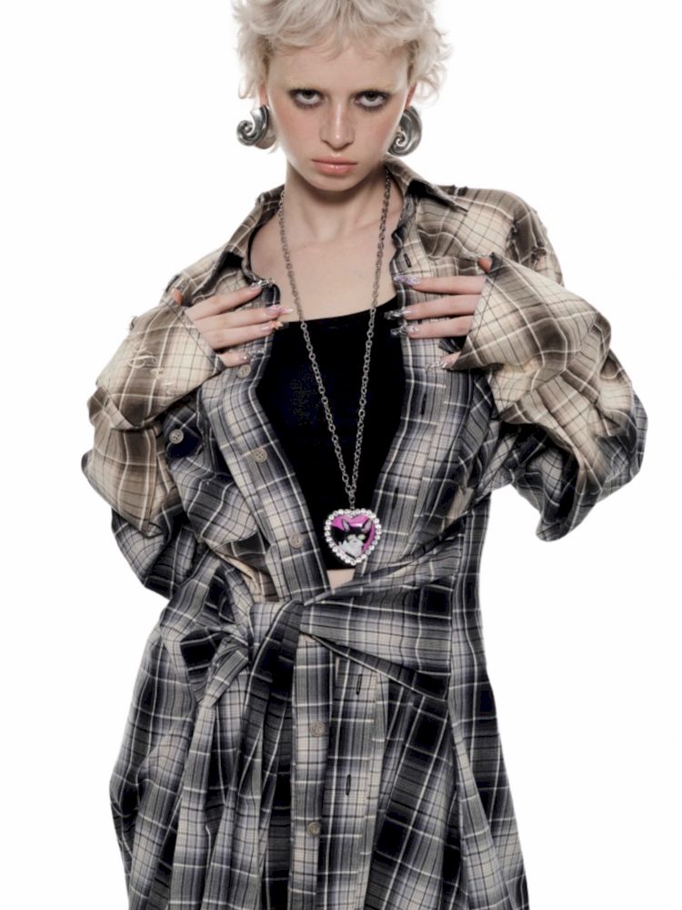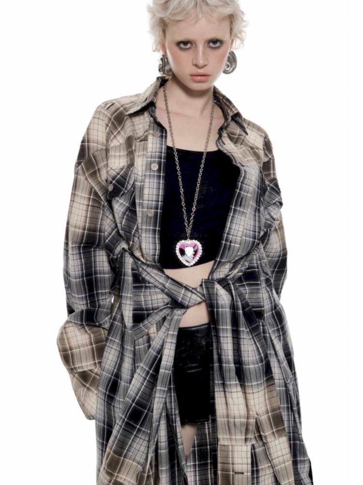 Long Plaid Shirt Style Dress