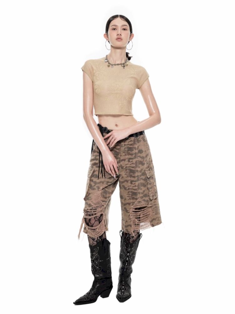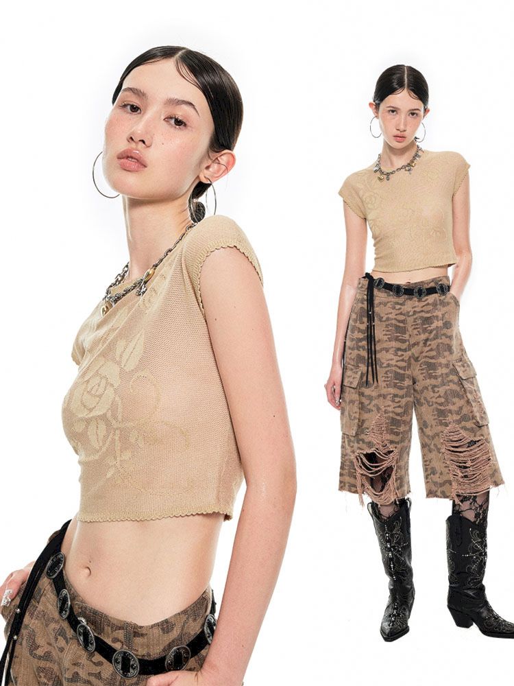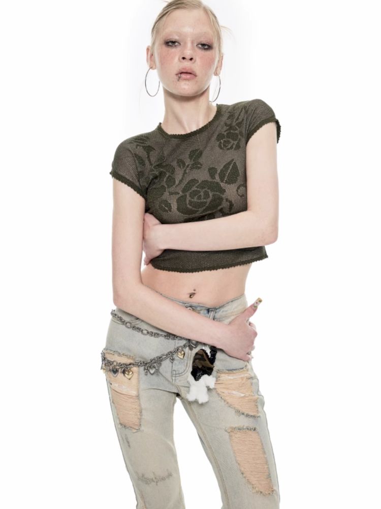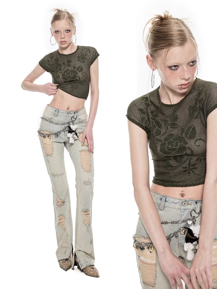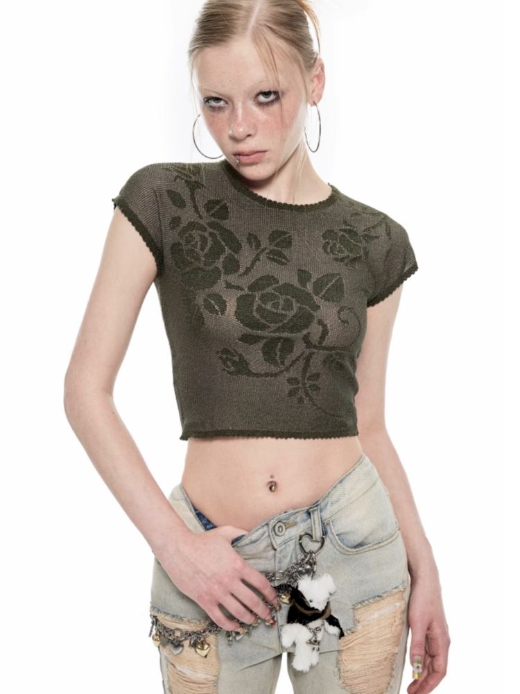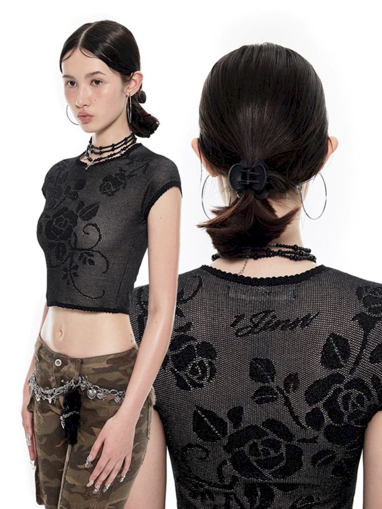 Fine flash knitted short-sleeved T-shirt