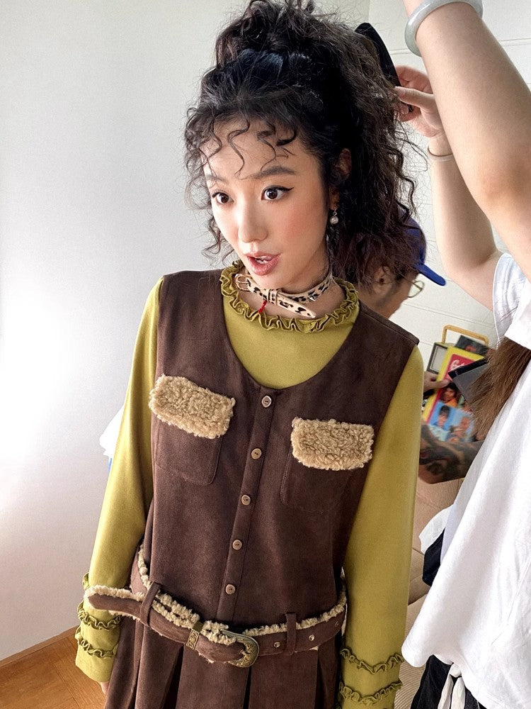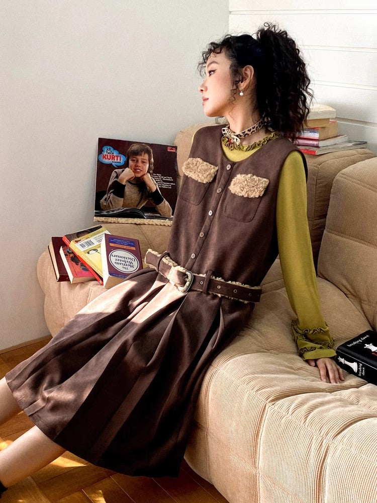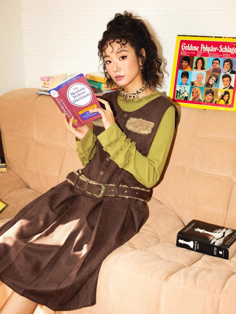 Belted suede skirt