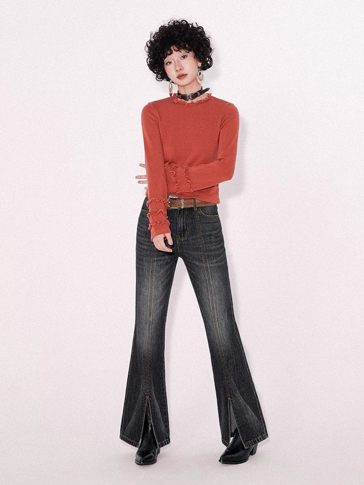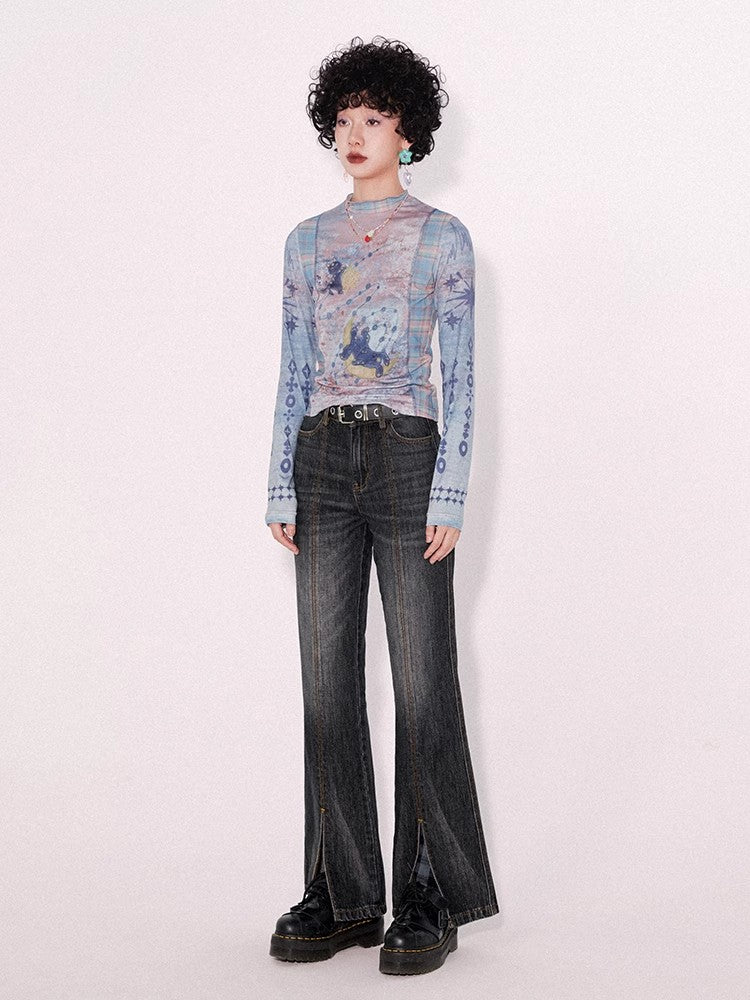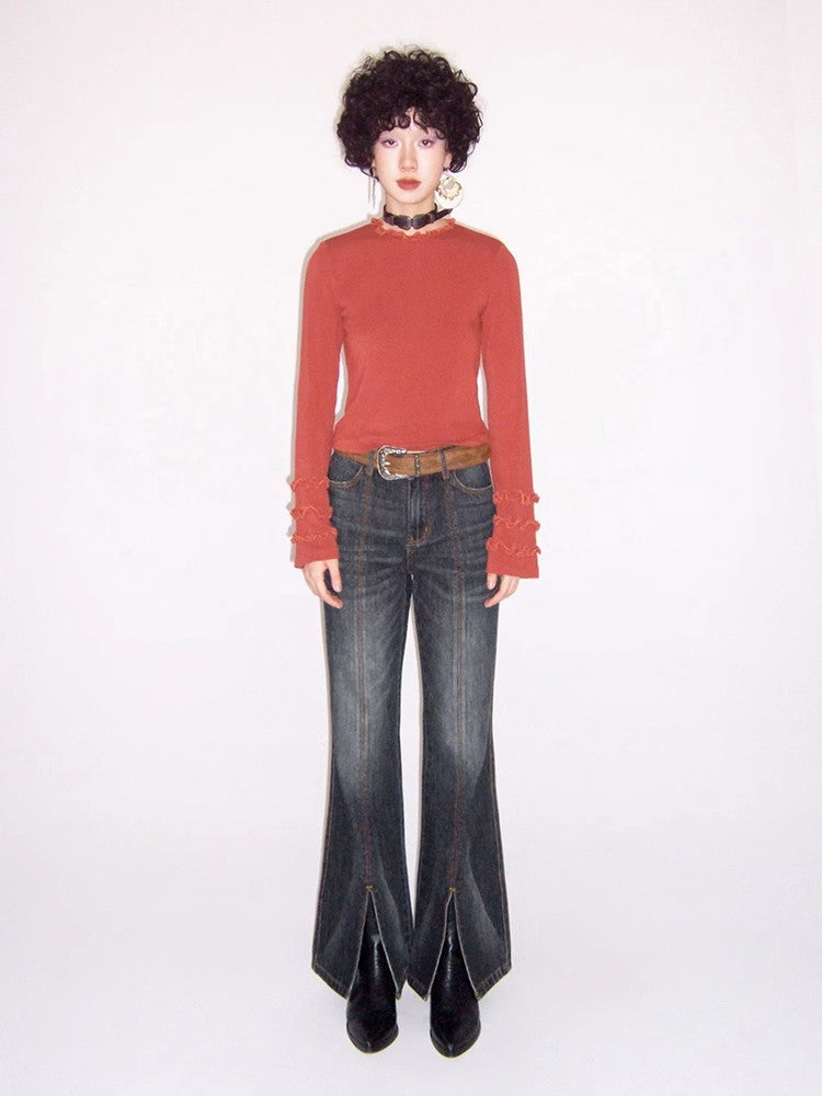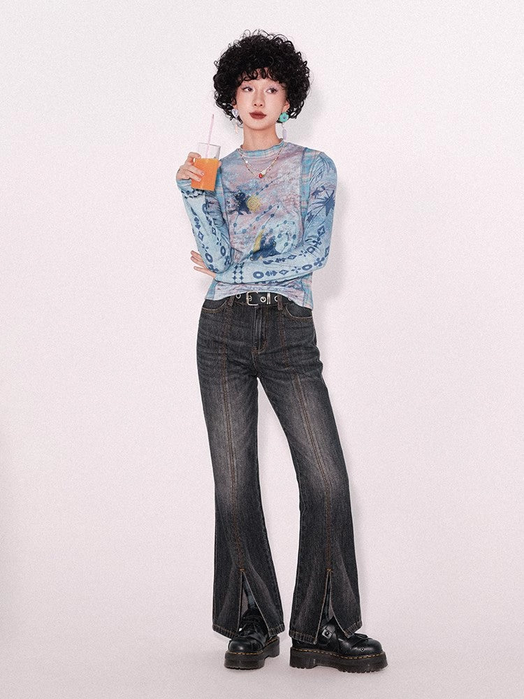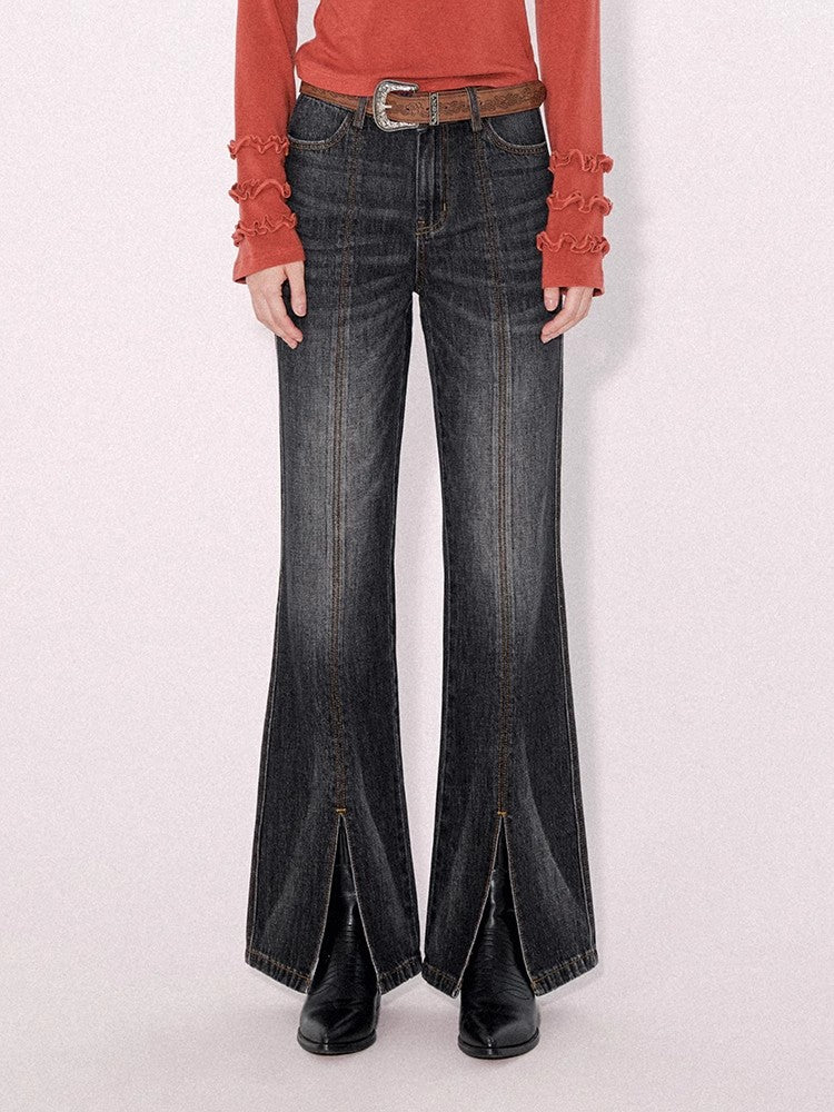Retro wash dark slim pants