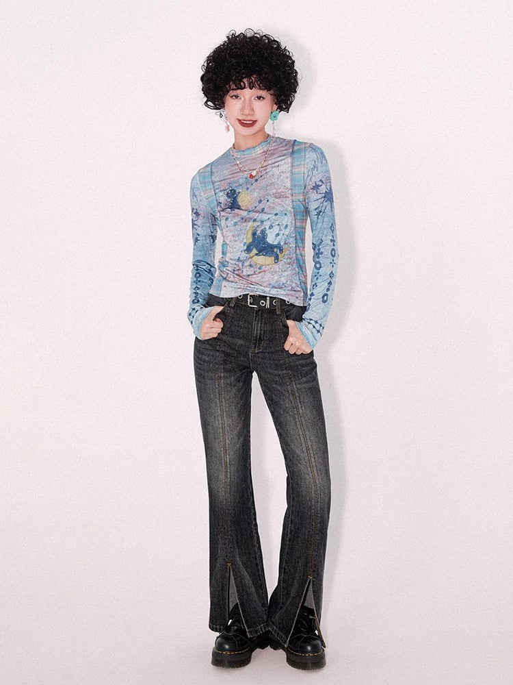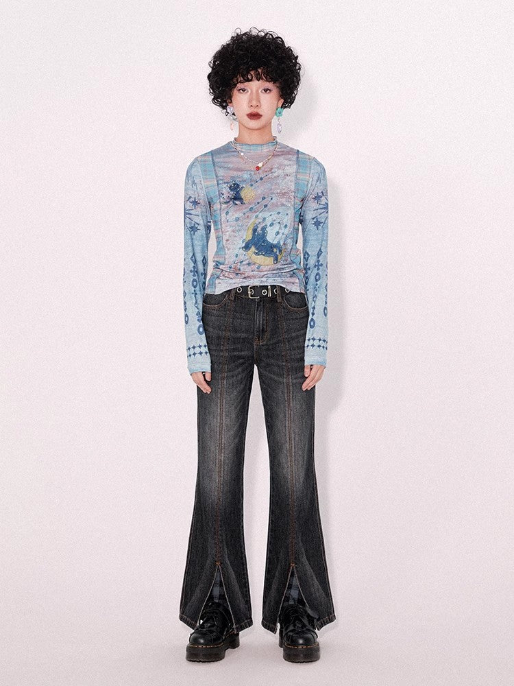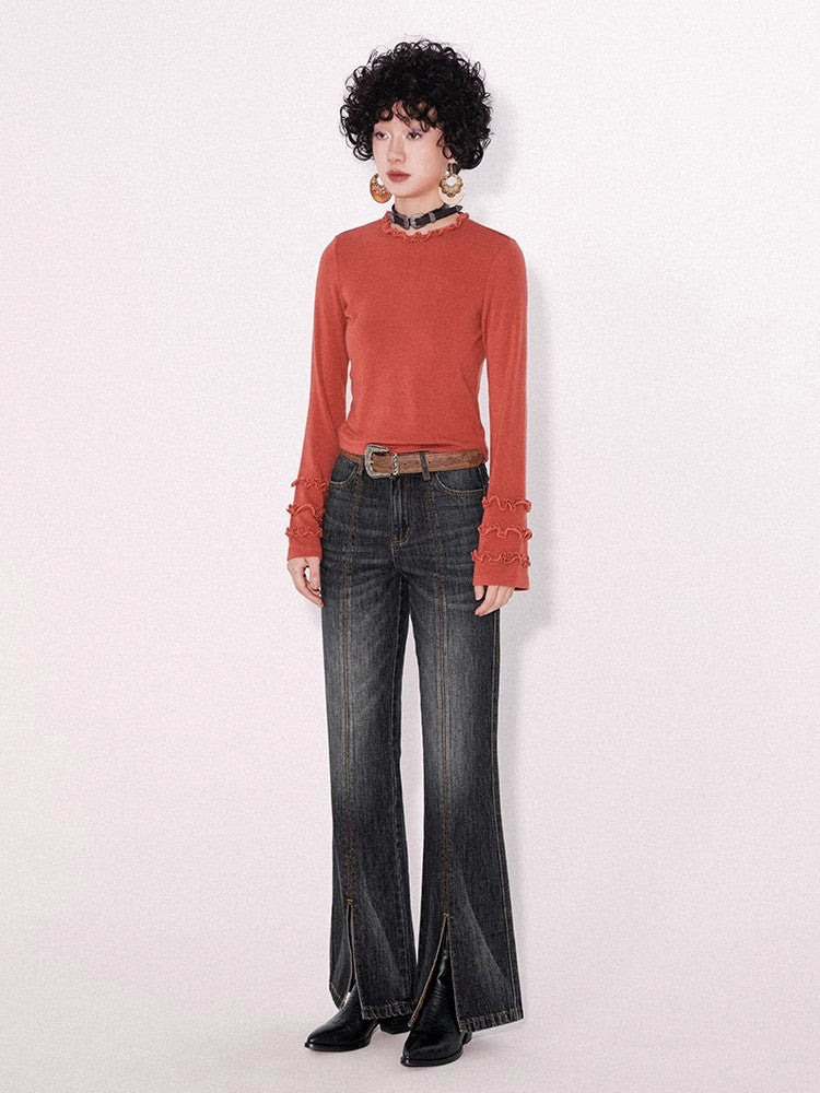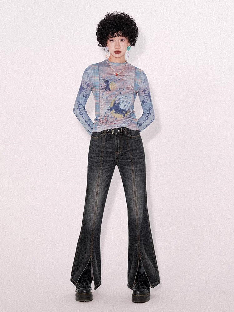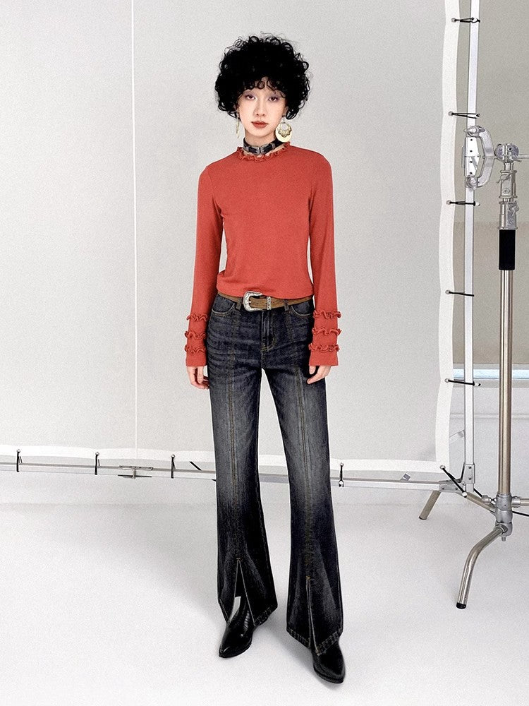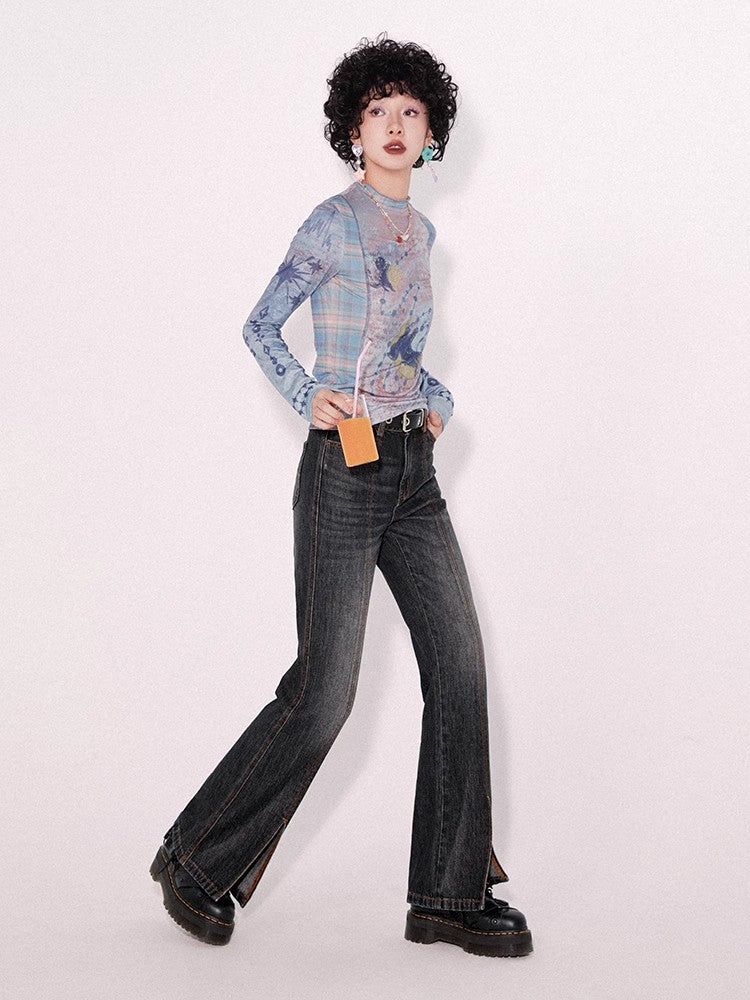 Retro wash dark slim pants