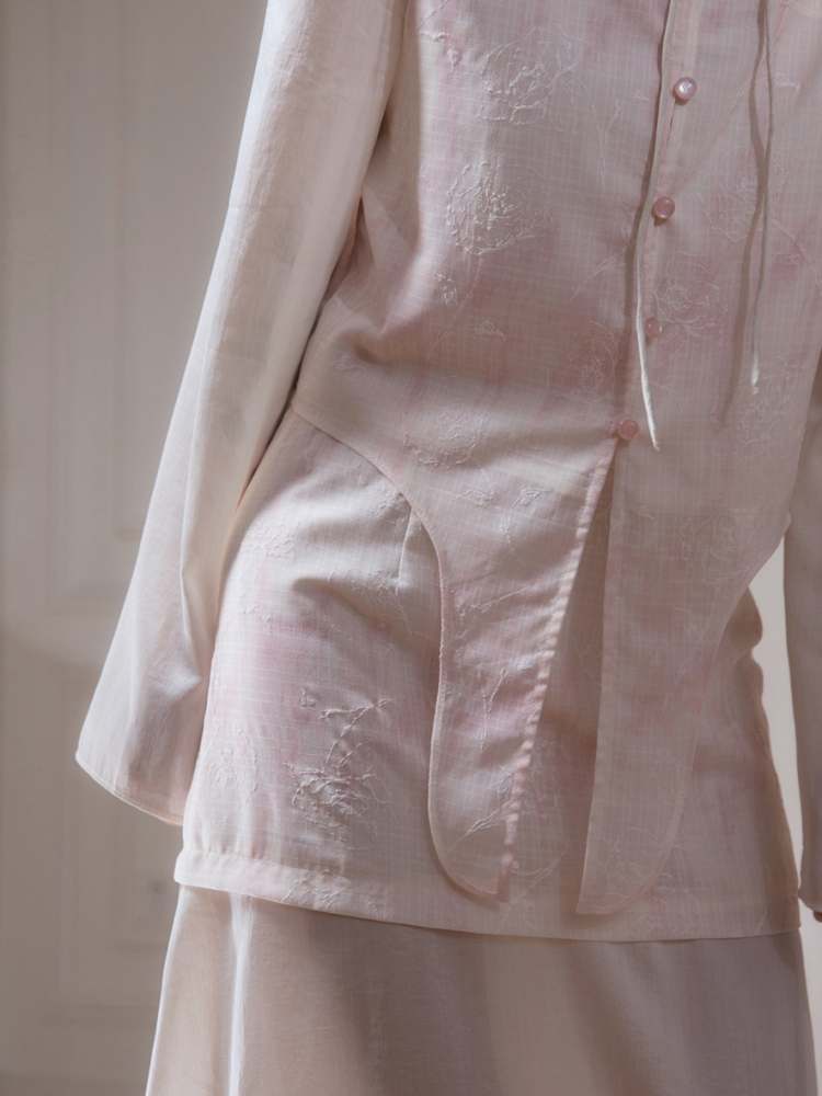 Chinese Style Flower Embroidery Shirt & Ruffle Hem Skirt