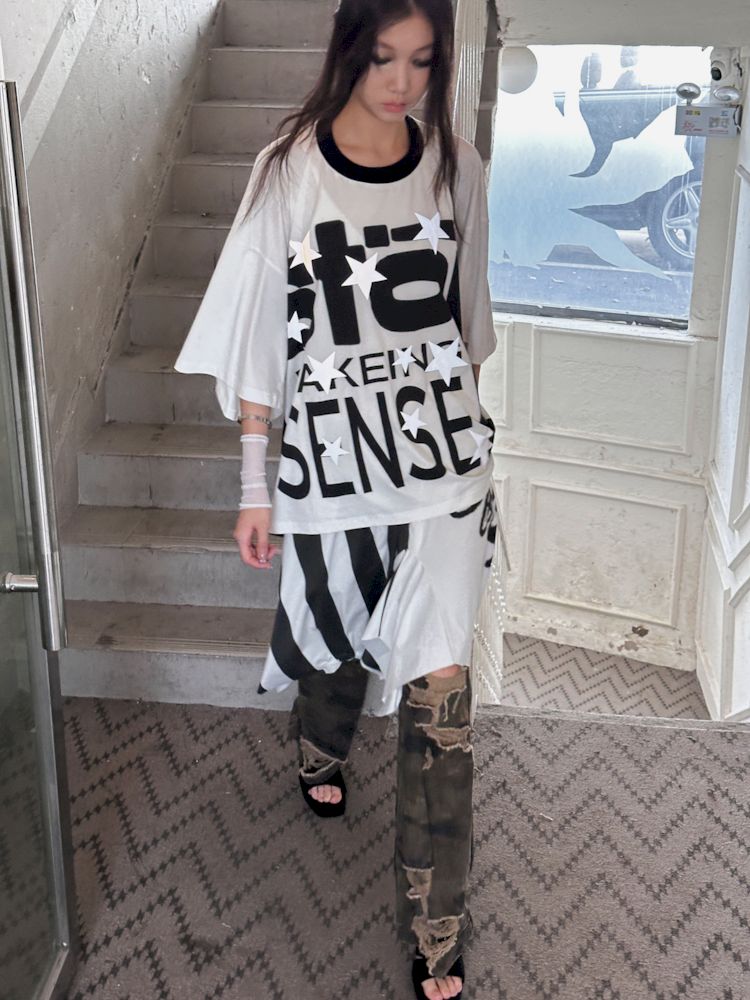 Striped Cropped Deconstructed Dual Purpose T-Shirt