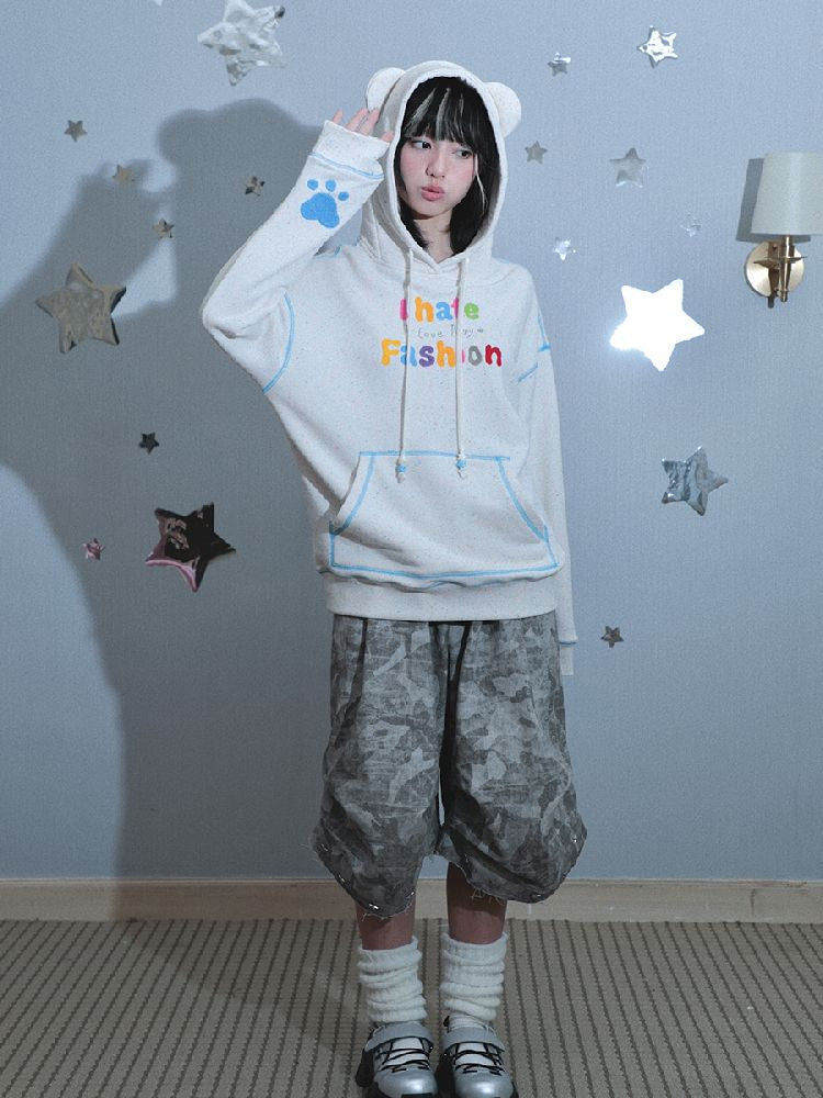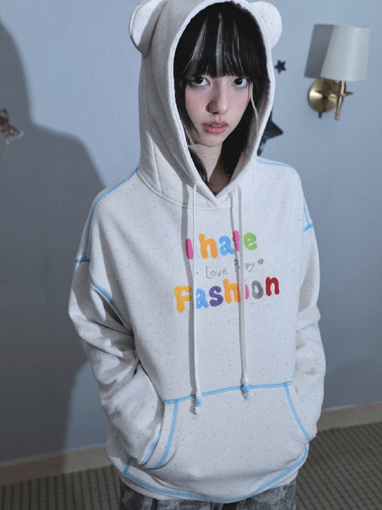 Bear ears hooded long-sleeved sweater