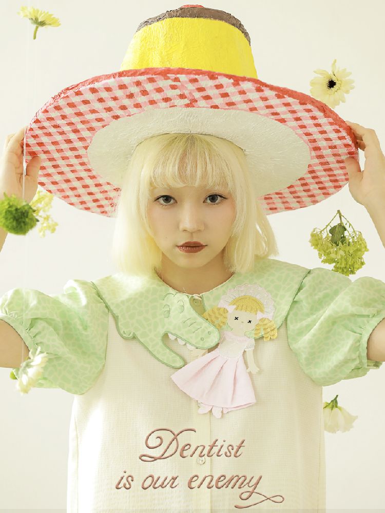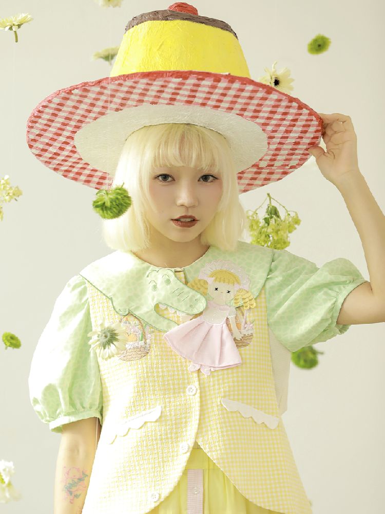 Lolita Embroidered Collar Fun Half Sleeve Shirt