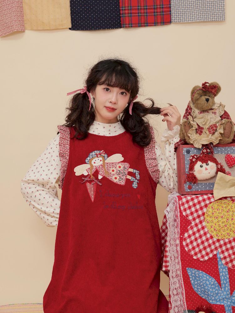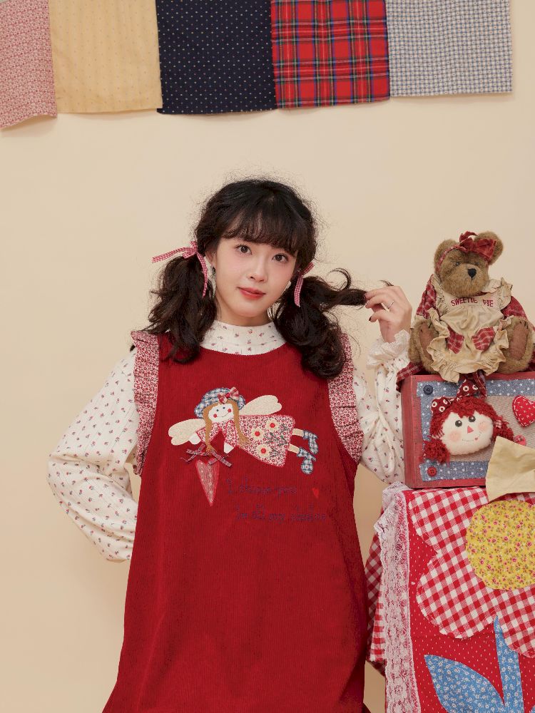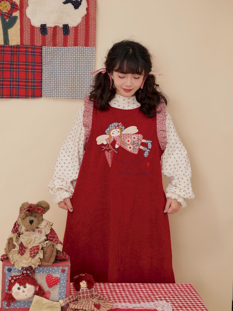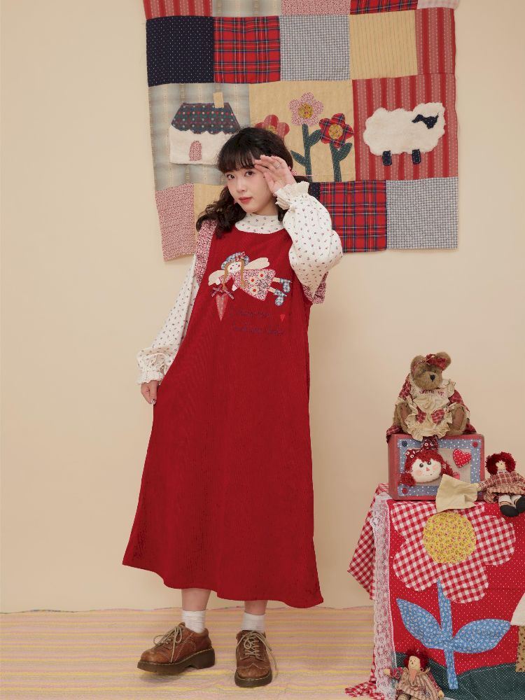 Lace Corduroy Red Vest Dress
