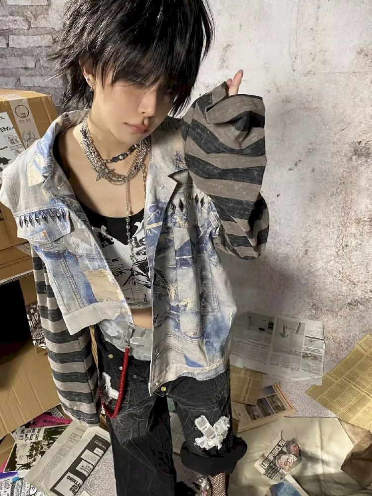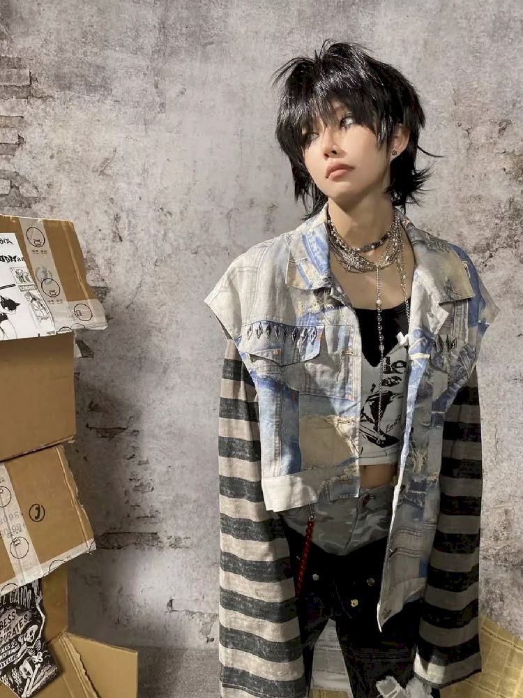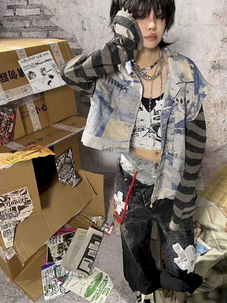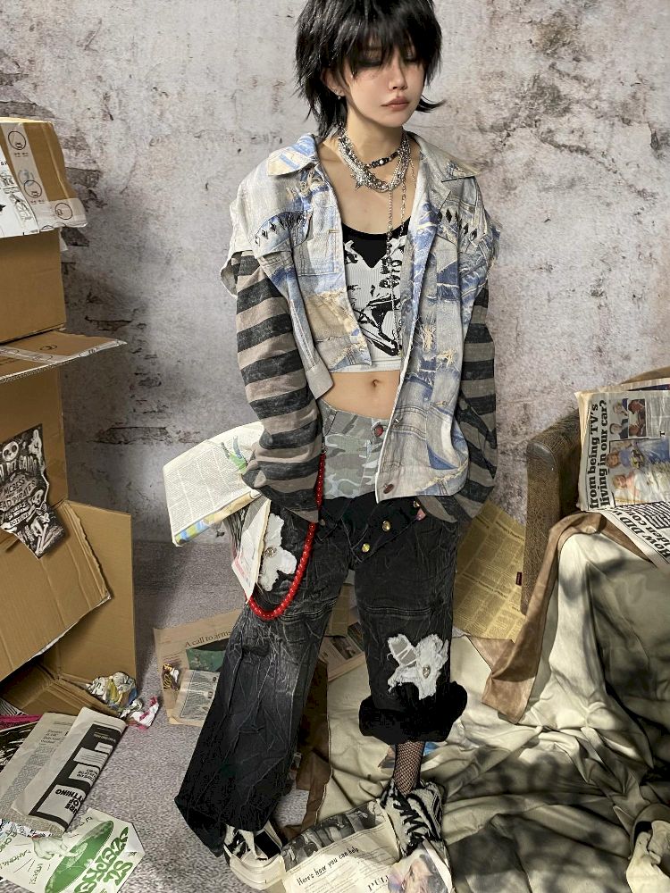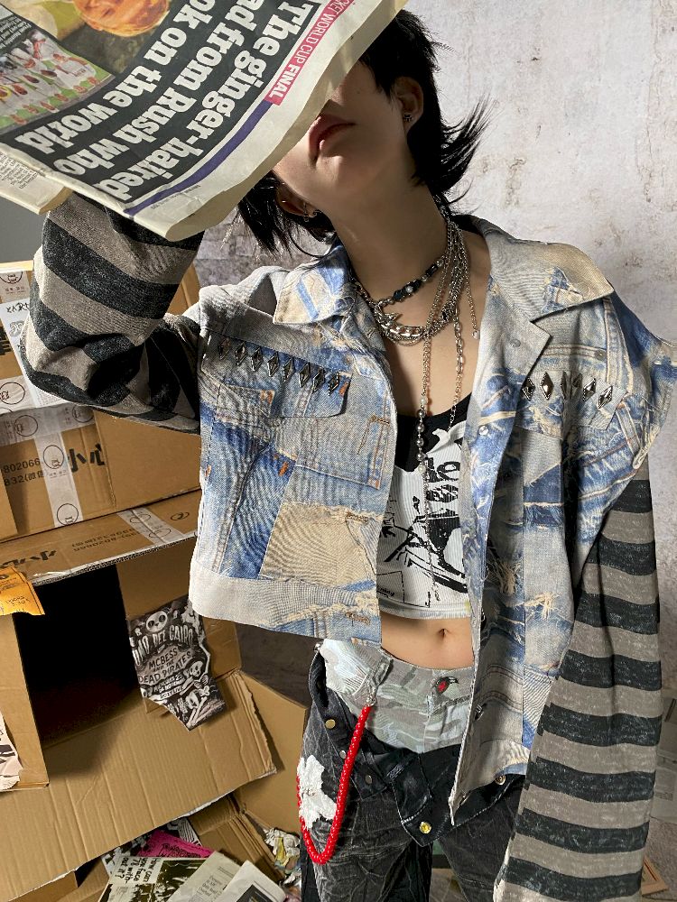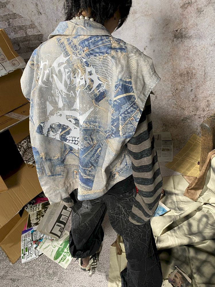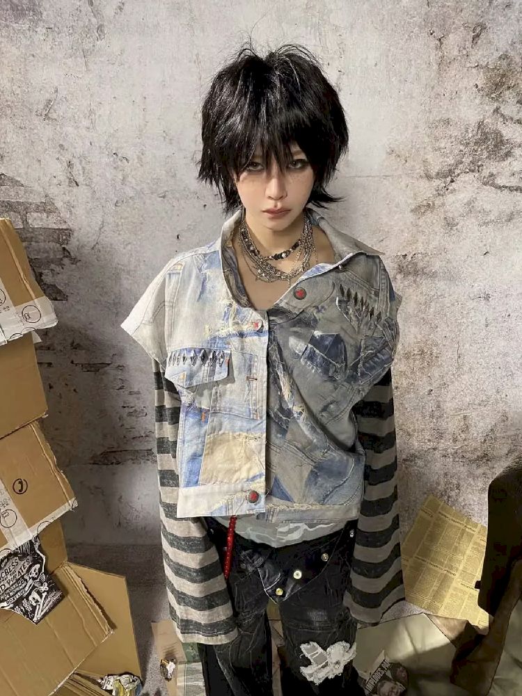 Fake Two Piece Patchwork Denim