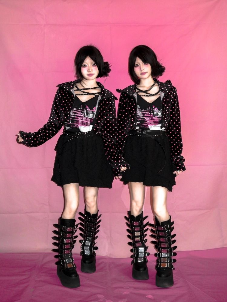 Black Rose Polka Dot Zipper Short Jacket