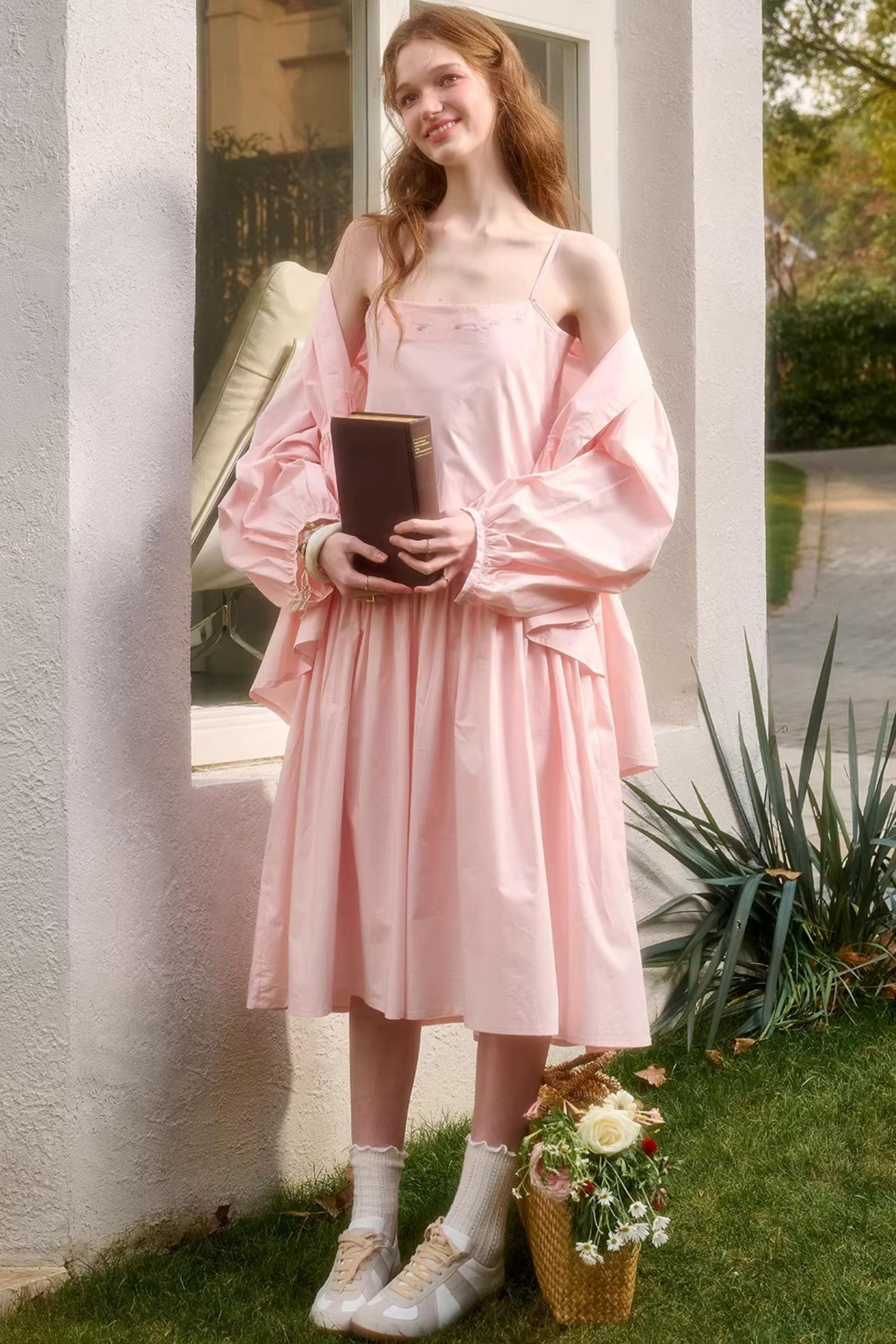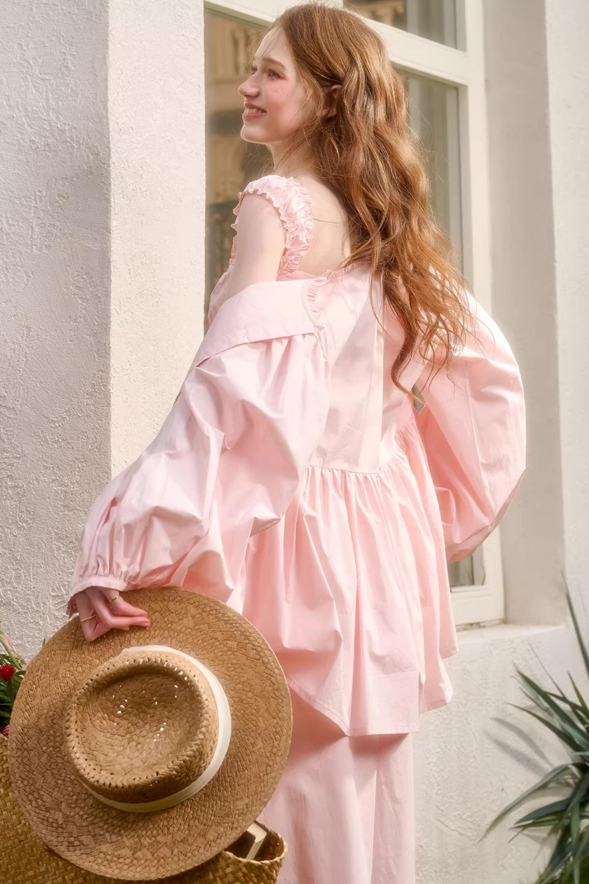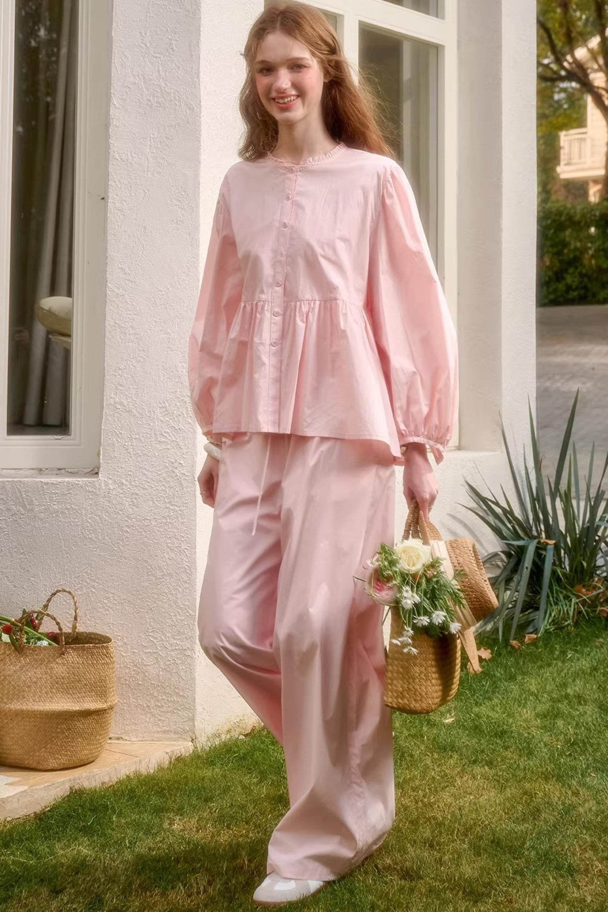 Baby Pink Cotton Dress Set-Up