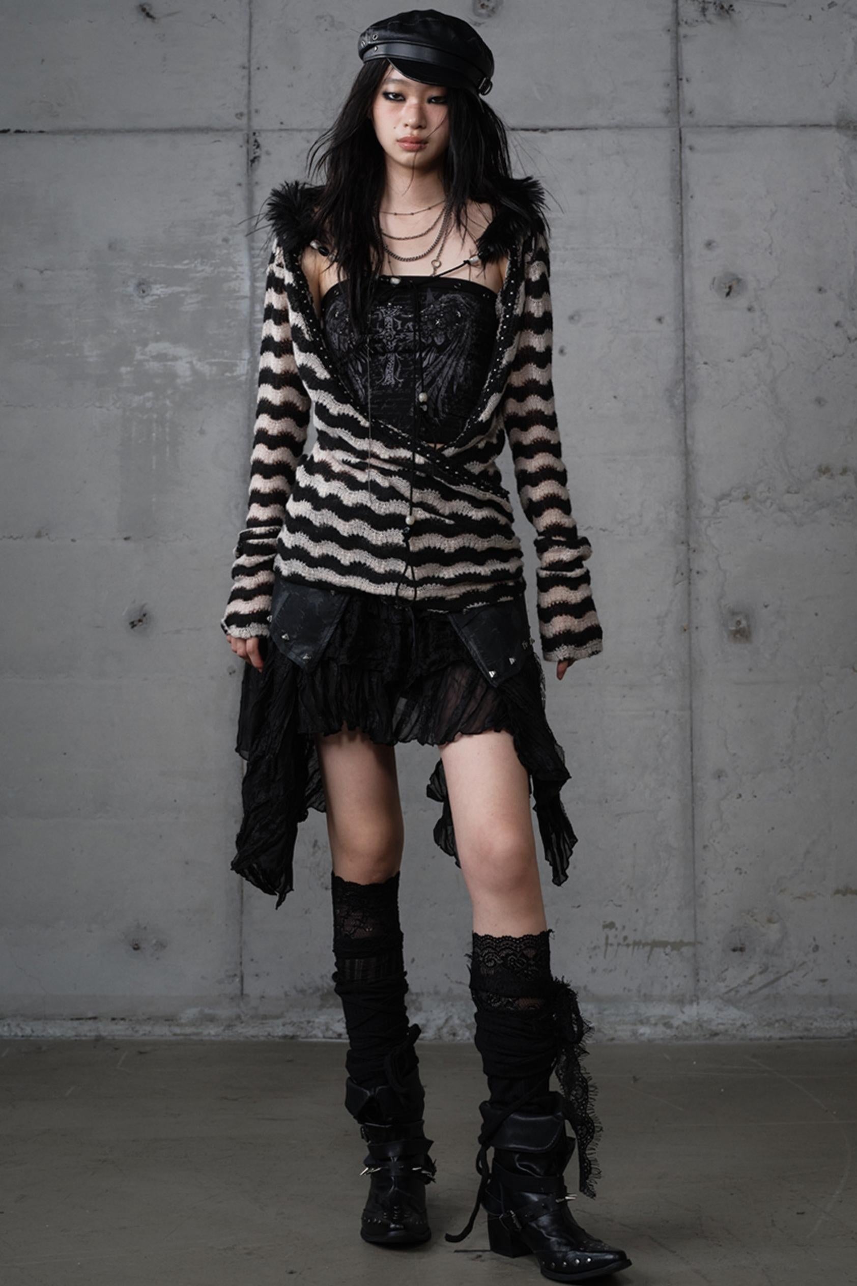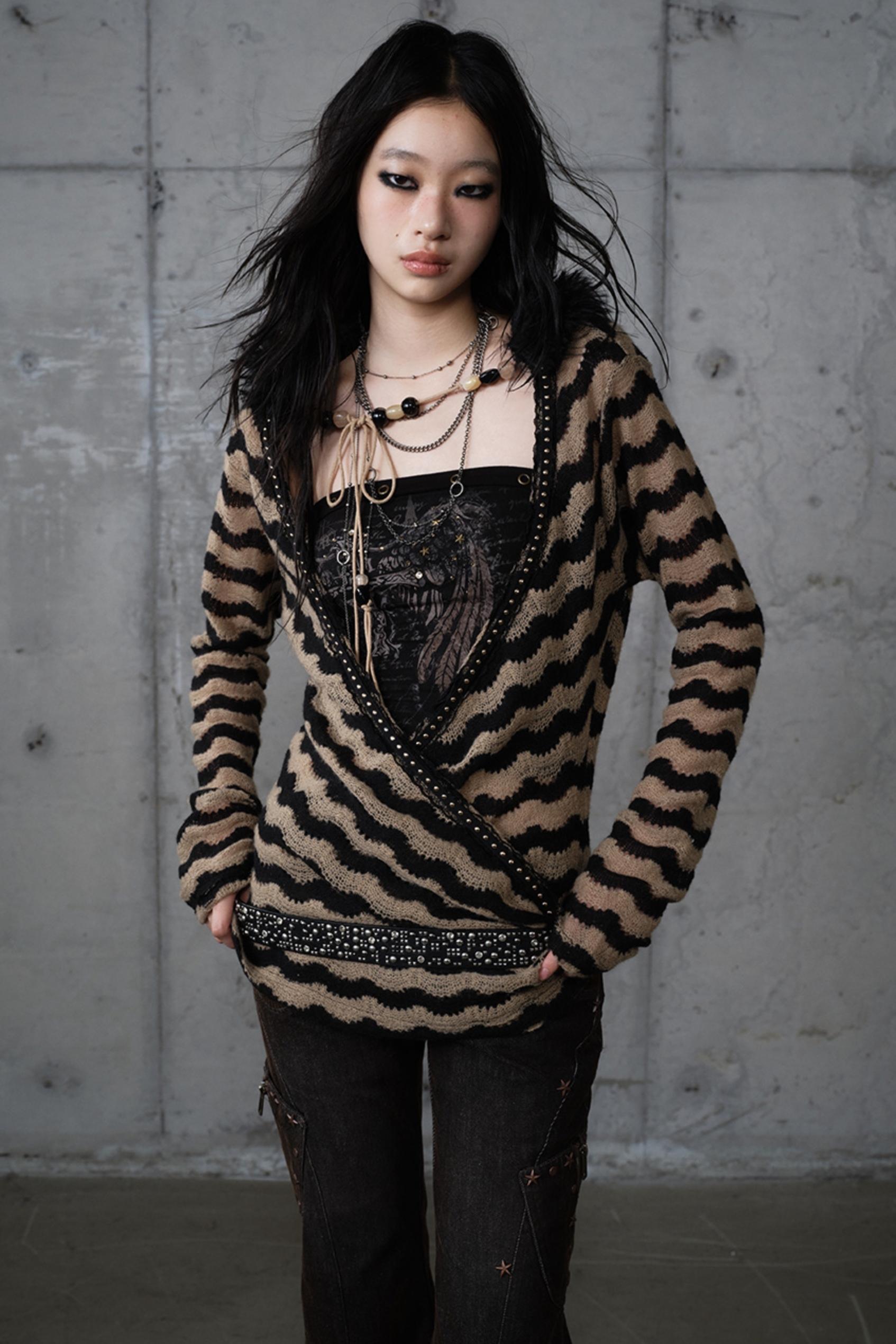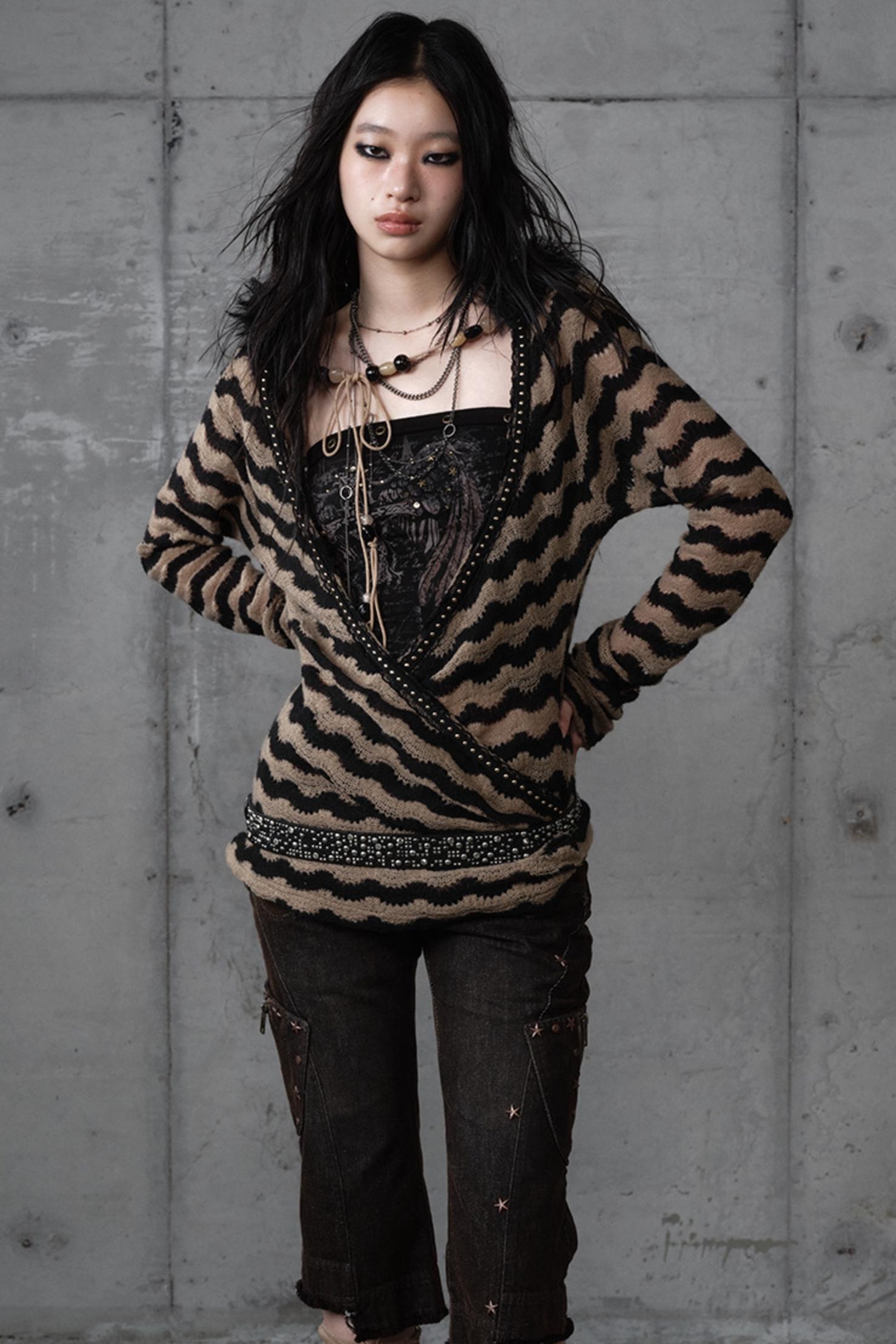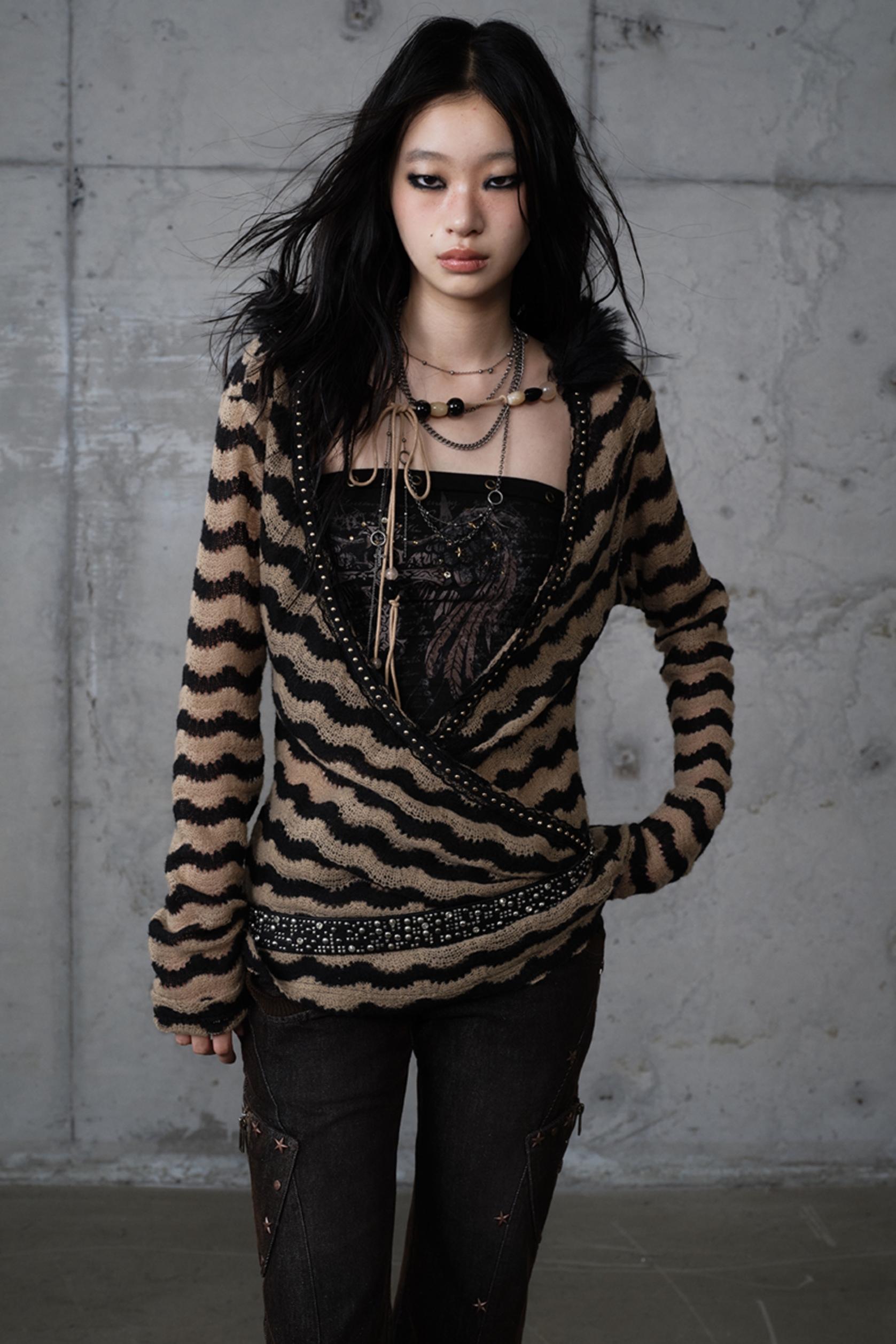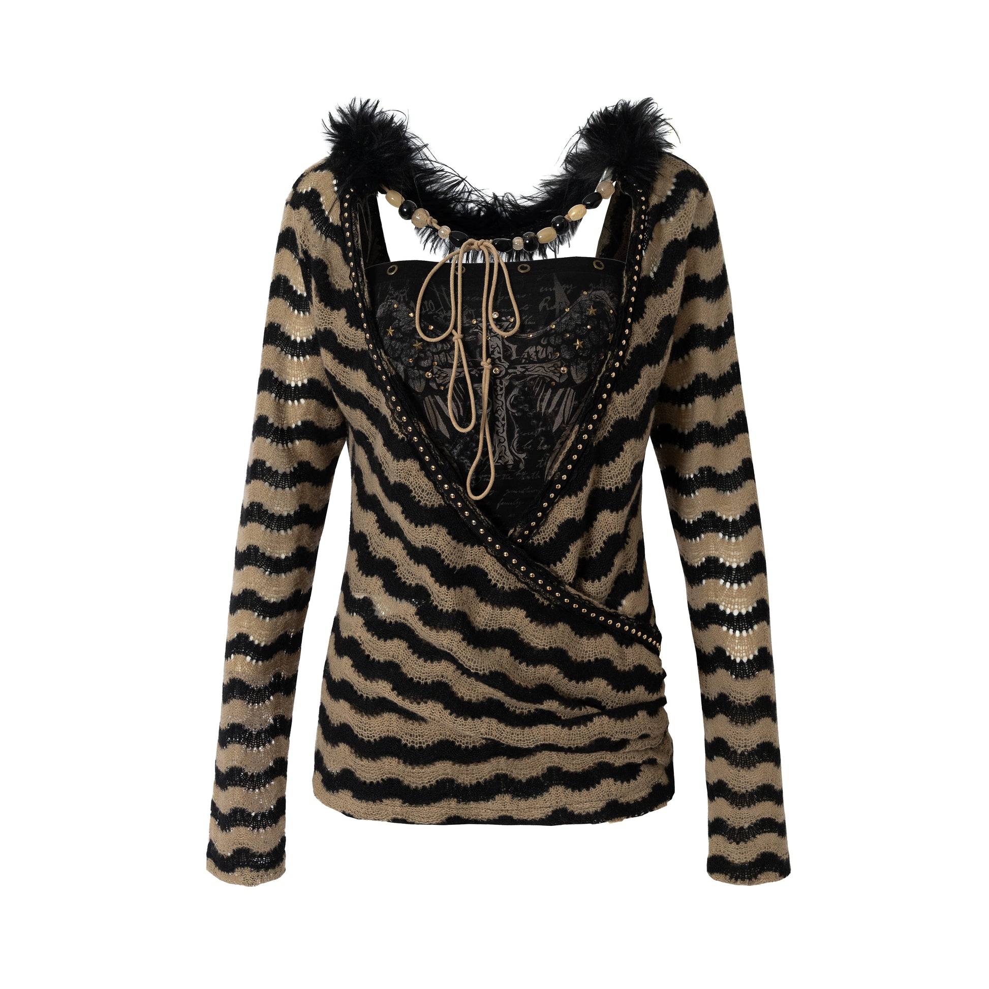 Bandeau Fake Two-Piece Striped Knit Top Set