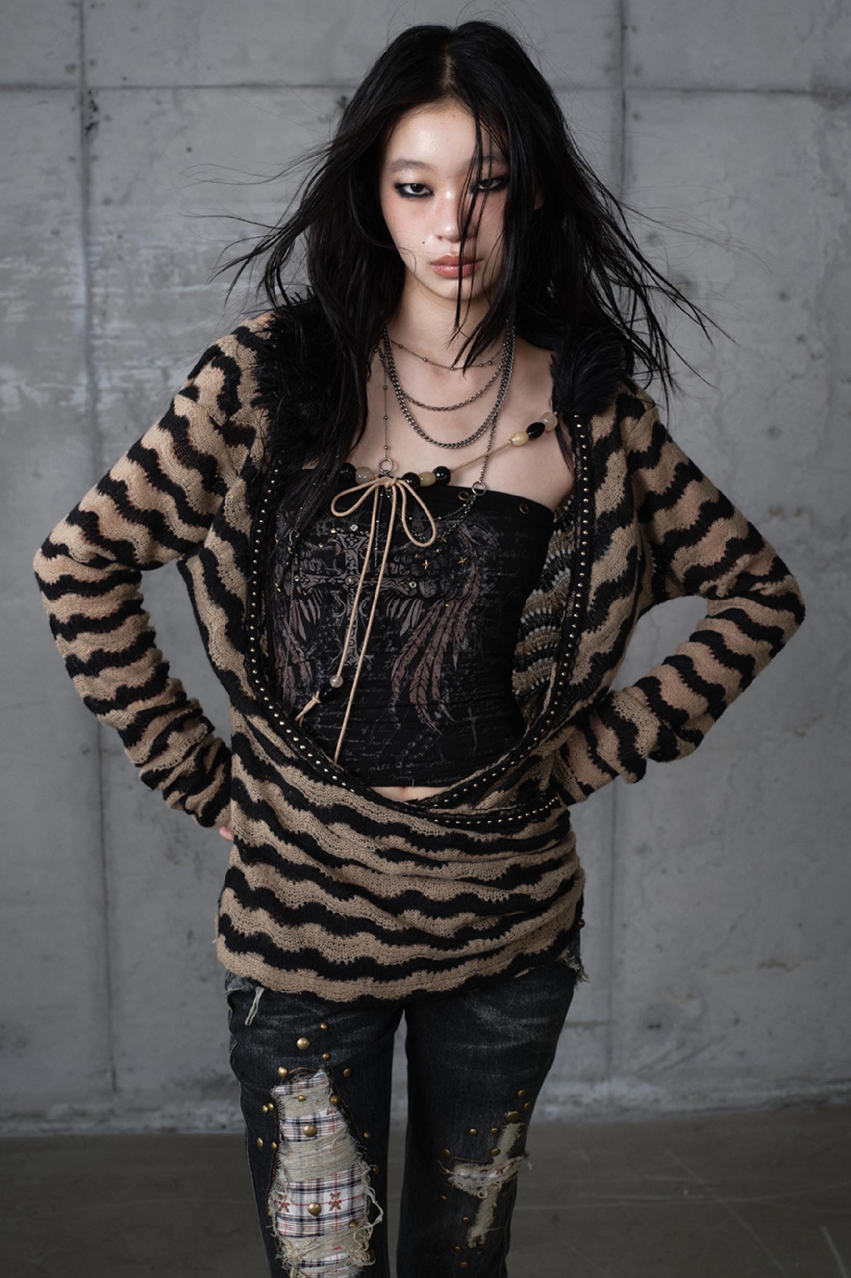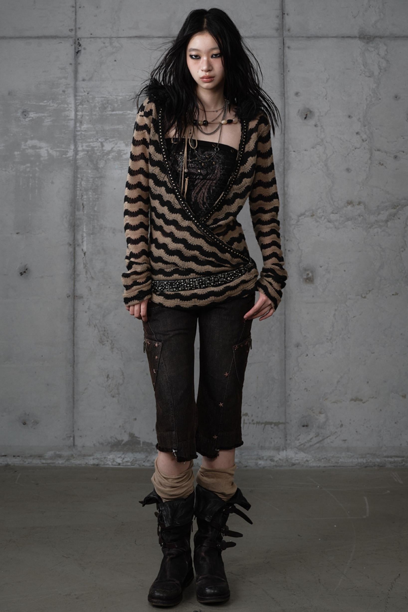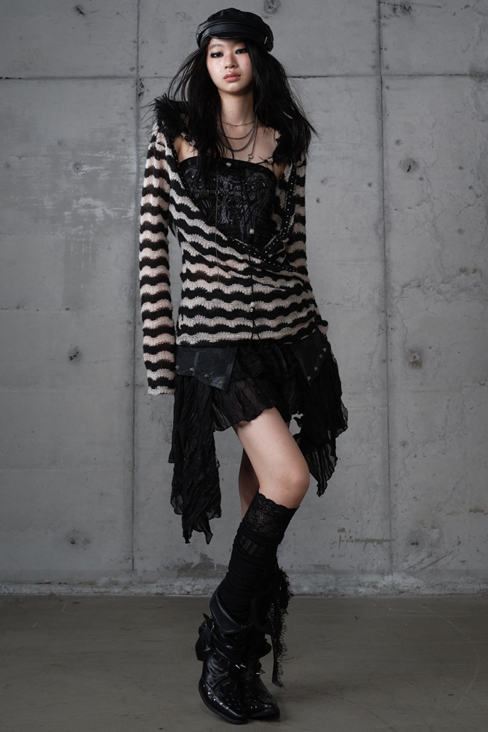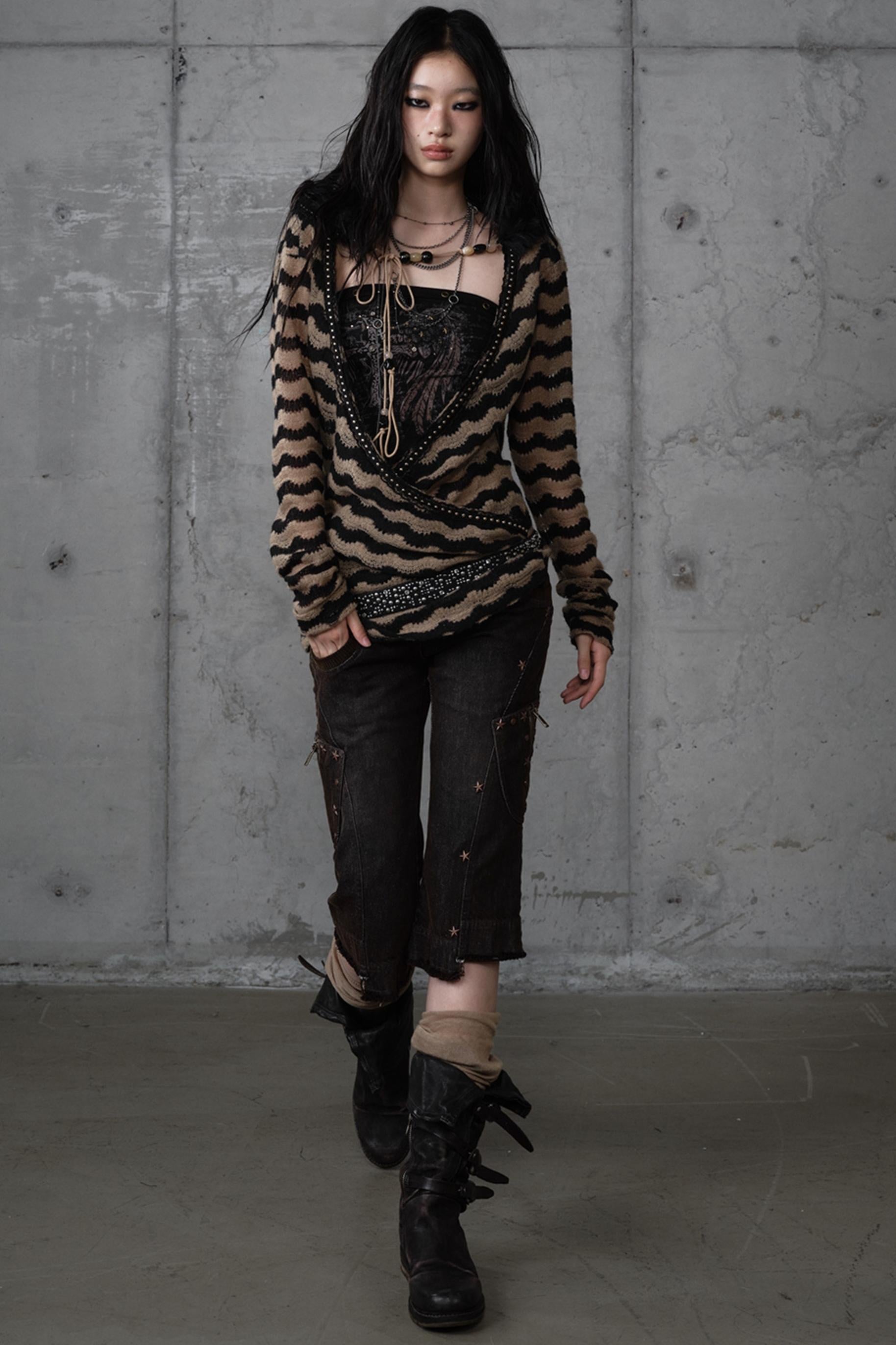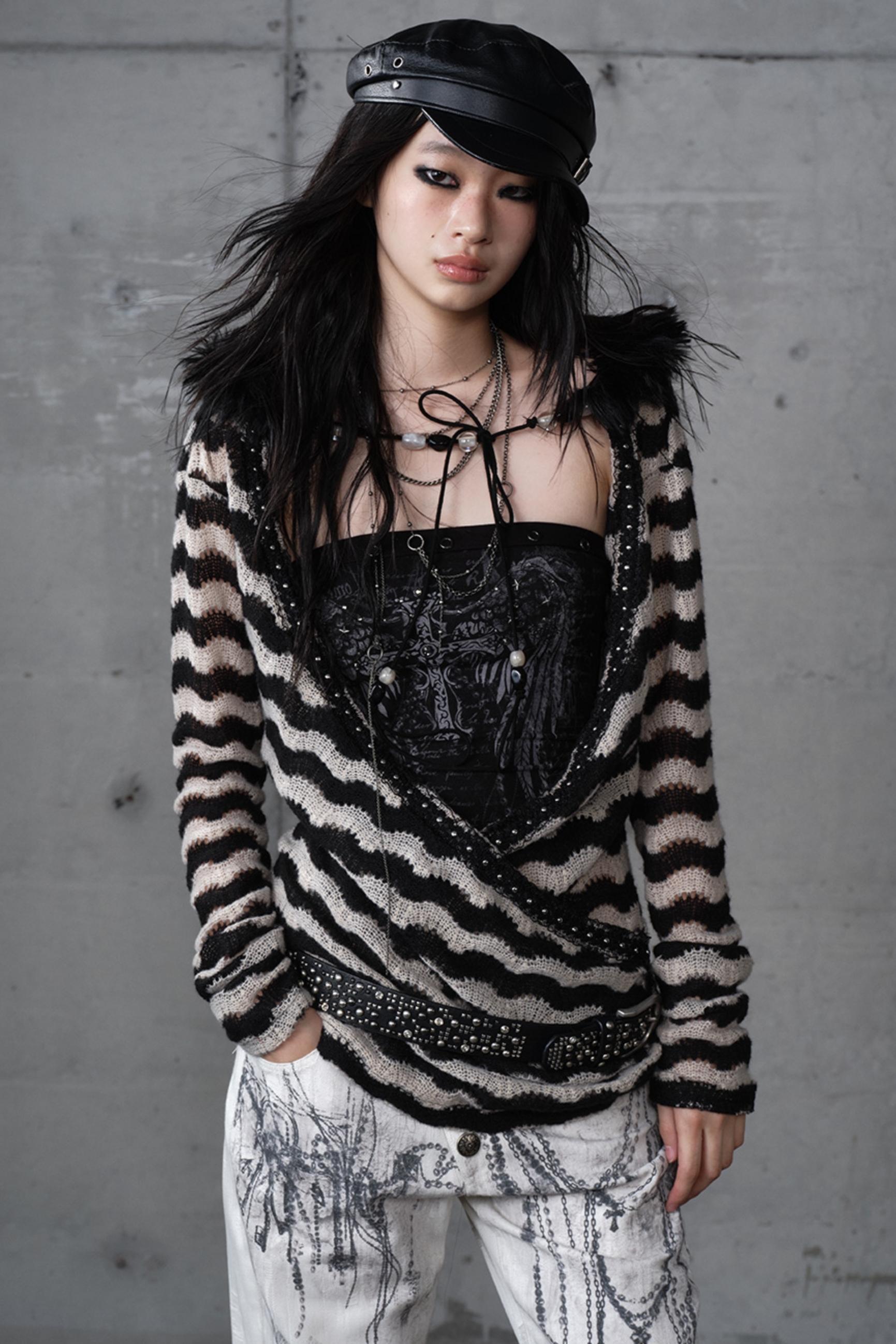 Bandeau Fake Two-Piece Striped Knit Top Set
