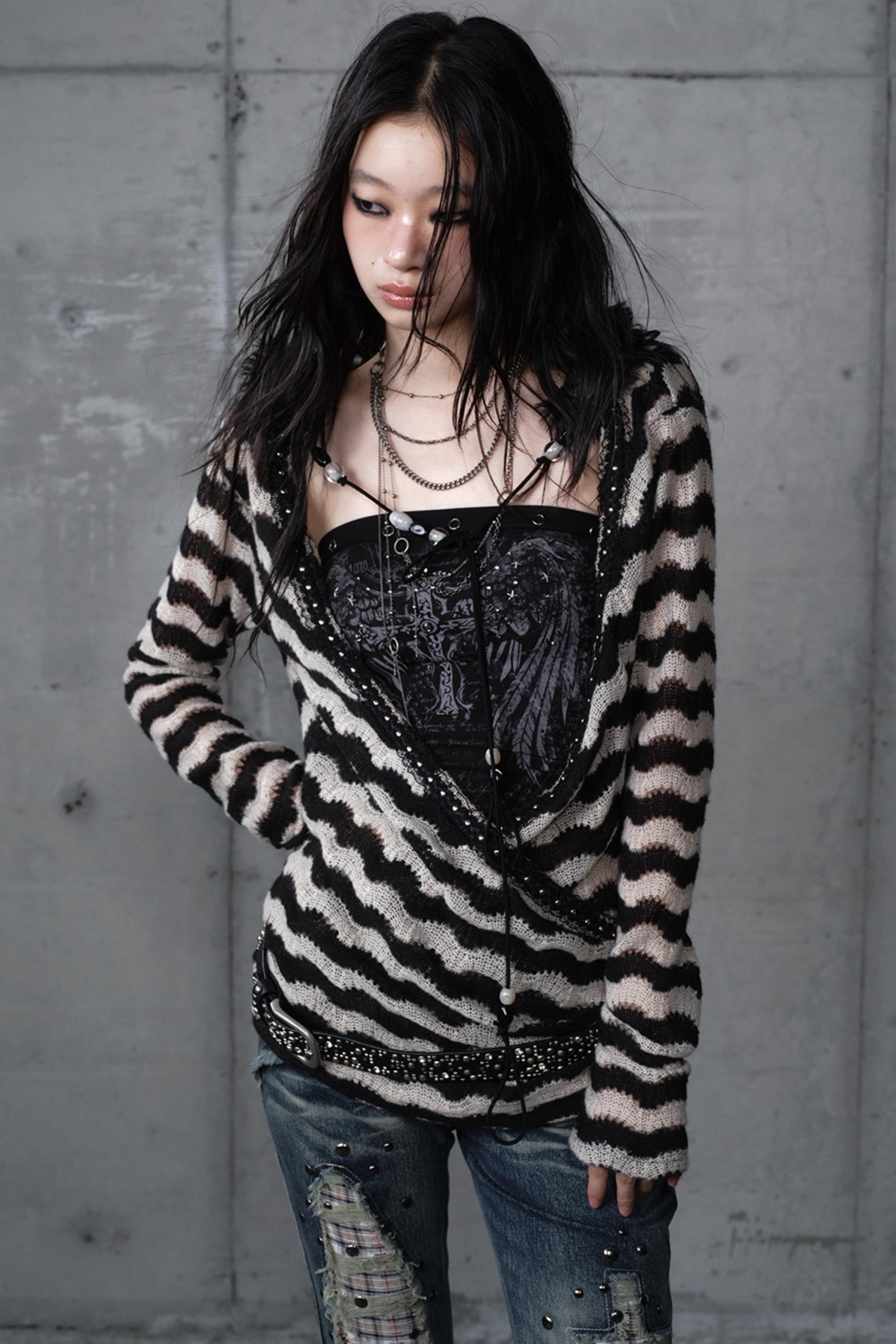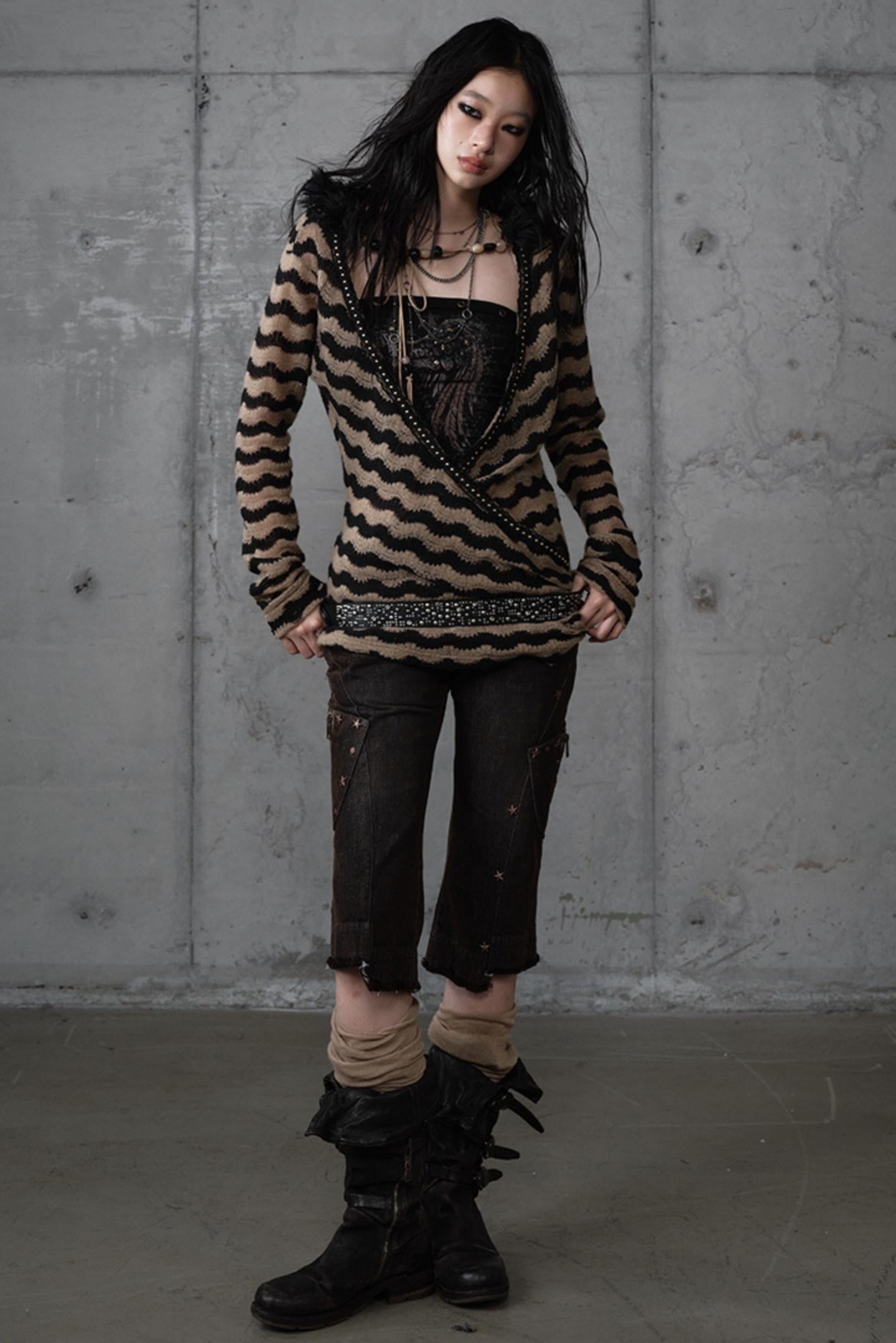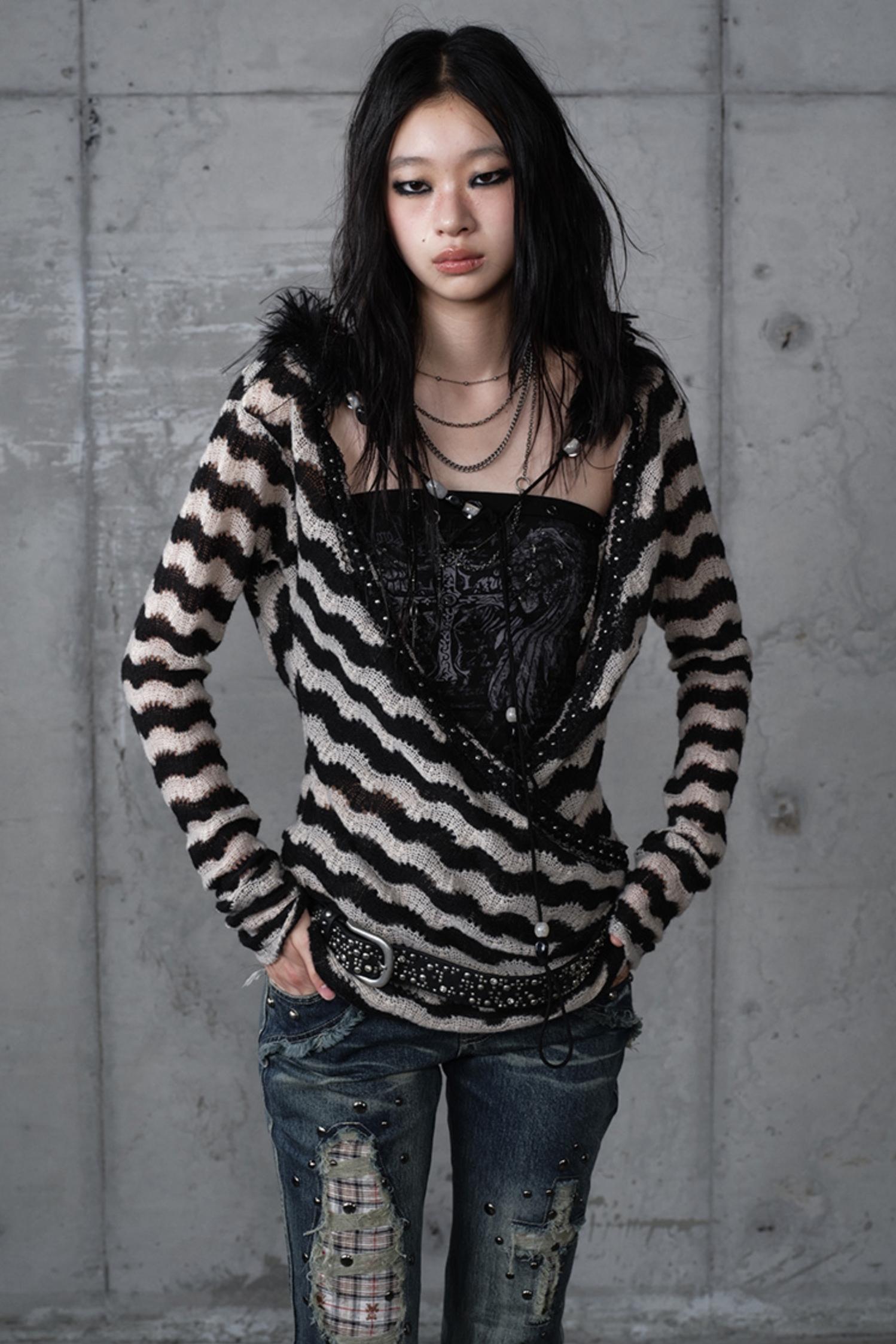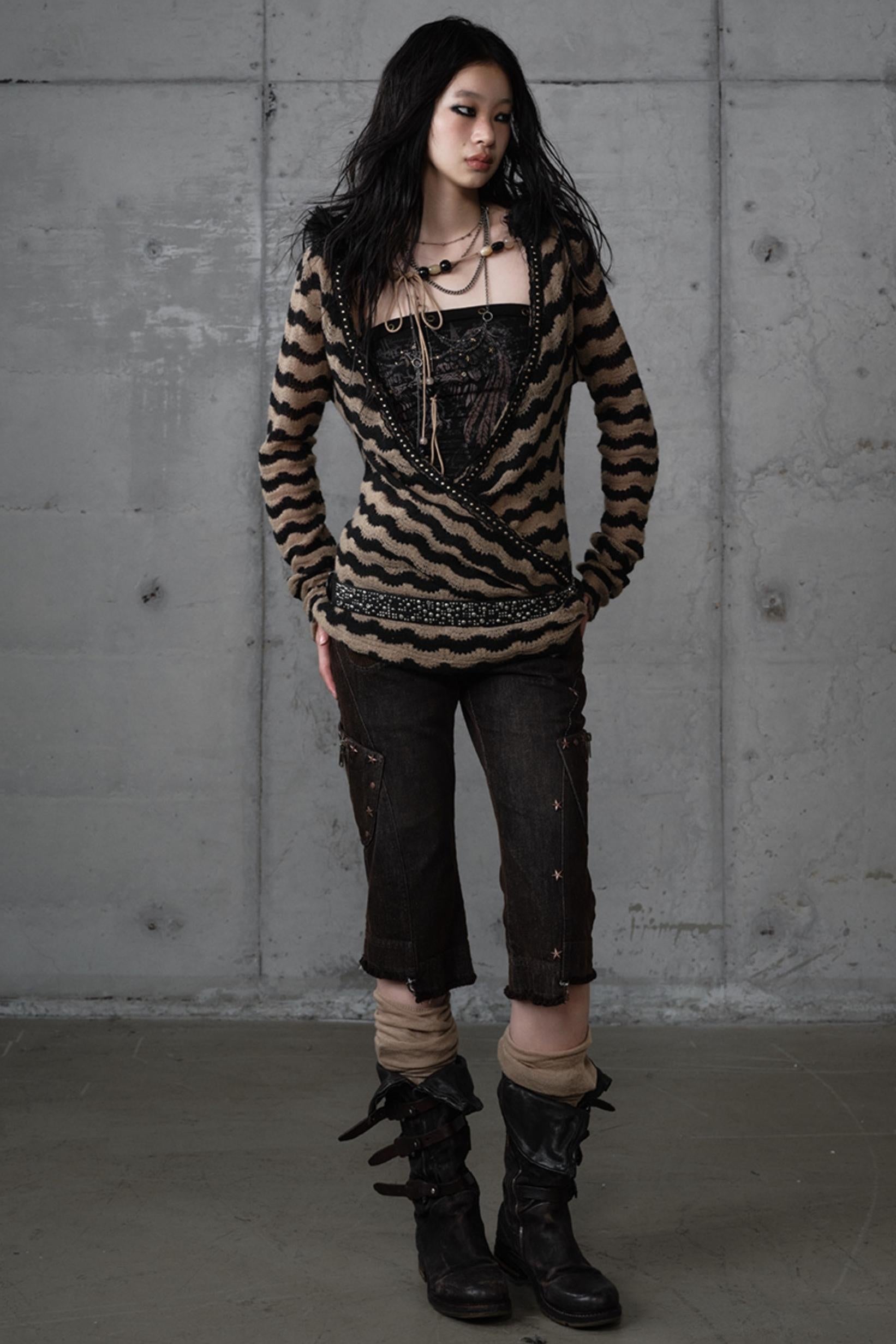 Bandeau Fake Two-Piece Striped Knit Top Set