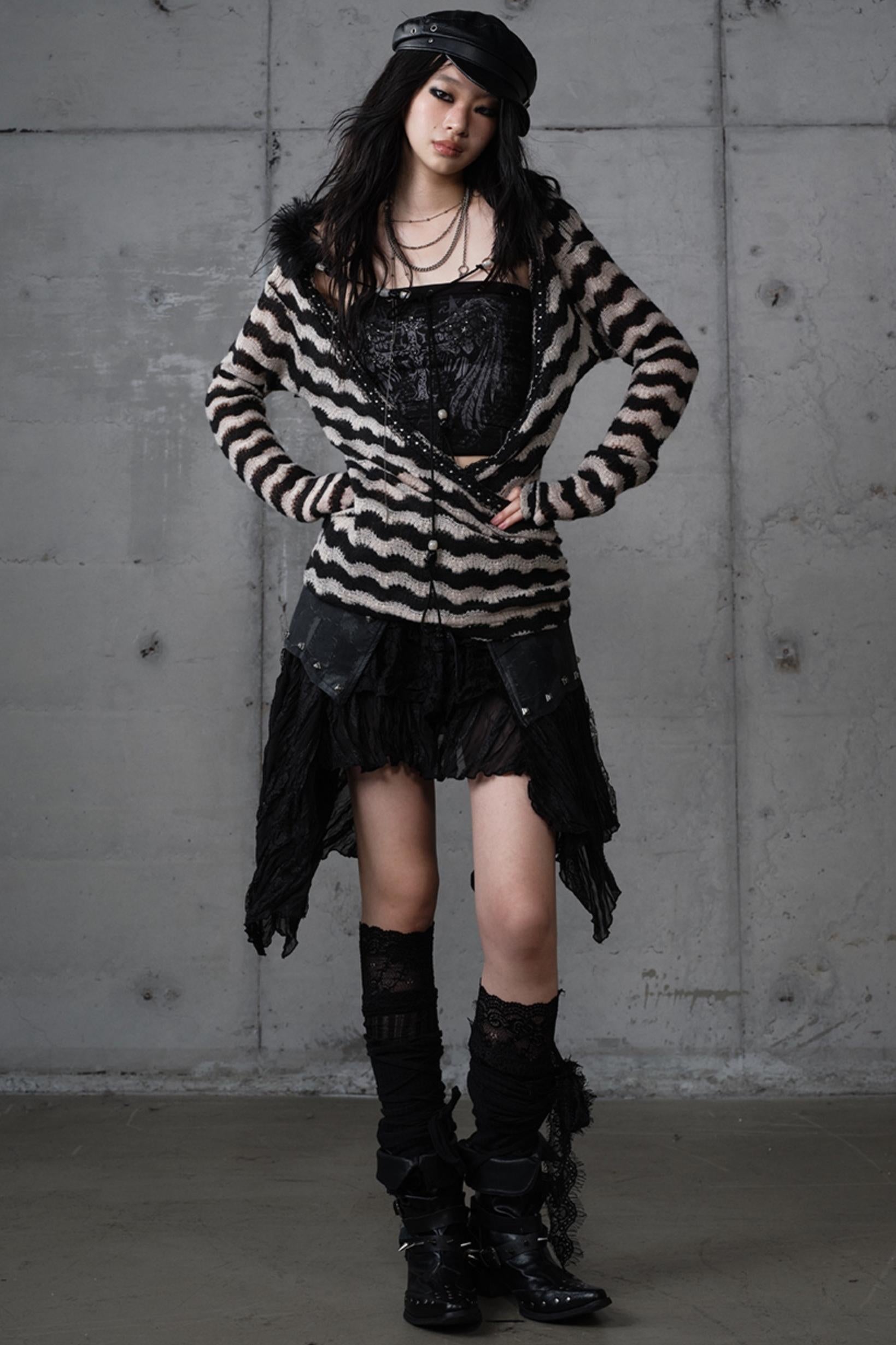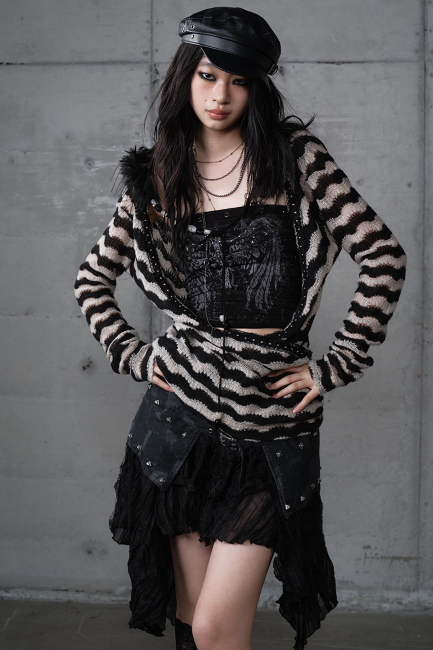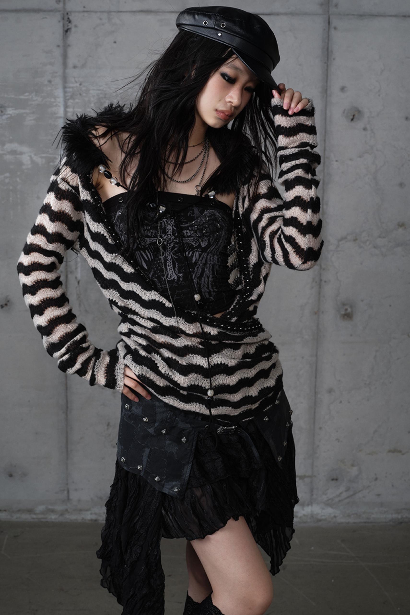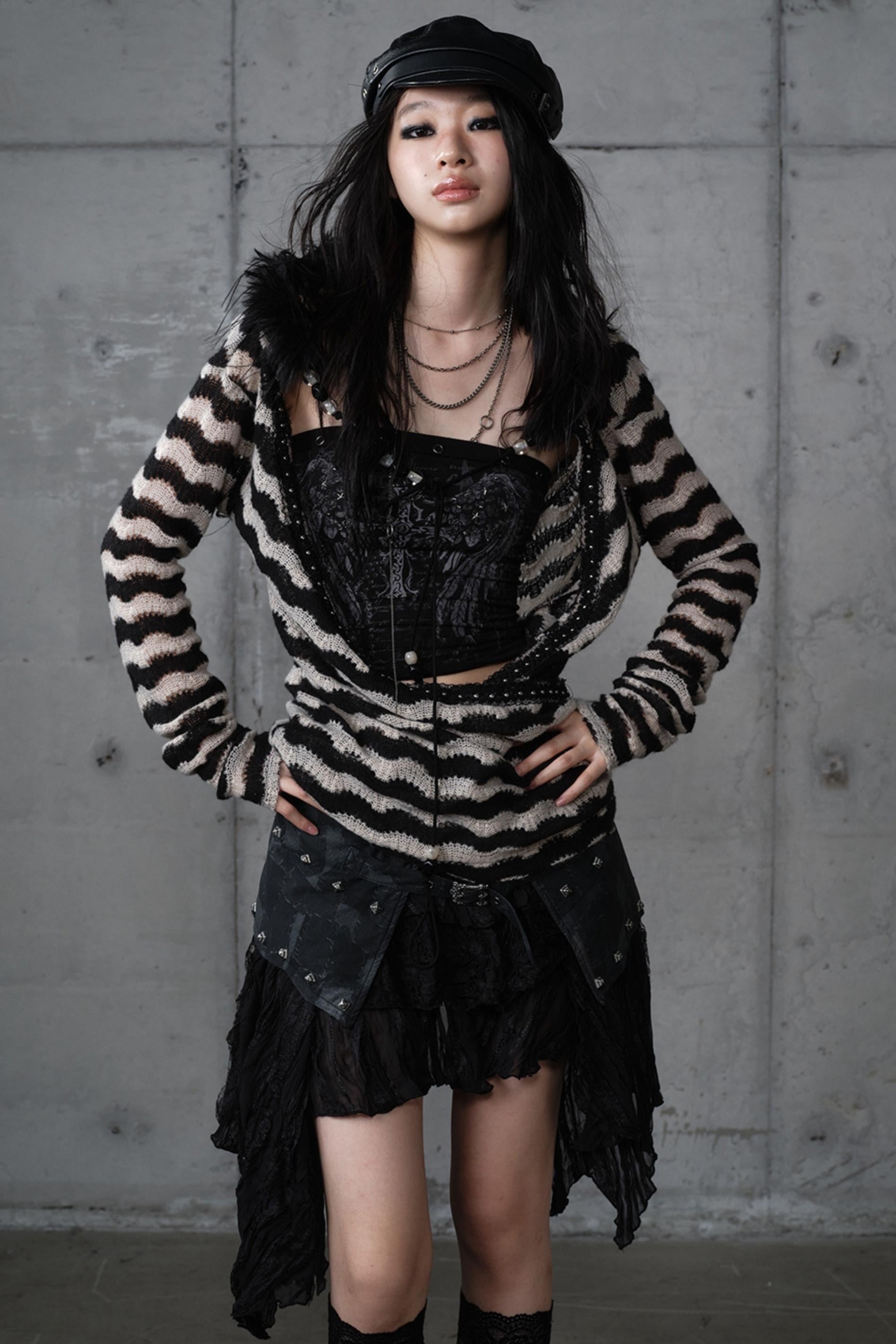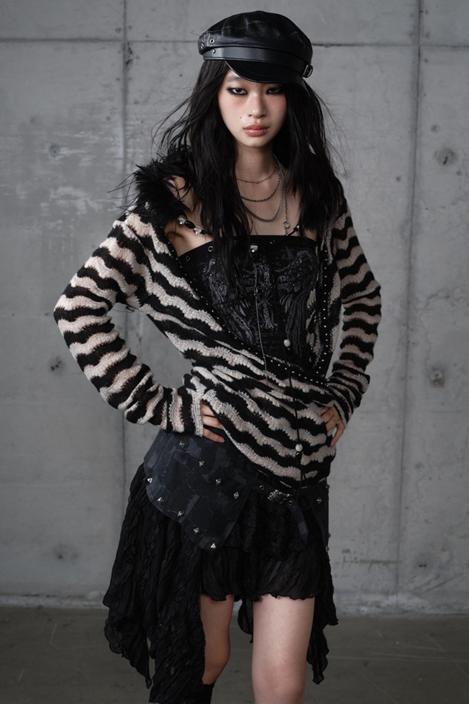Bandeau Fake Two-Piece Striped Knit Top Set