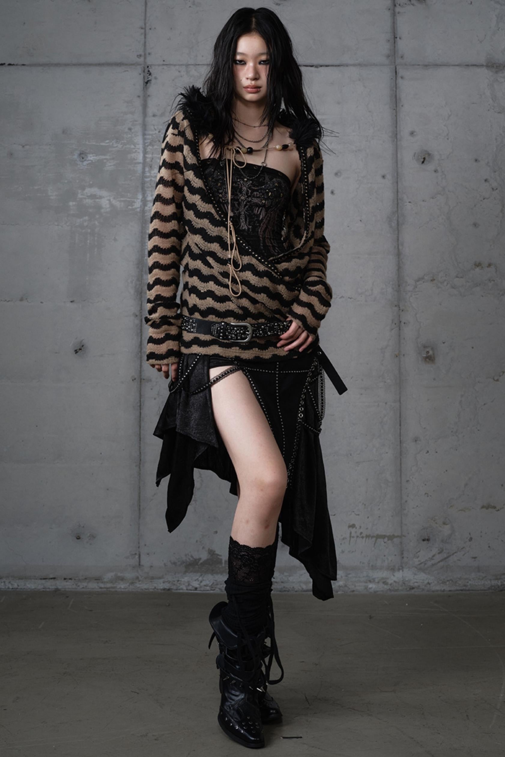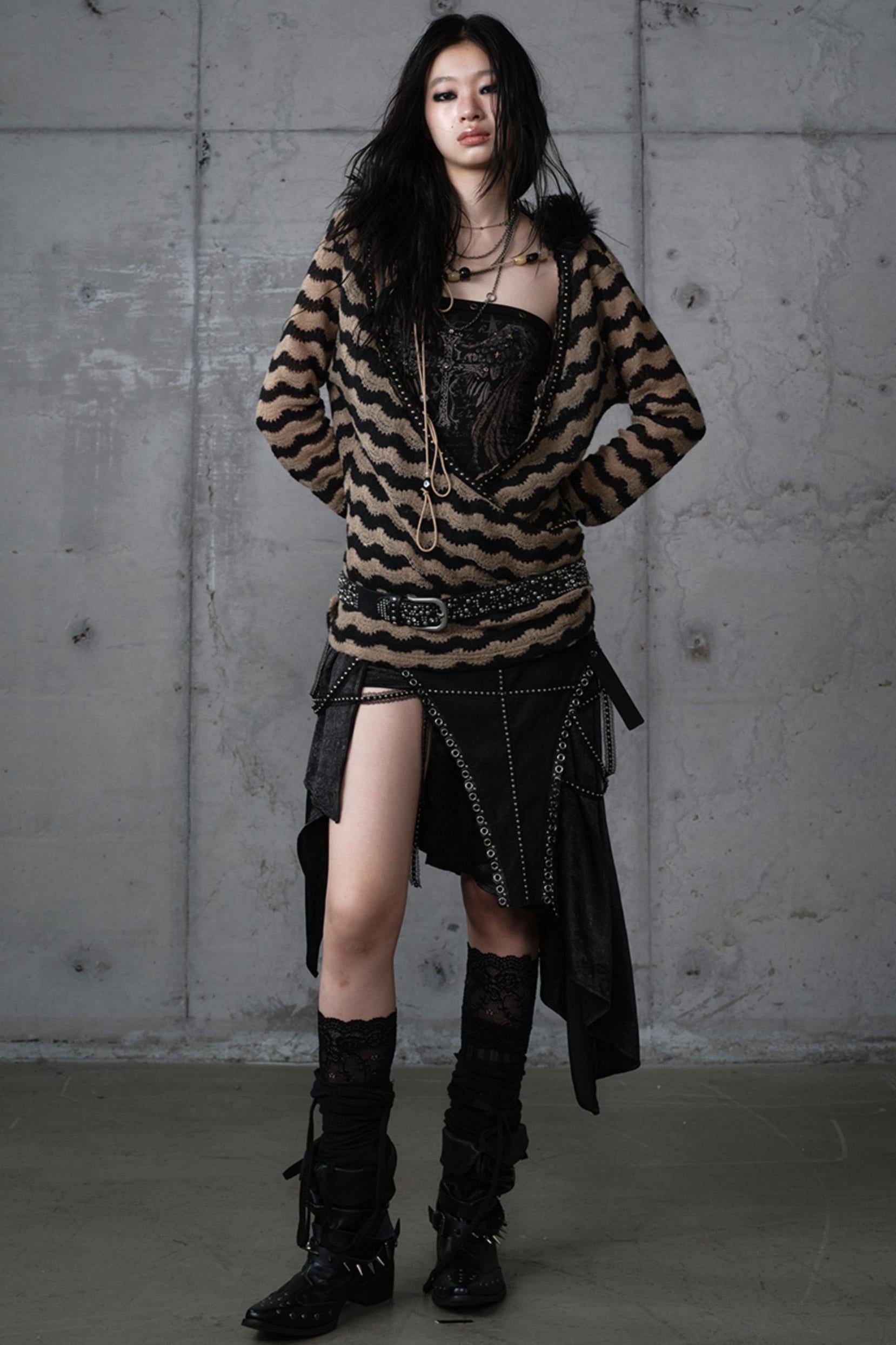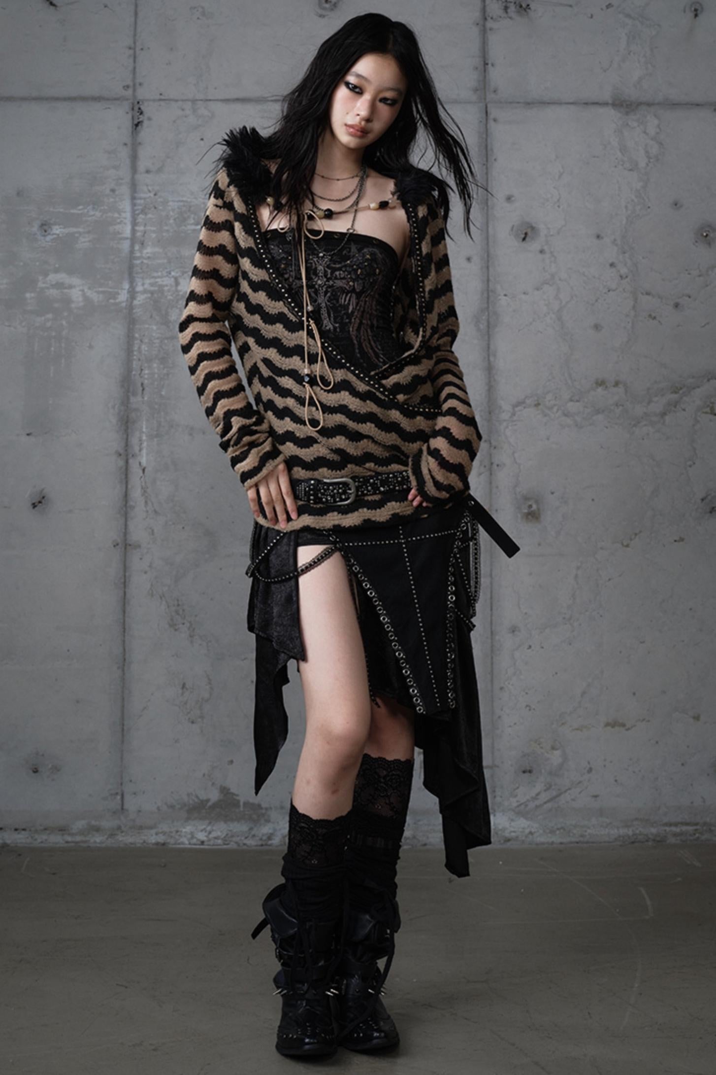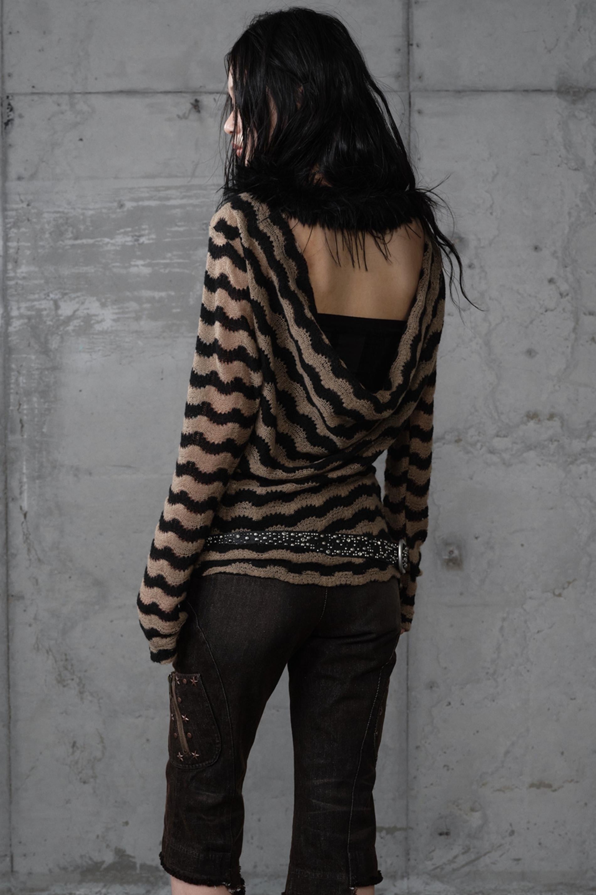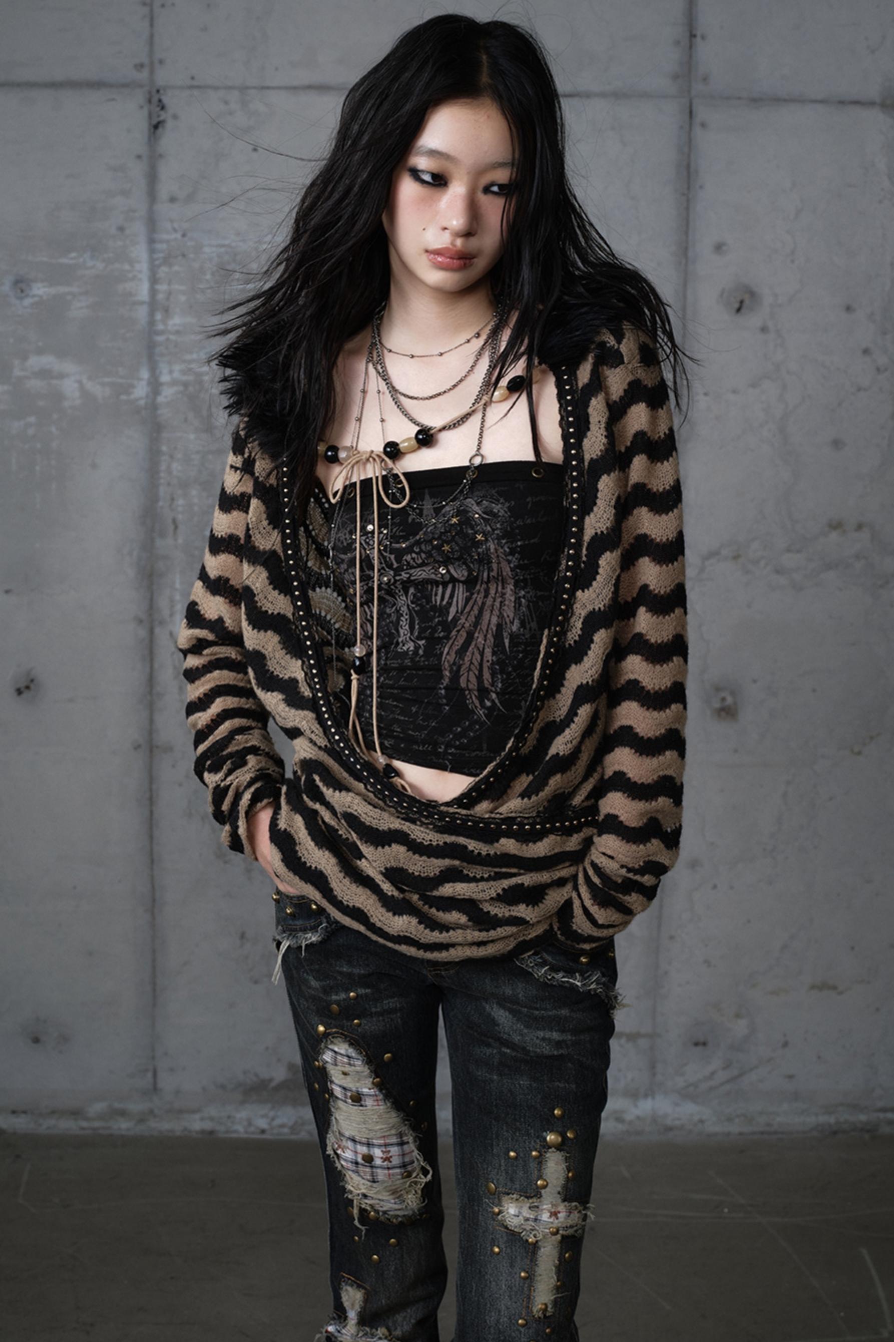 Bandeau Fake Two-Piece Striped Knit Top Set