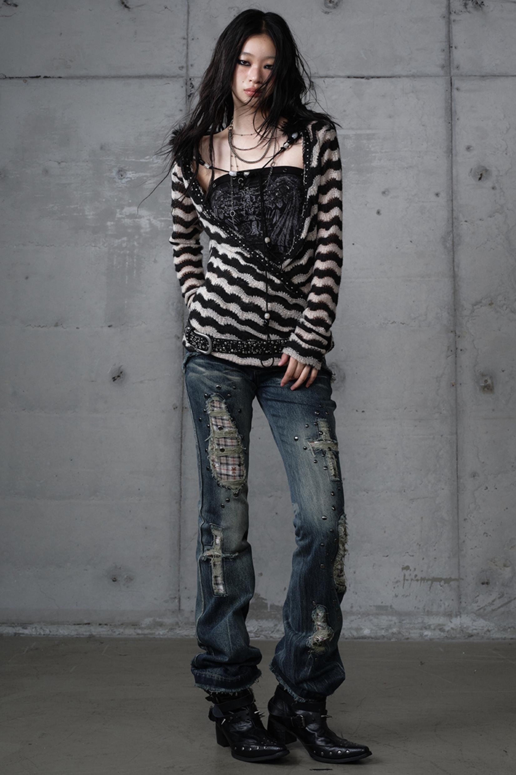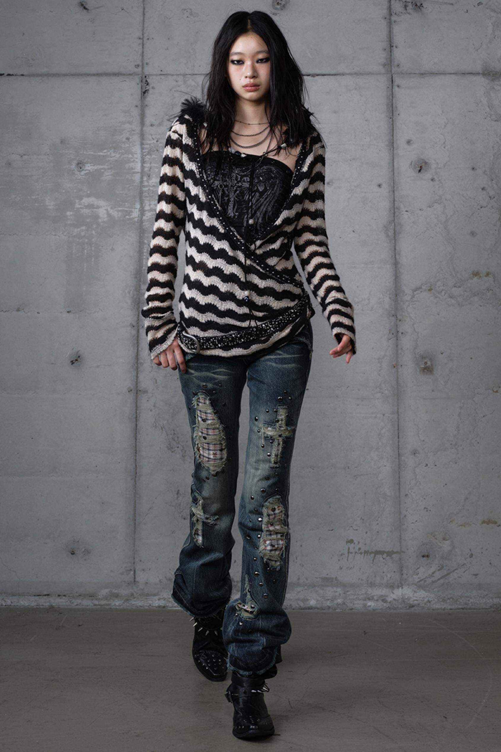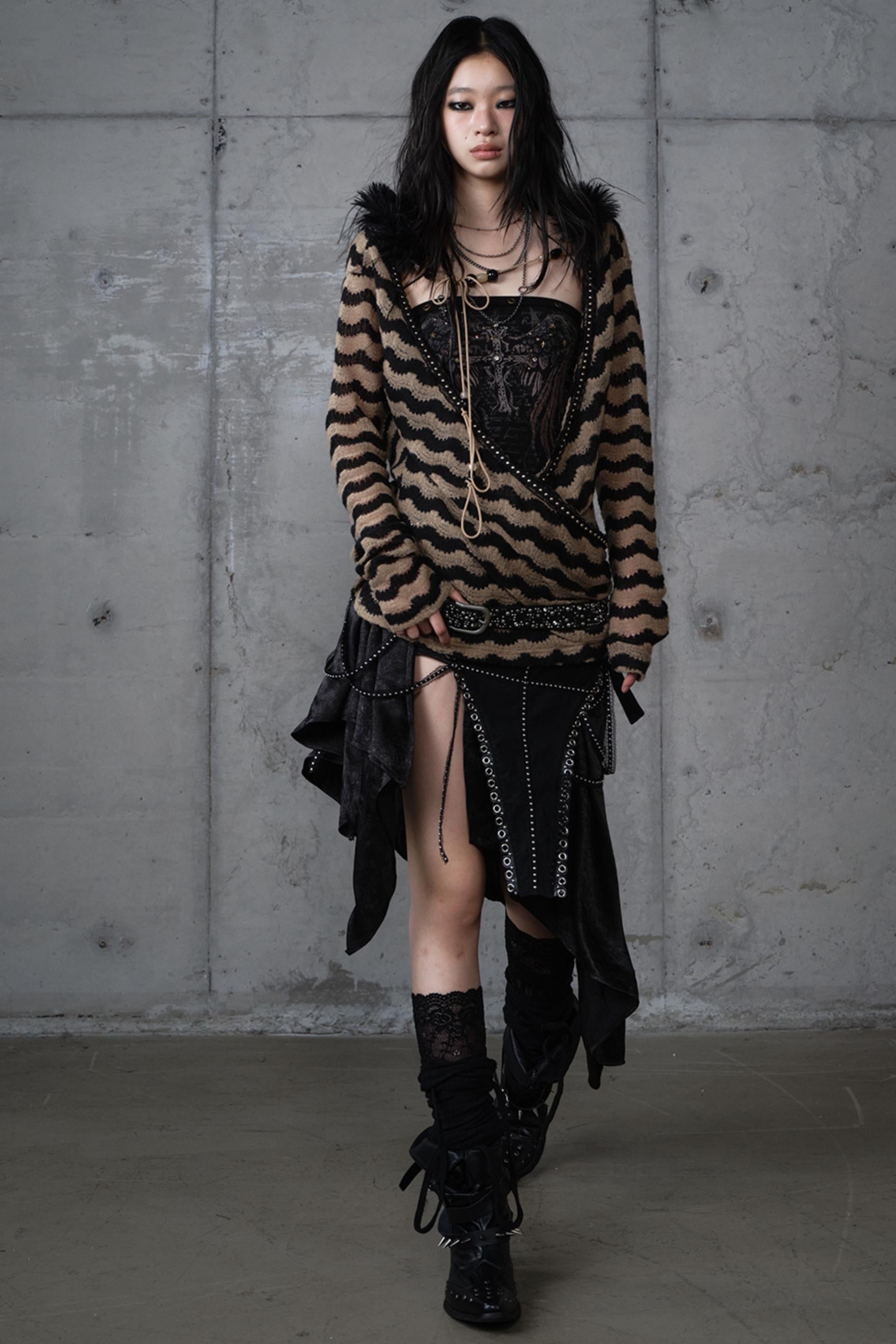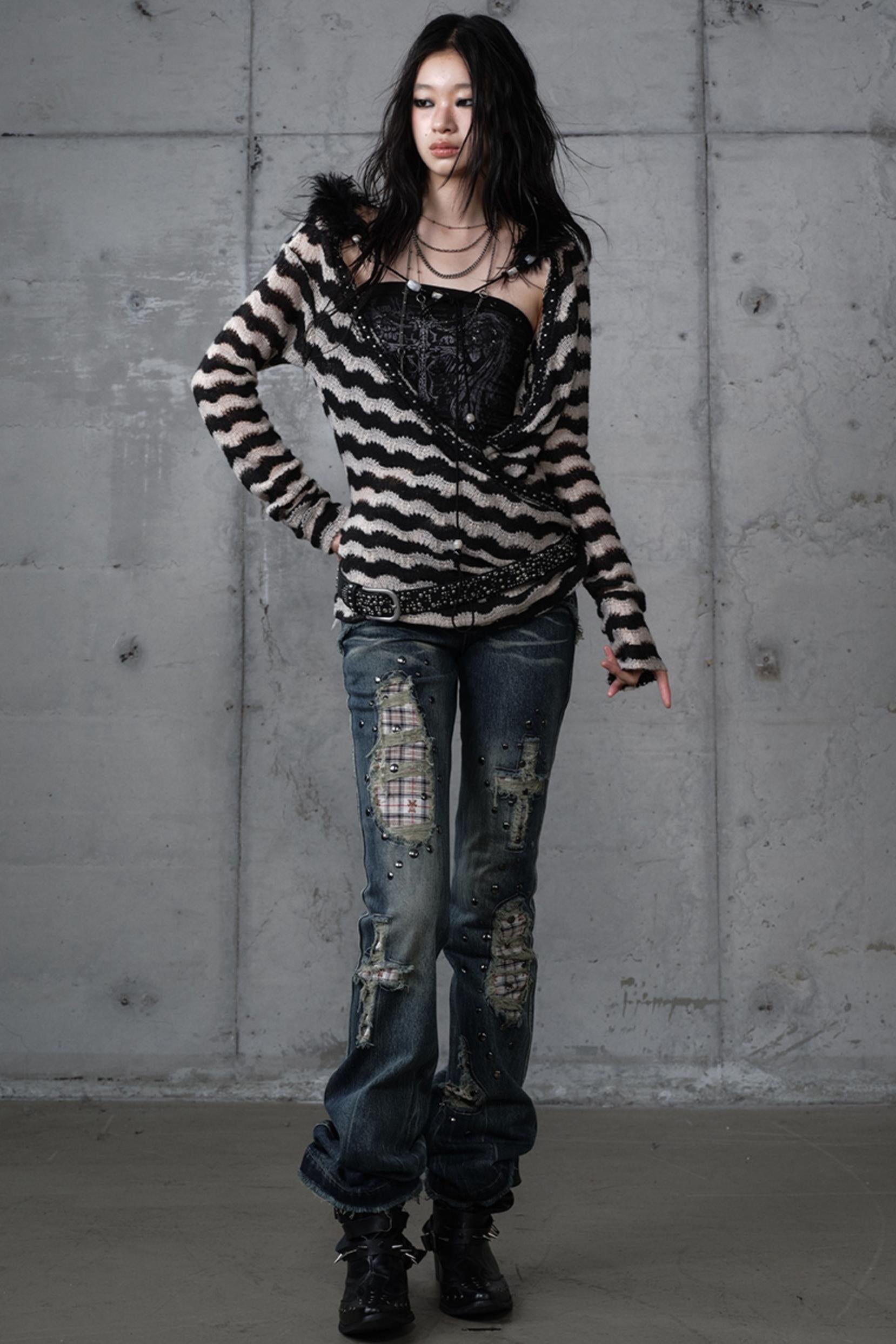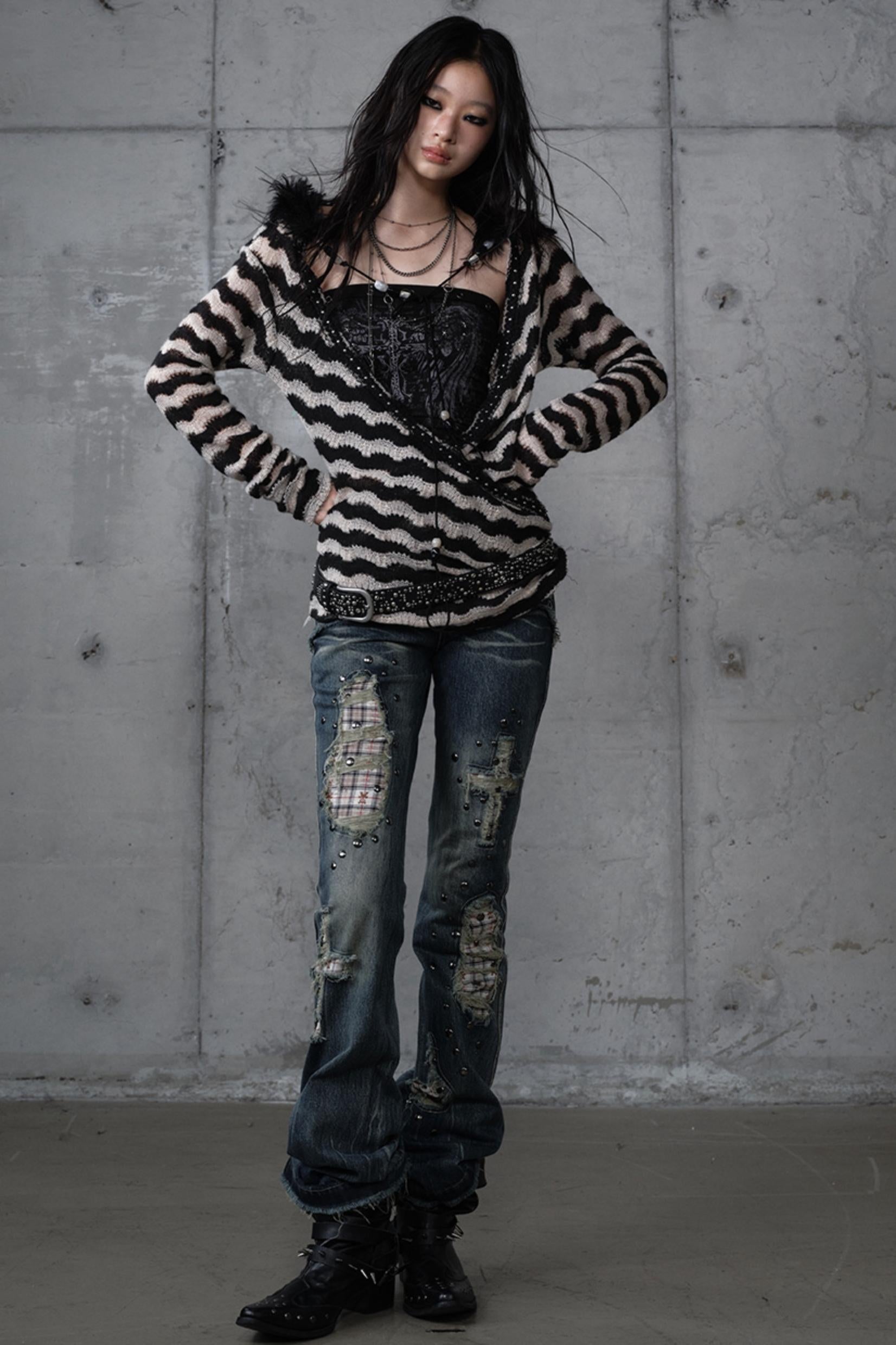 Bandeau Fake Two-Piece Striped Knit Top Set