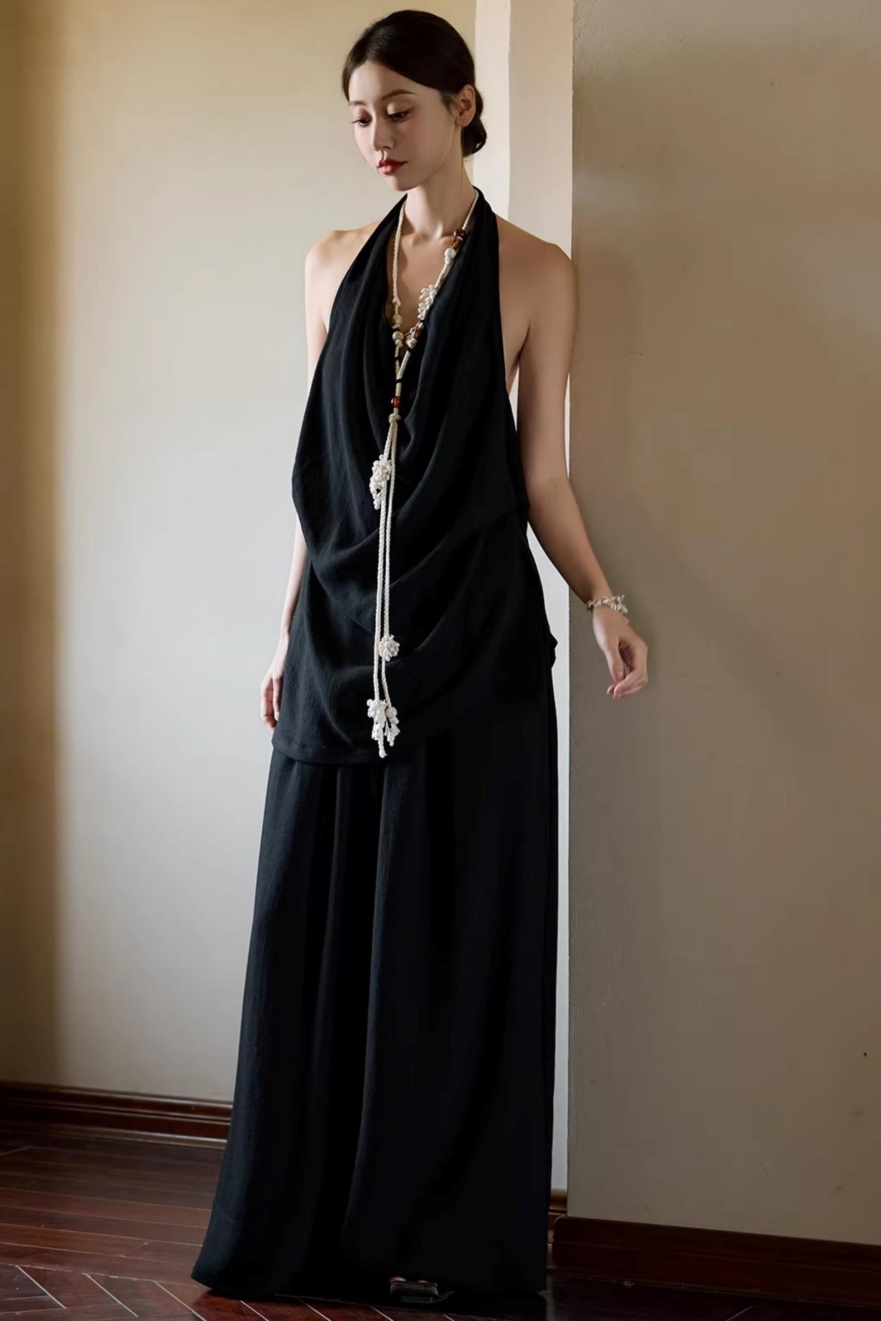 Black Beaded Halter Vest