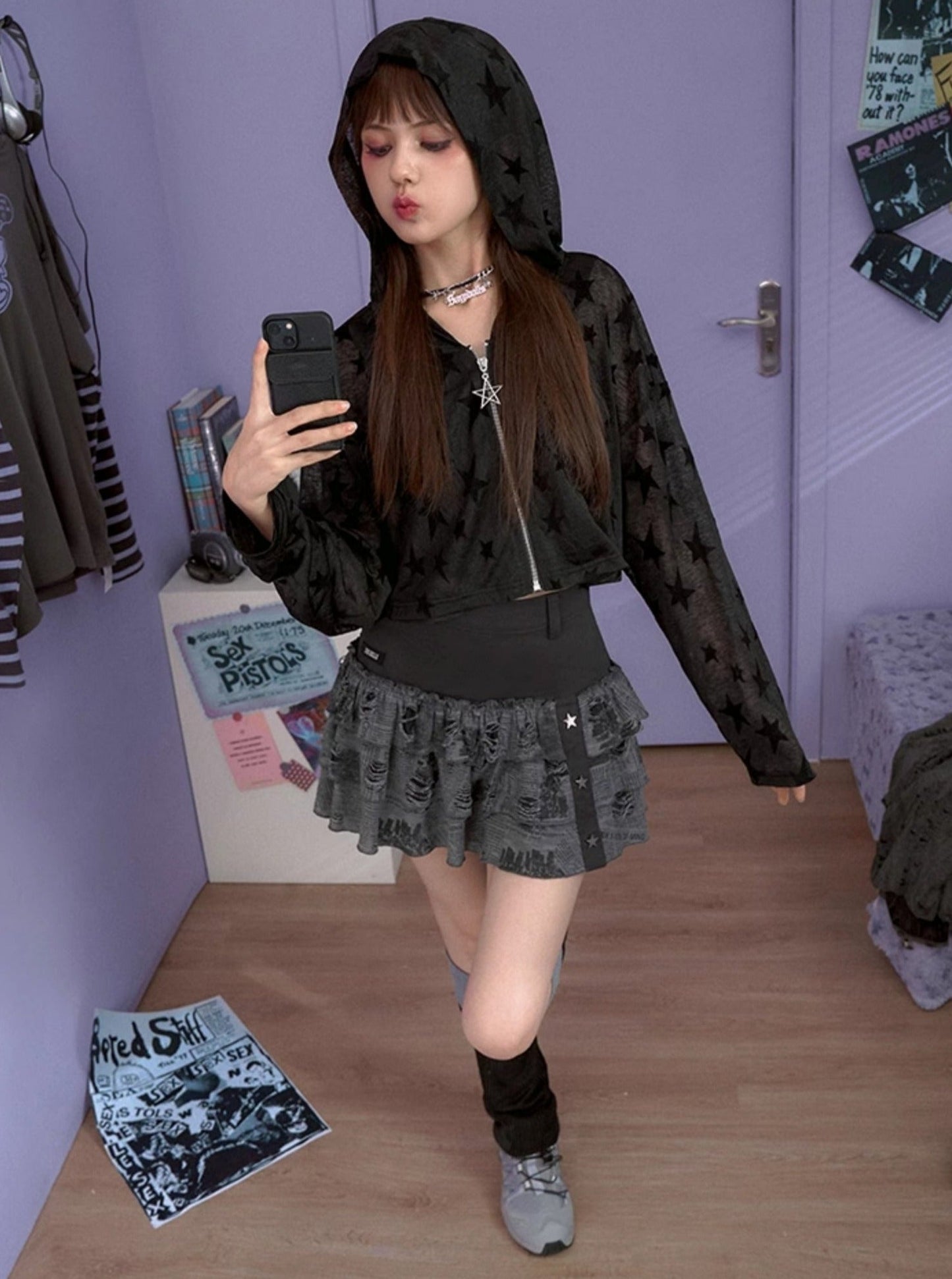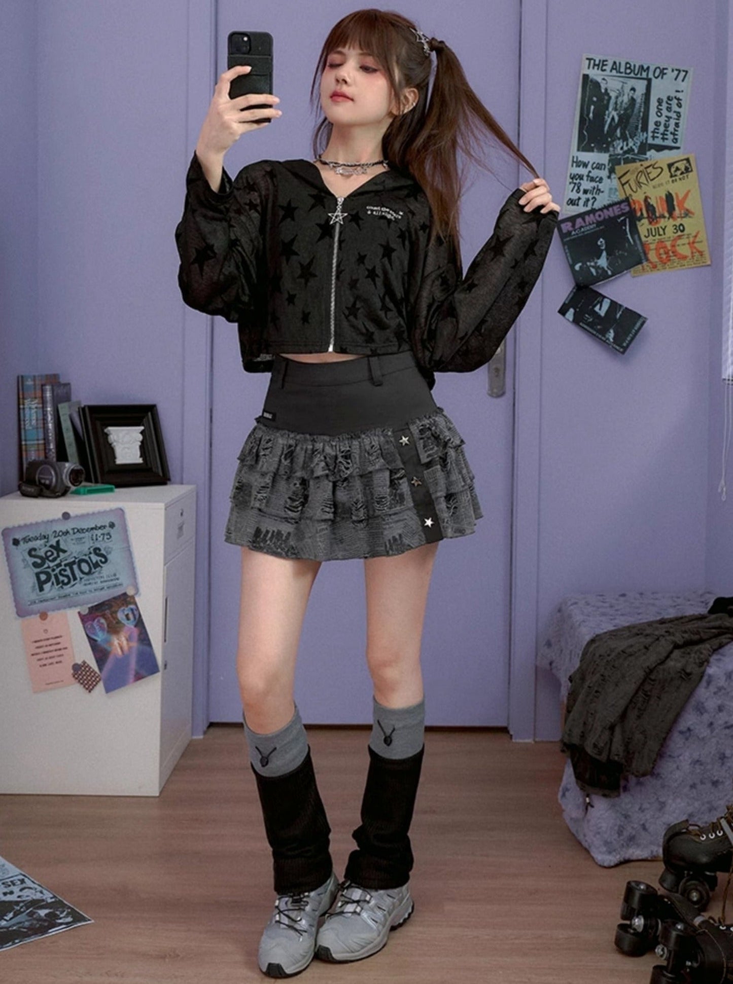 Black Ripped Newspaper Print Millennial Skirt
