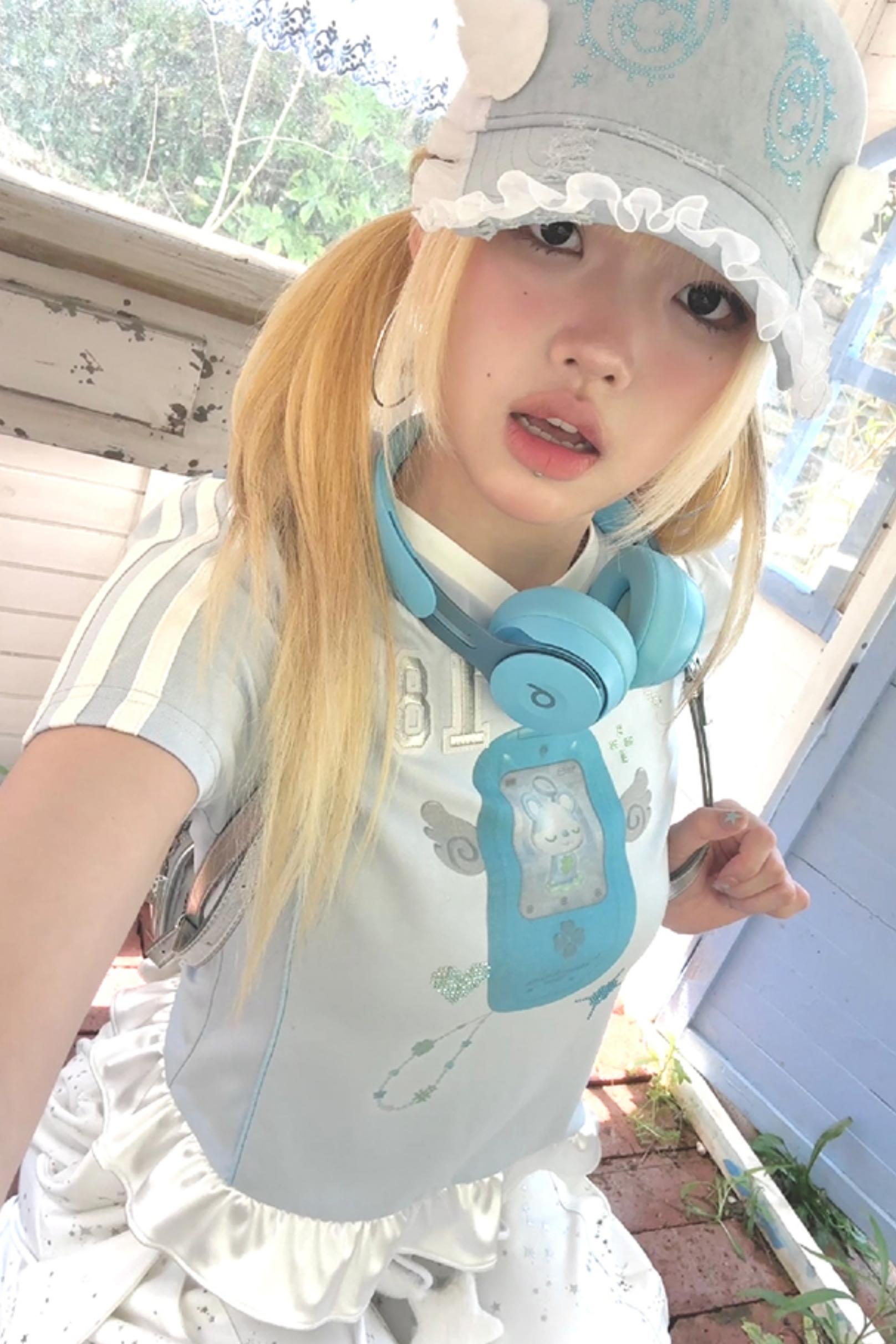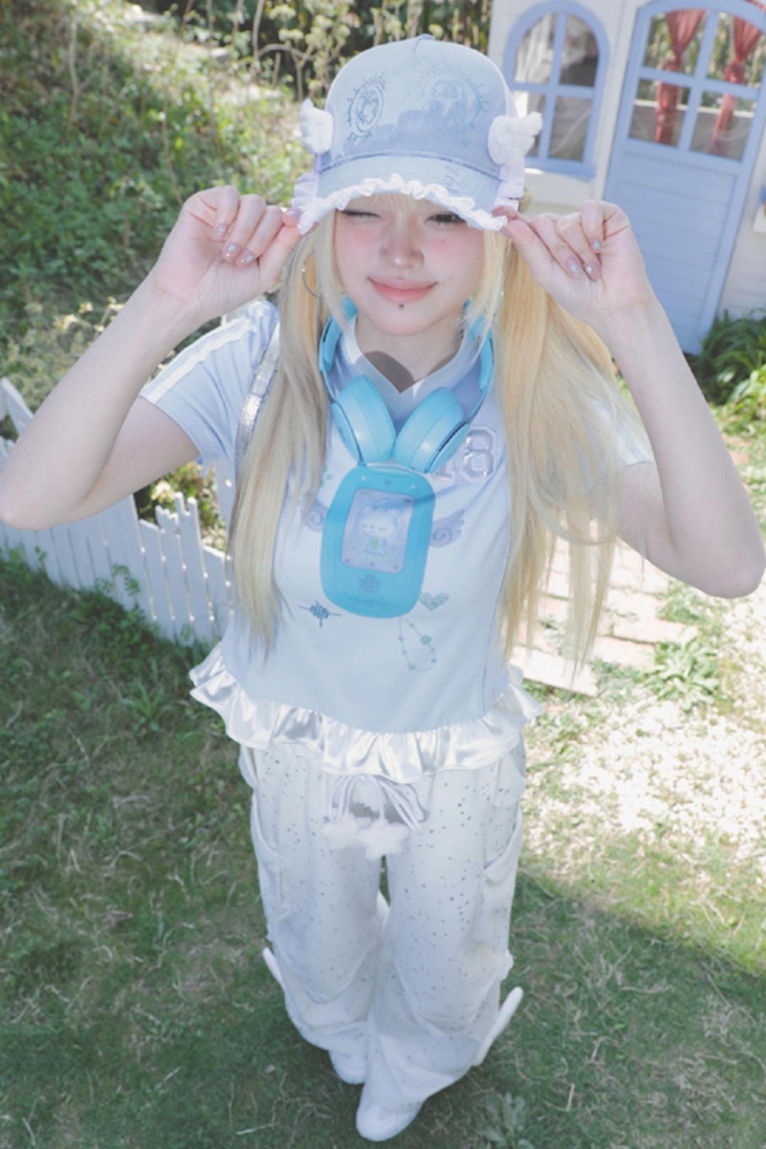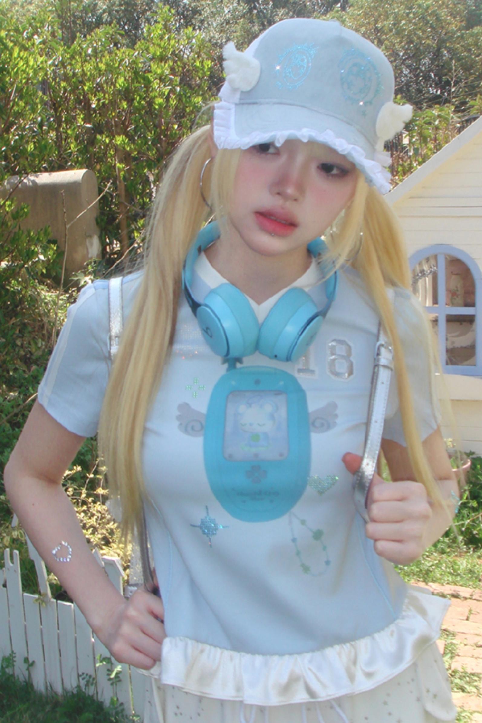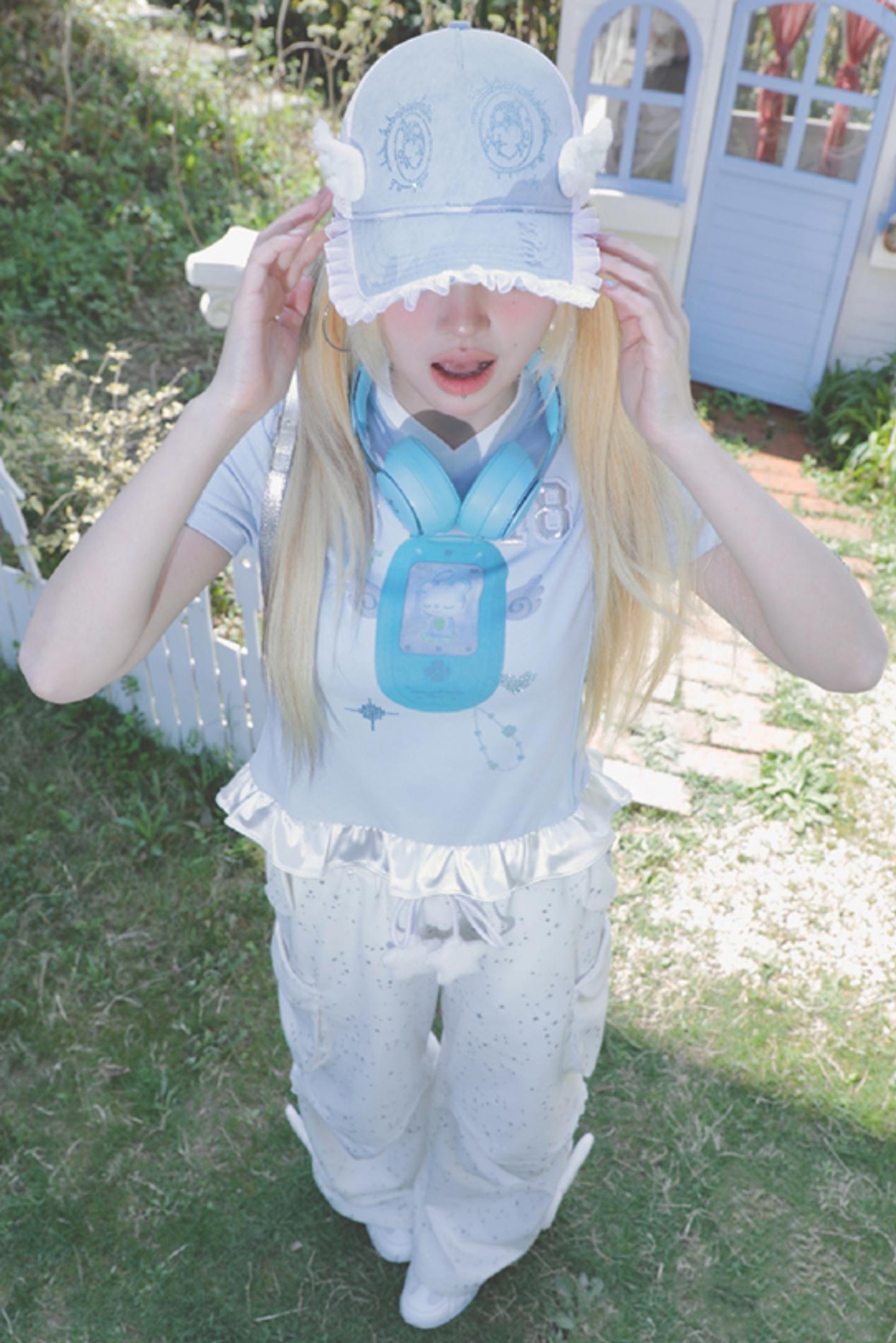 Blue Ruffle V-Neck Tee