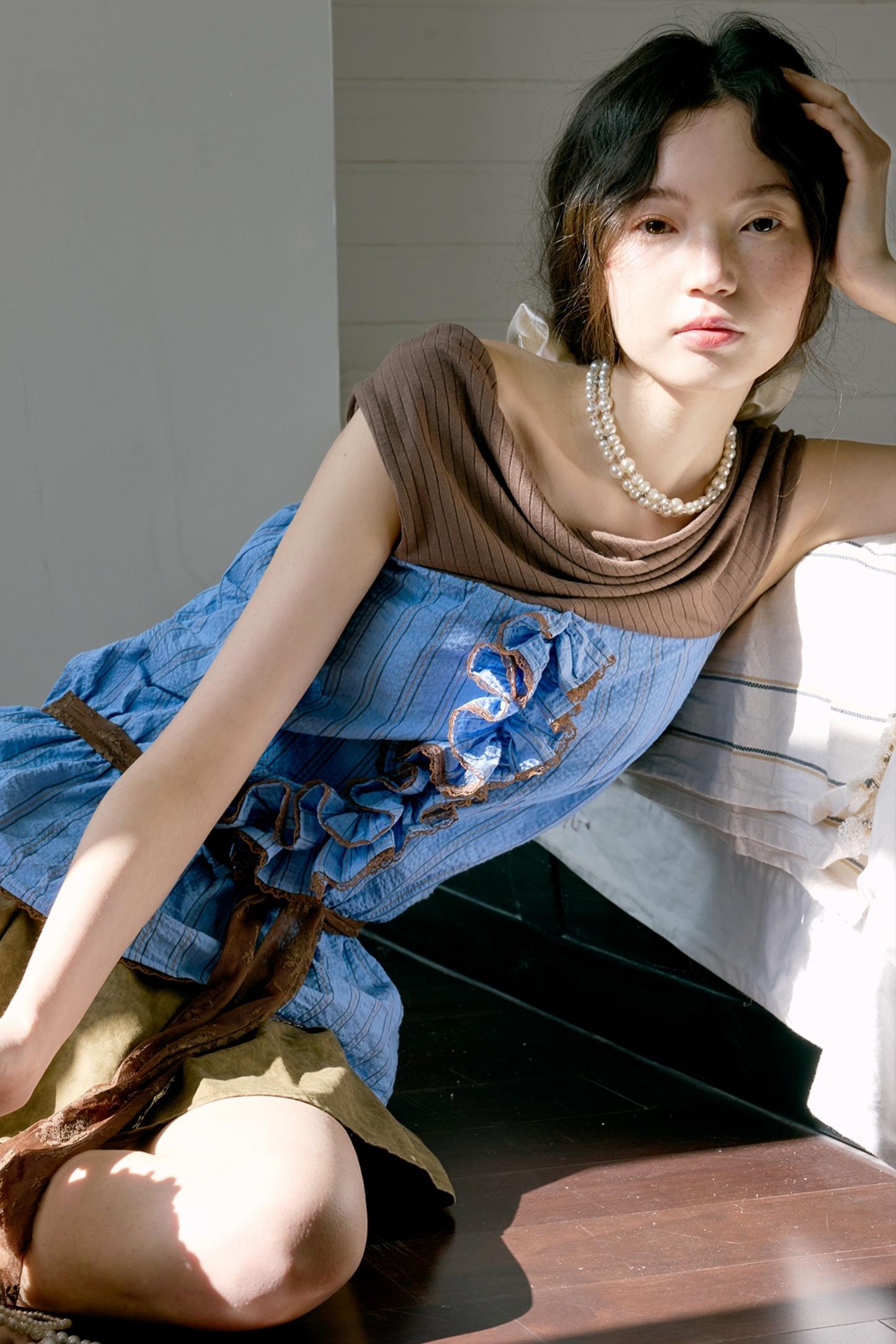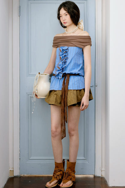 Blue Striped Knit Set With Puffy Skirt Set-Up