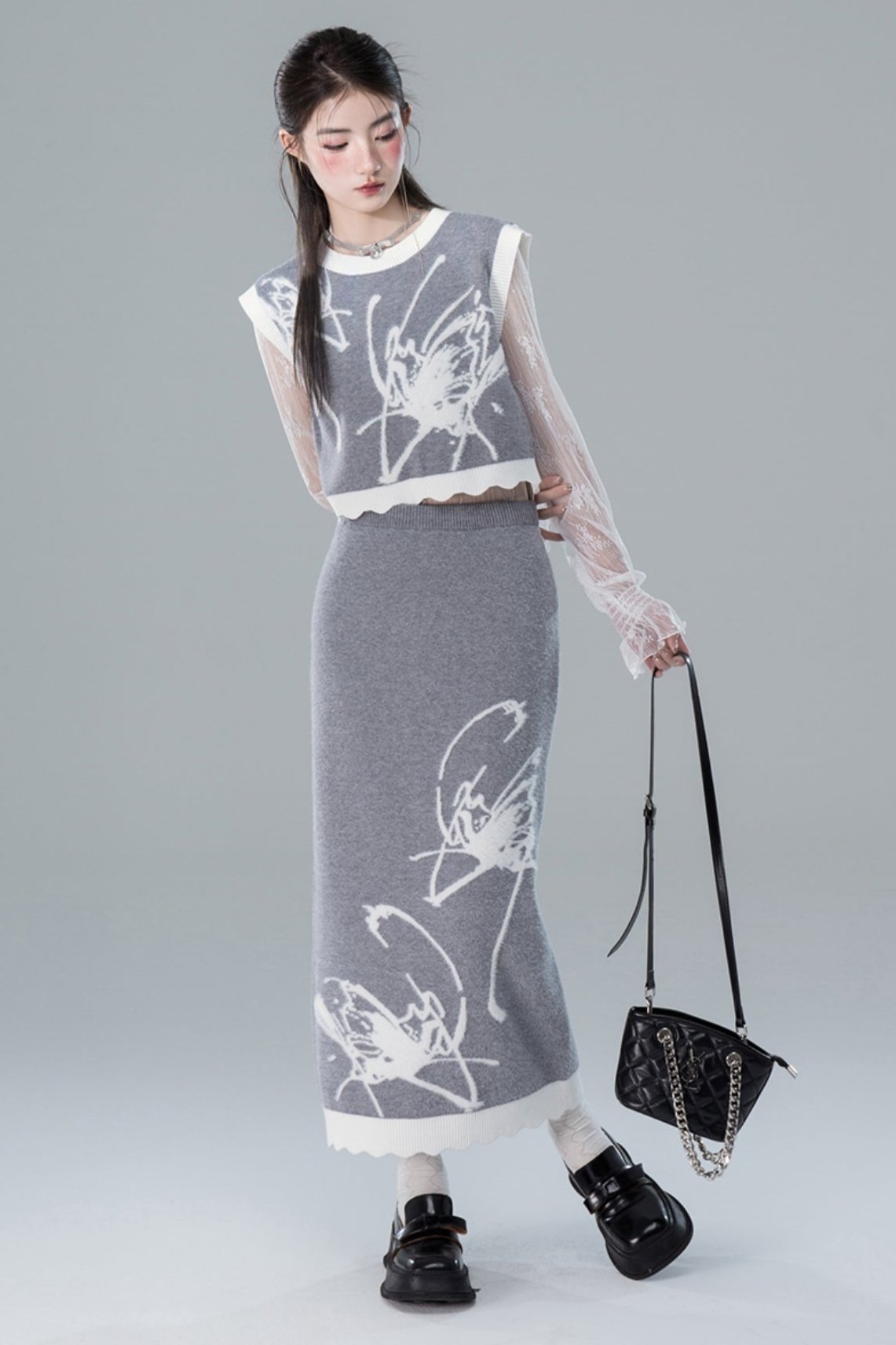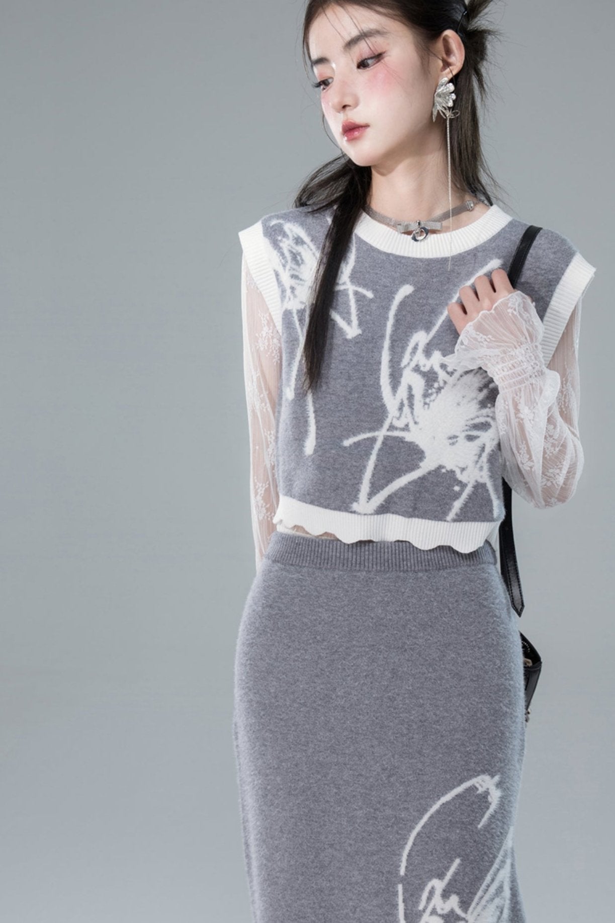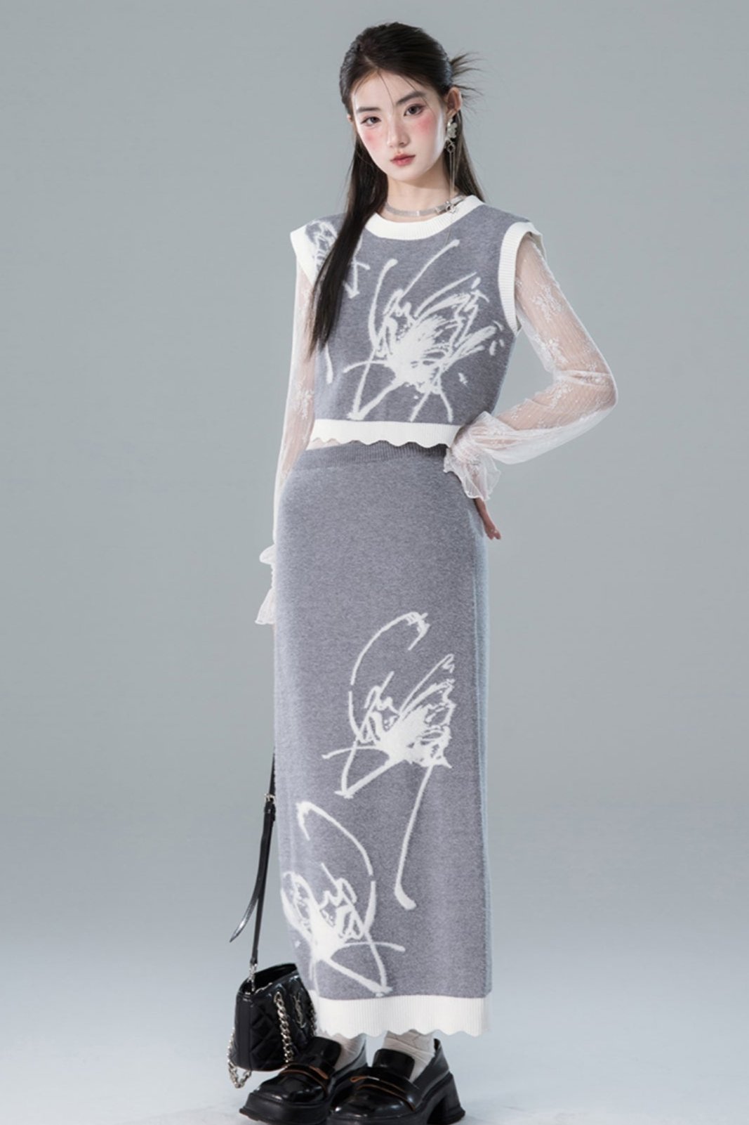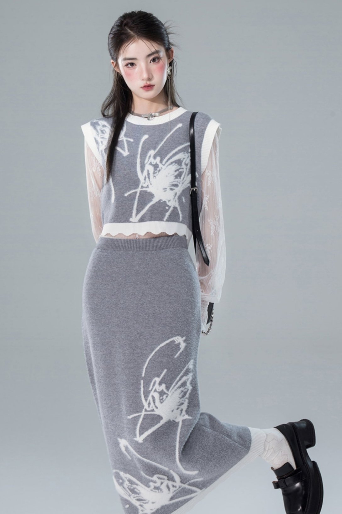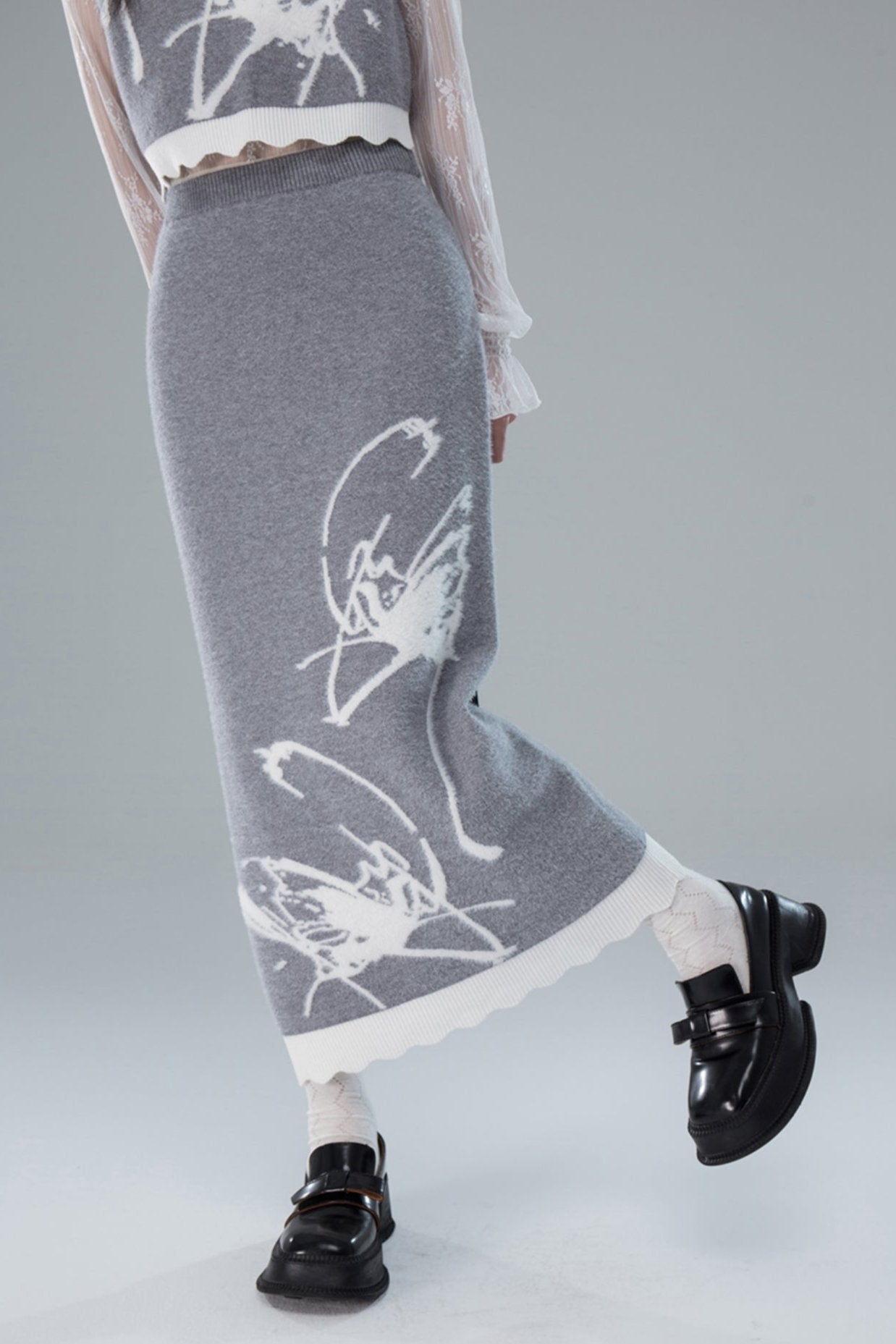 Butterfly Wool Knit Sweater Skirt Set-Up