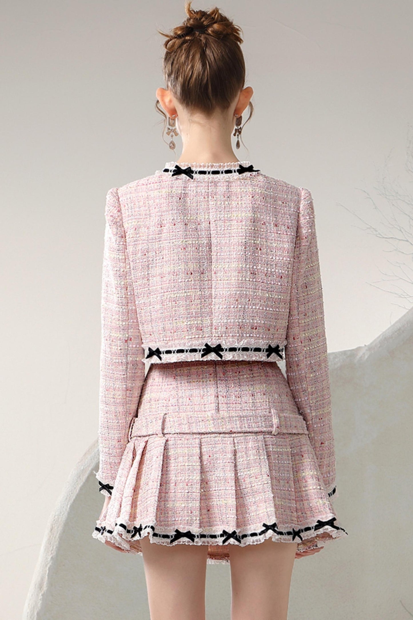 Button Jacket Pleated Skirt Set-Up