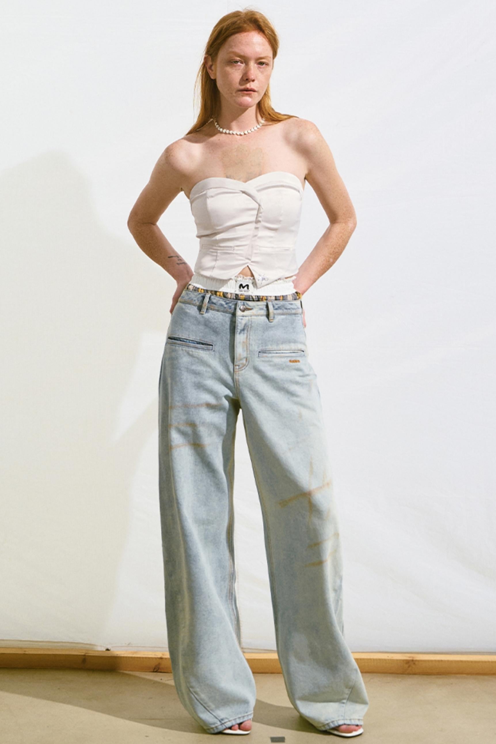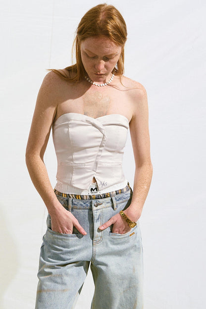※全体に伸縮性があり、体にフィットするショートキャミソールトップ。