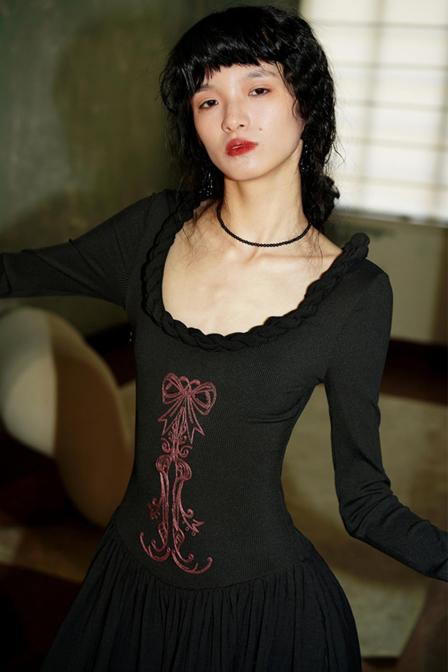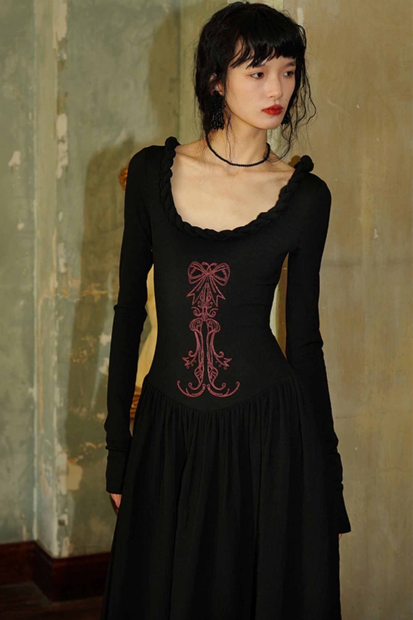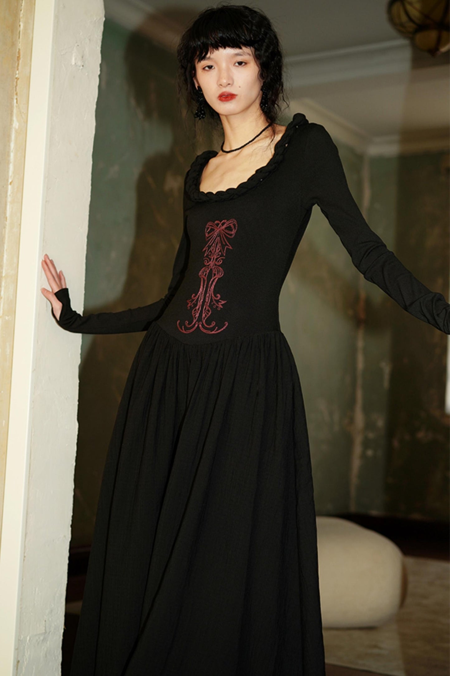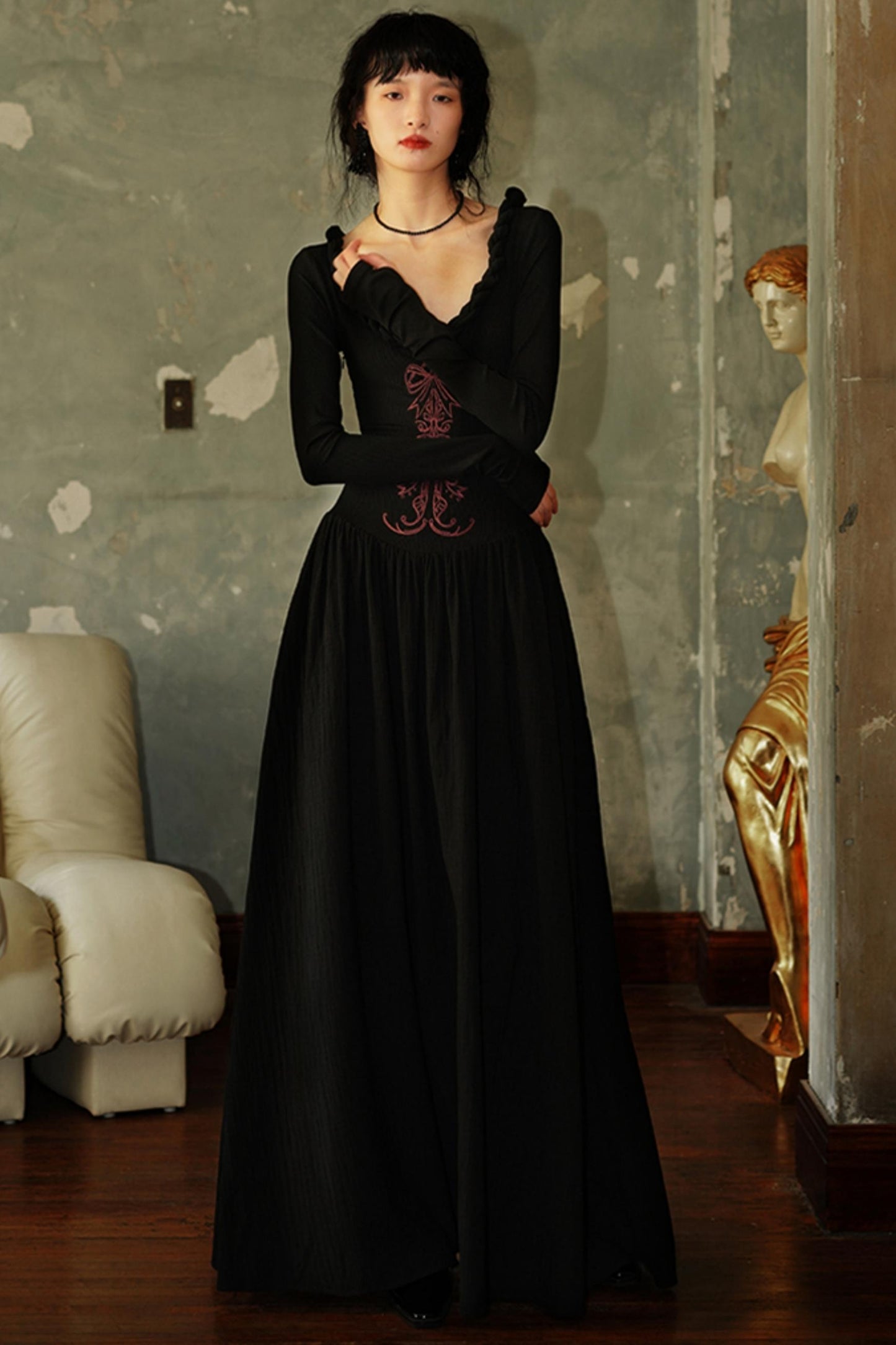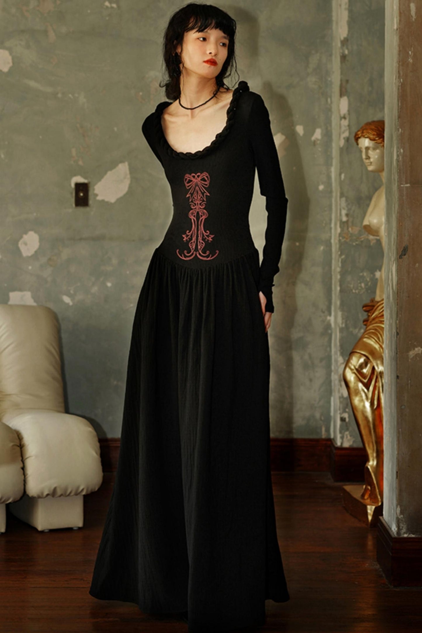 Chinese Embroidery Long Sleeve Dress
