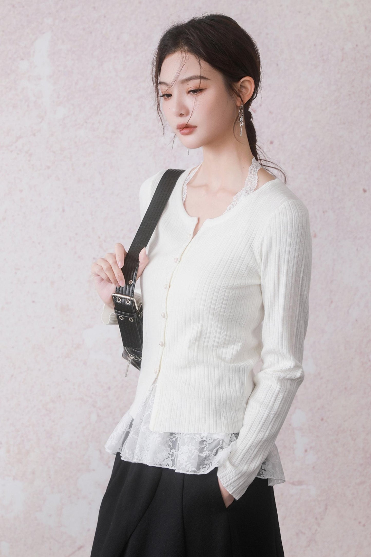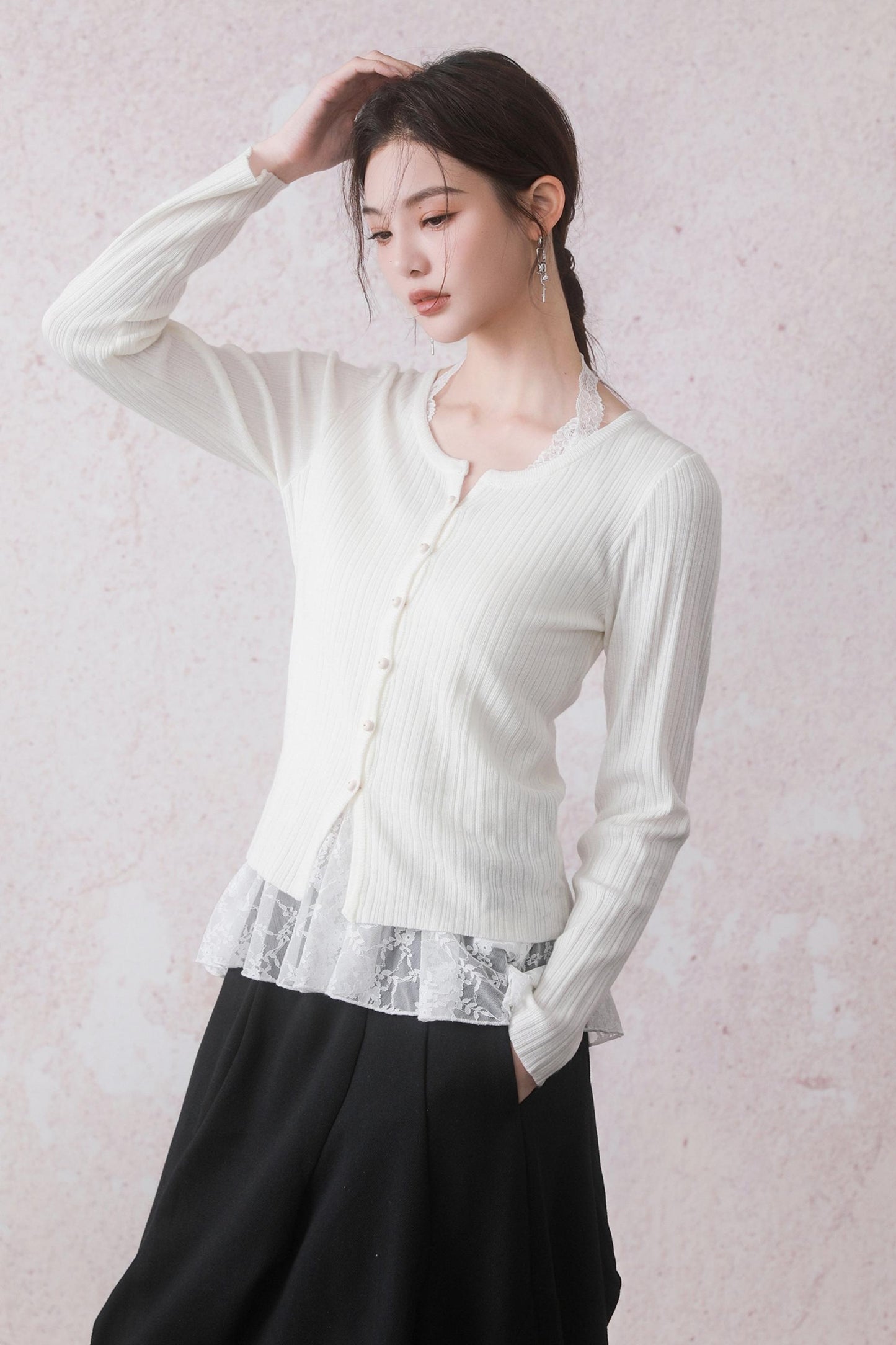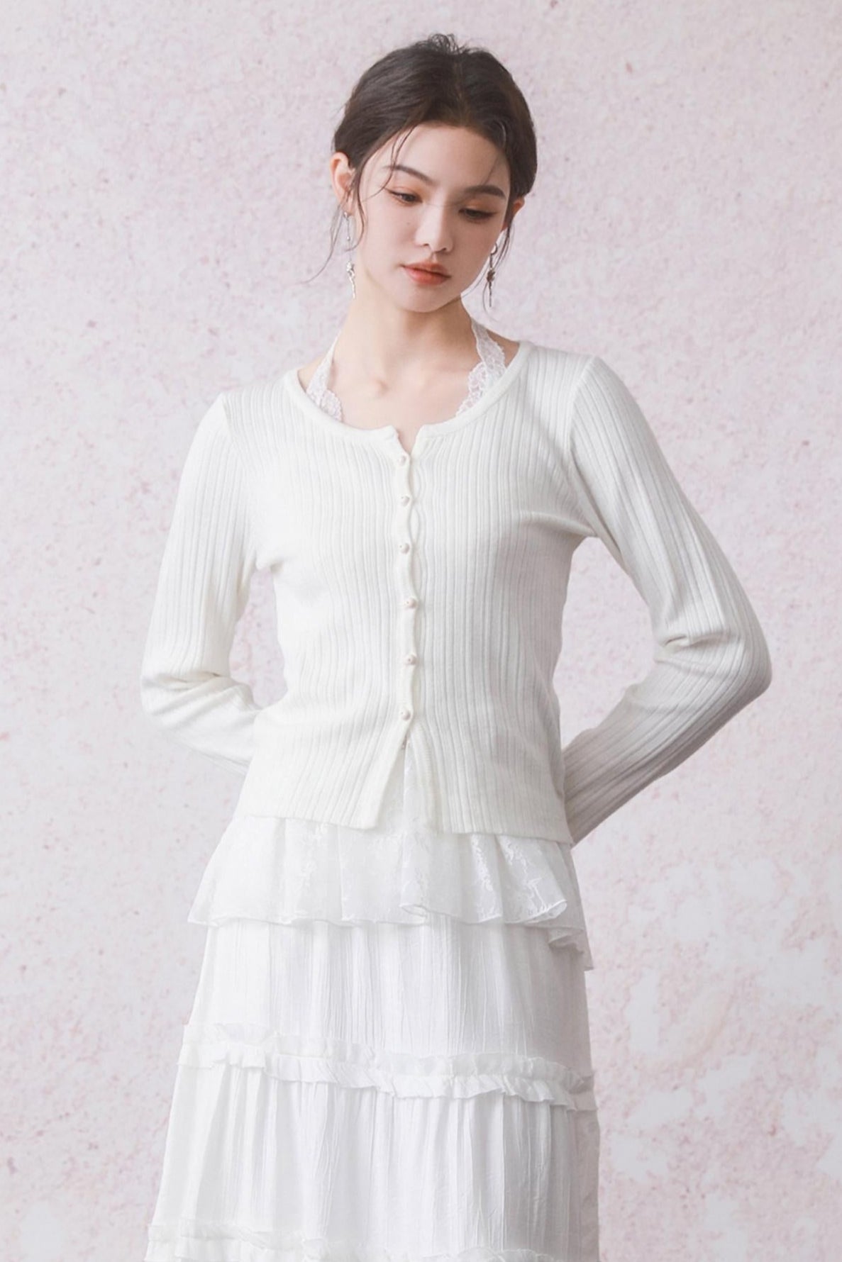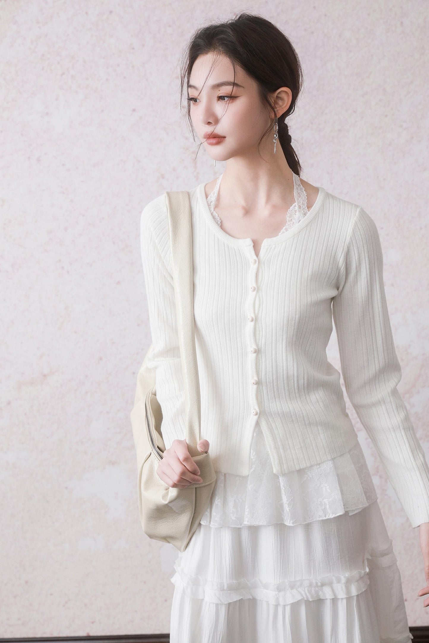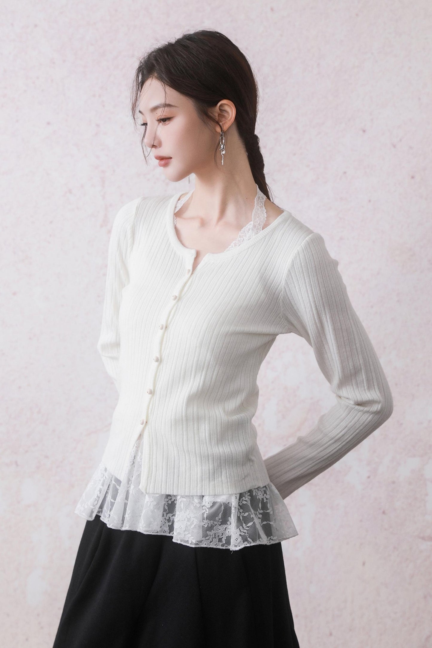 Cloud White Cardigan & Lace Top Set