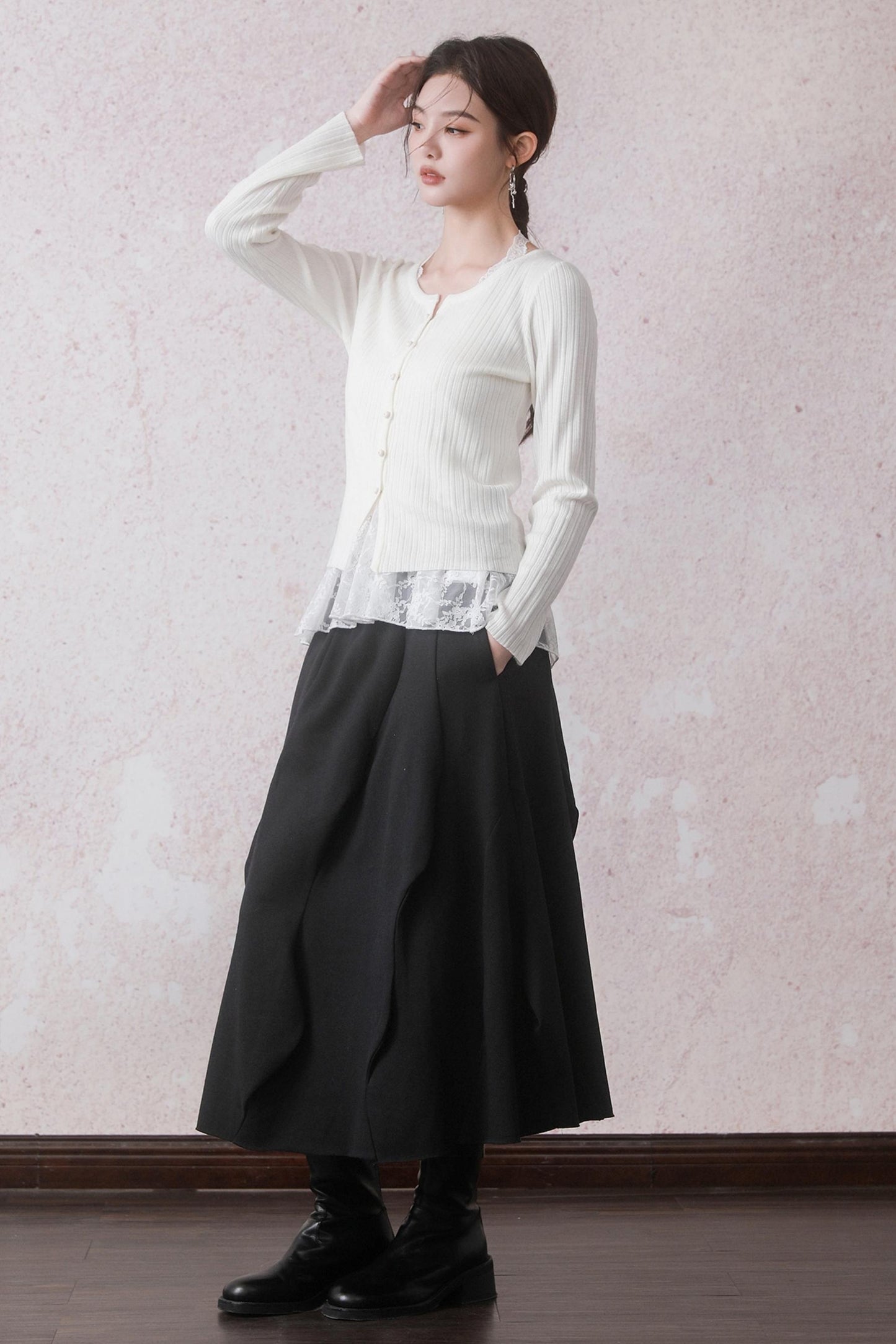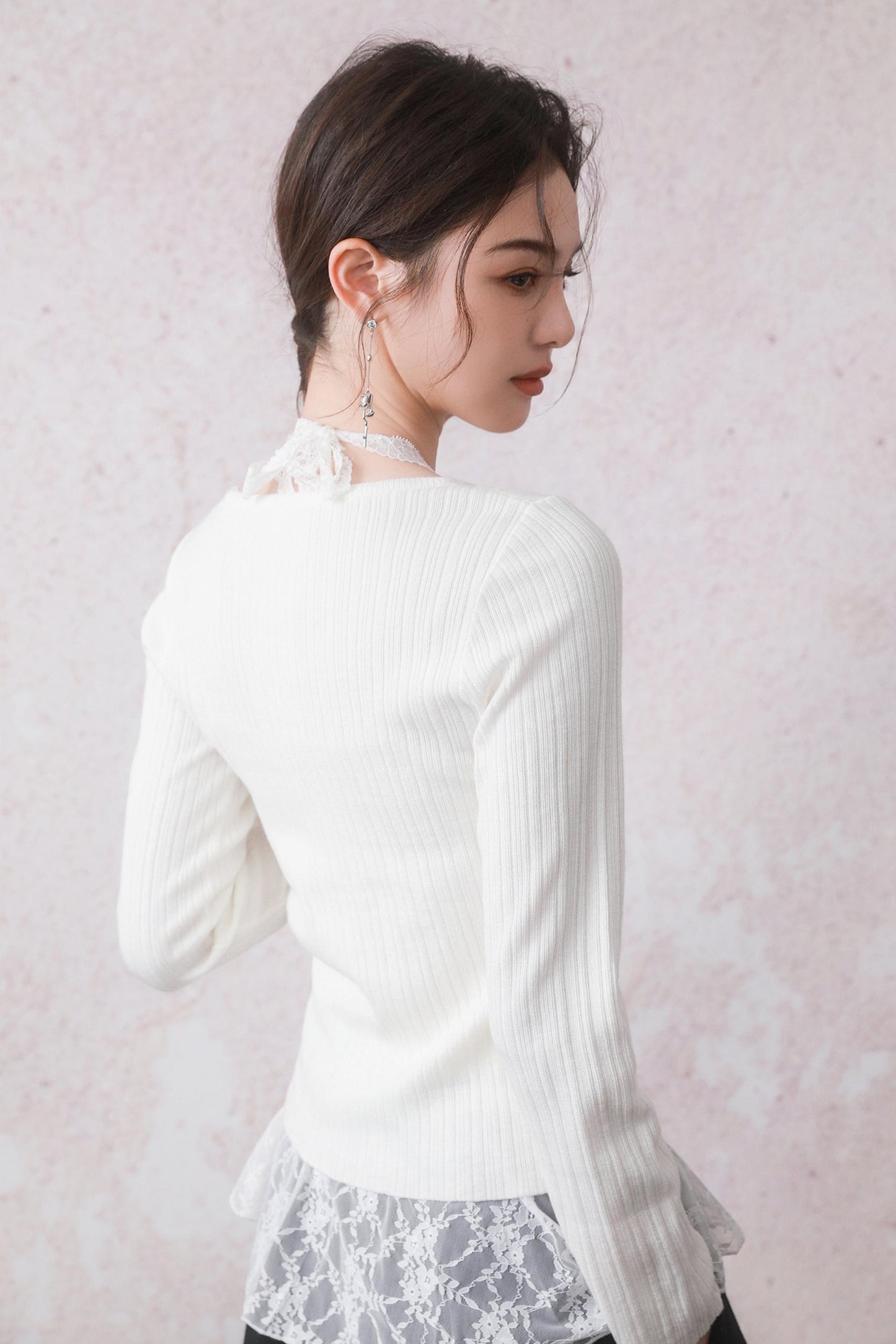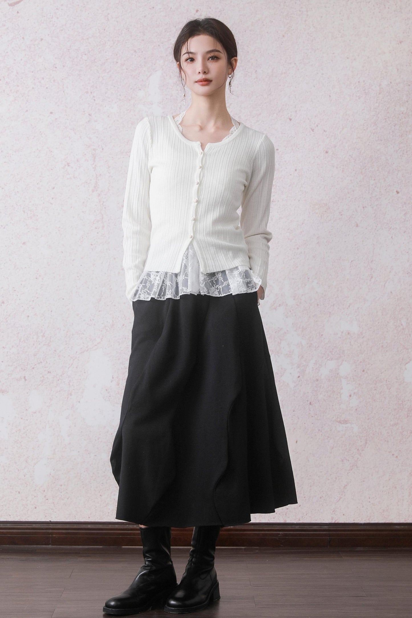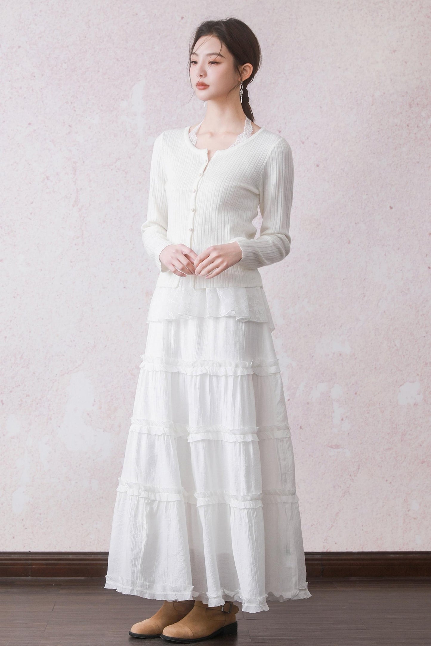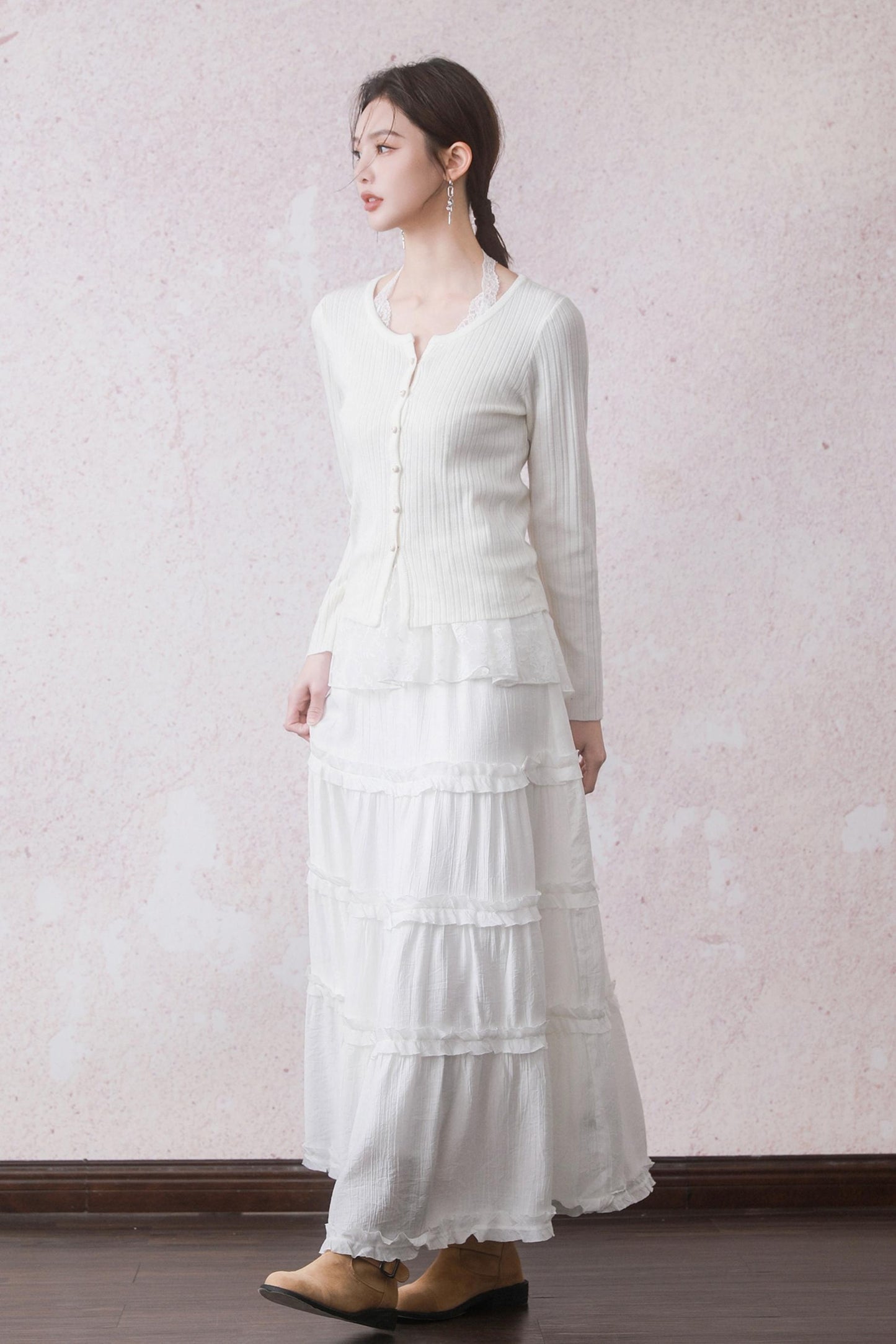 Cloud White Cardigan & Lace Top Set